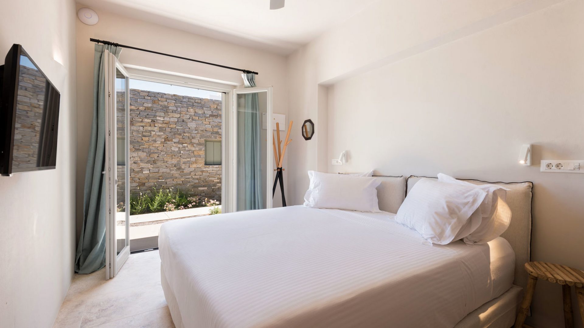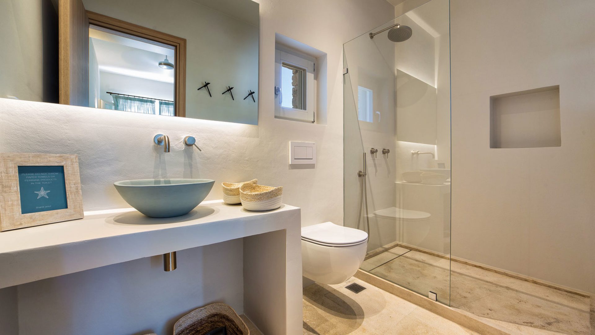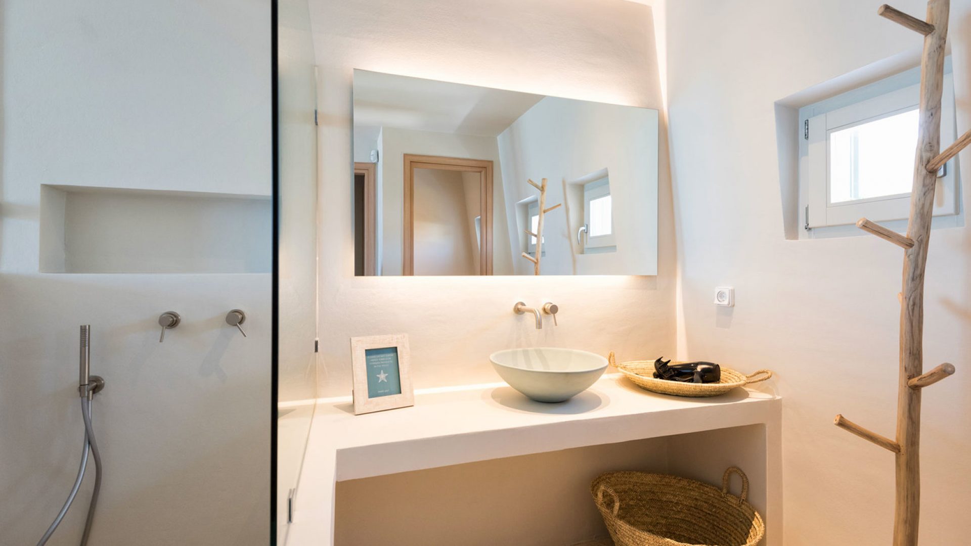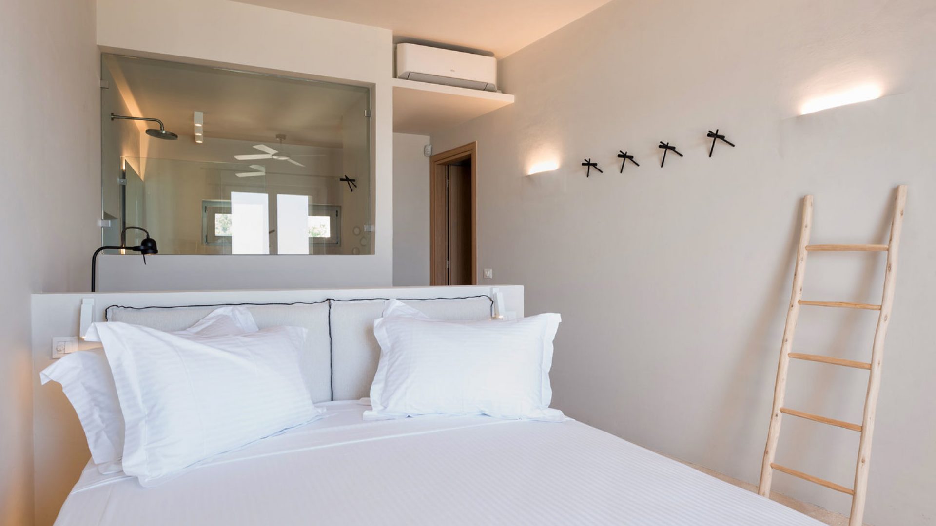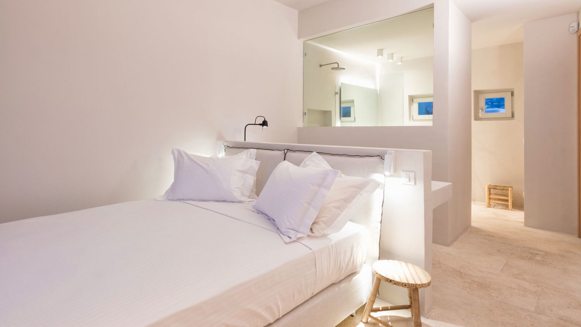 Aeria Estate in Drios, Paros is a combination of two top luxury seafront villas. This holiday rental can accommodate up to 16 guests offering stunning views and luxurious amenities.