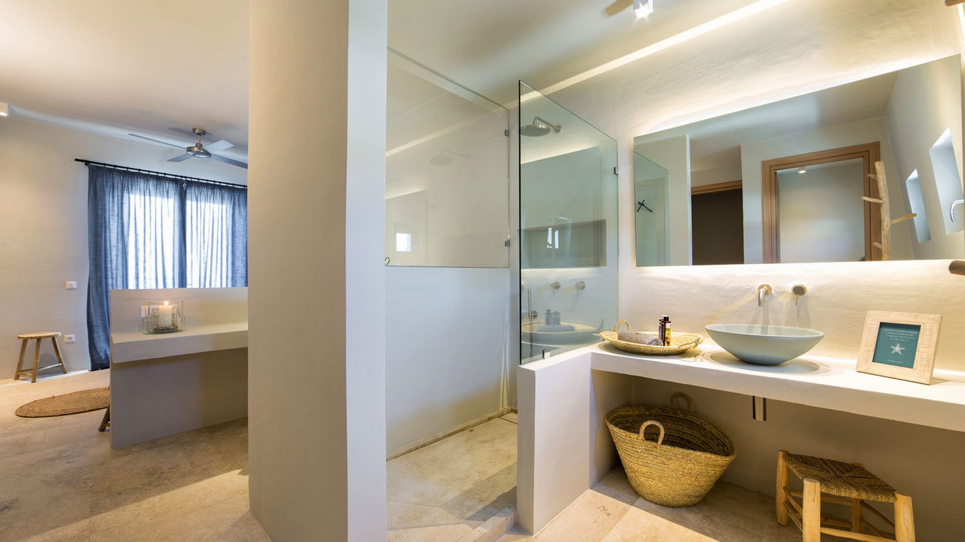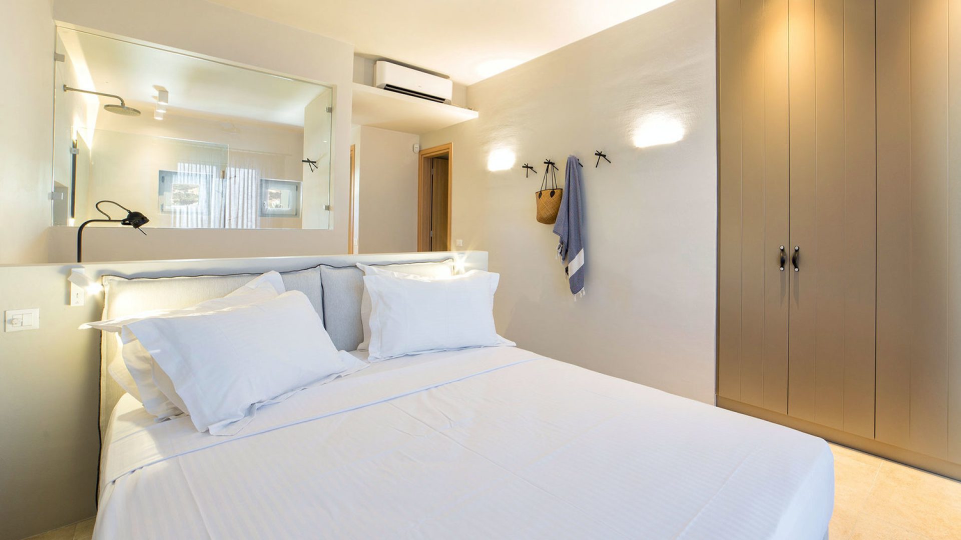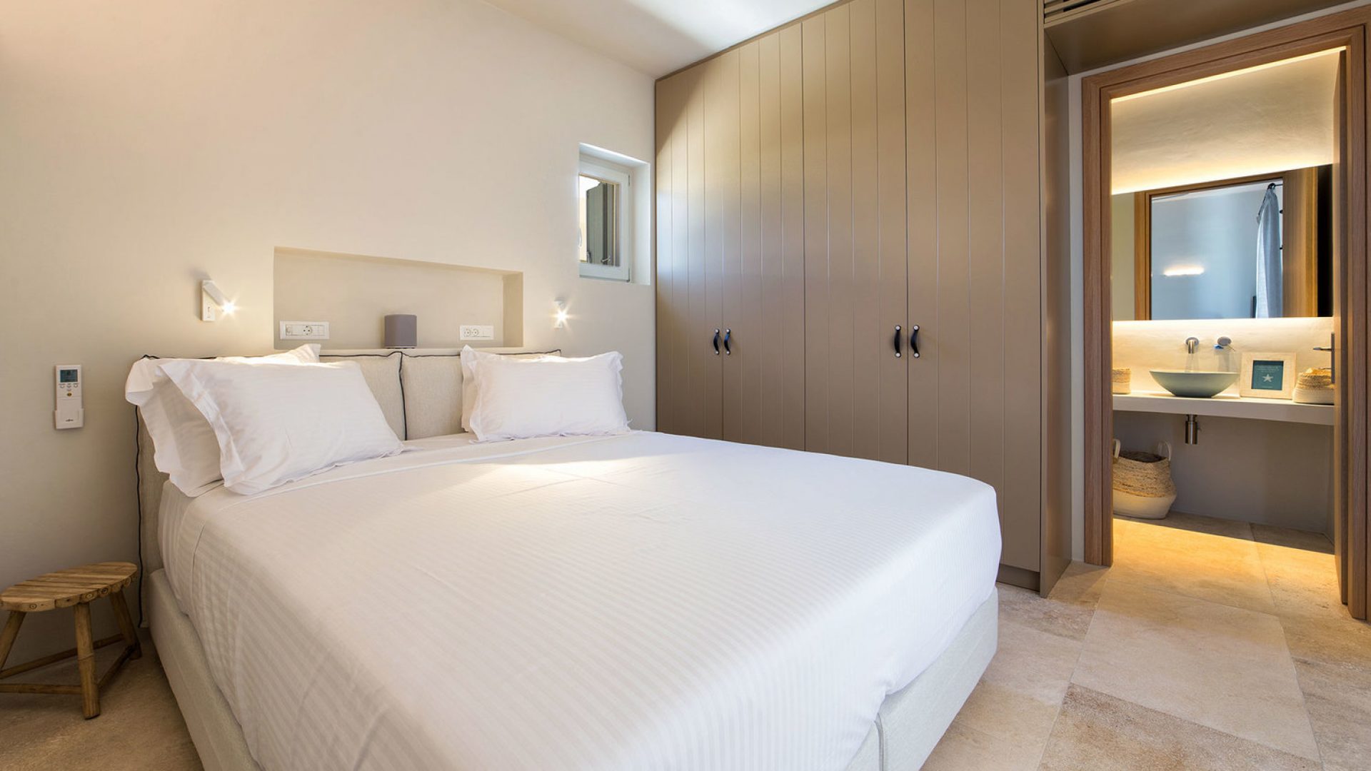 Each villa is private, with private grounds and private pool. The villa consists of 4 bedrooms, one bedroom has a double bed, and the other three bedrooms include two twin beds. Ten meters away from the villas you can enjoy your swim in secluded small, exclusive, sandy beaches.