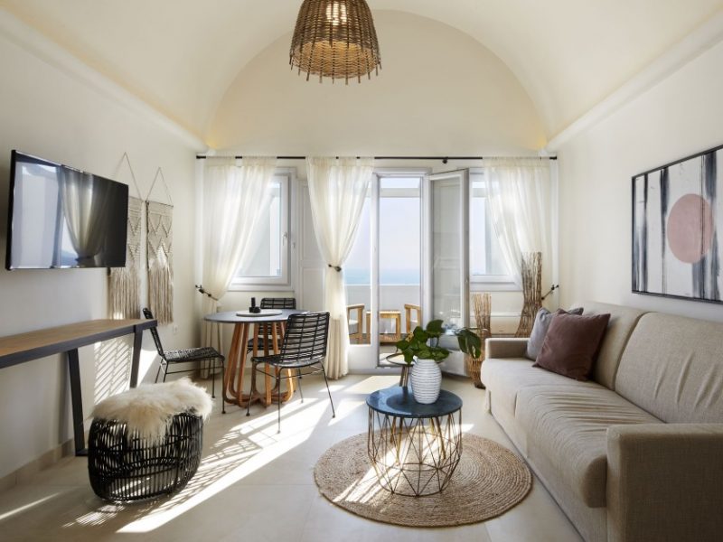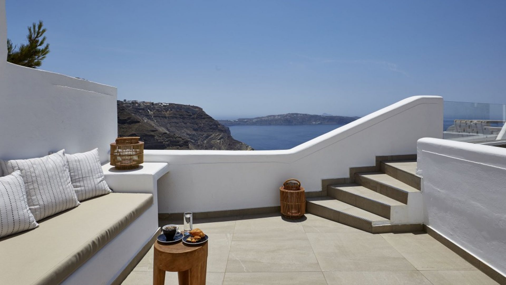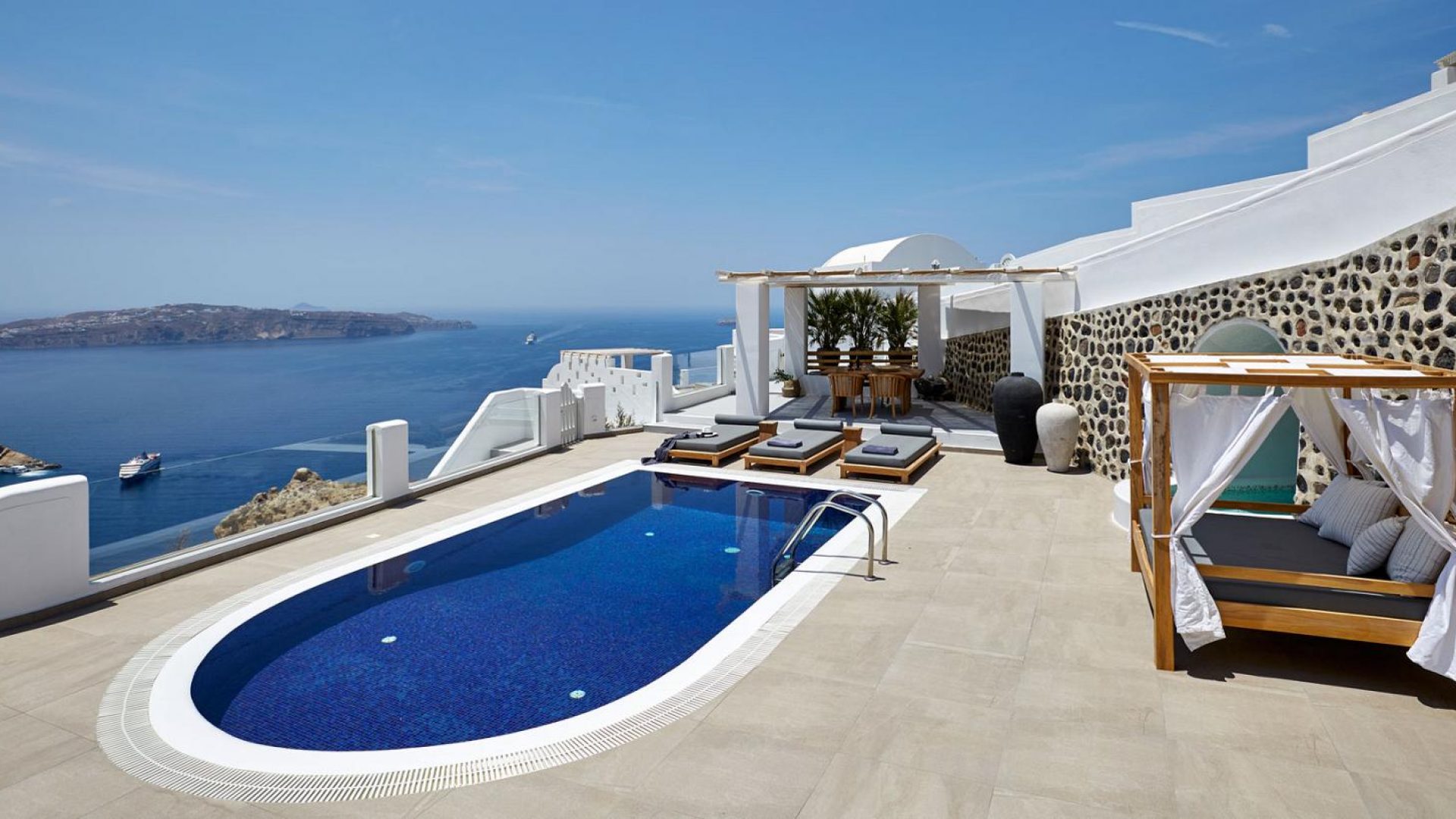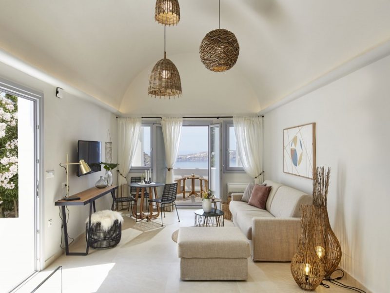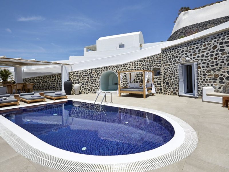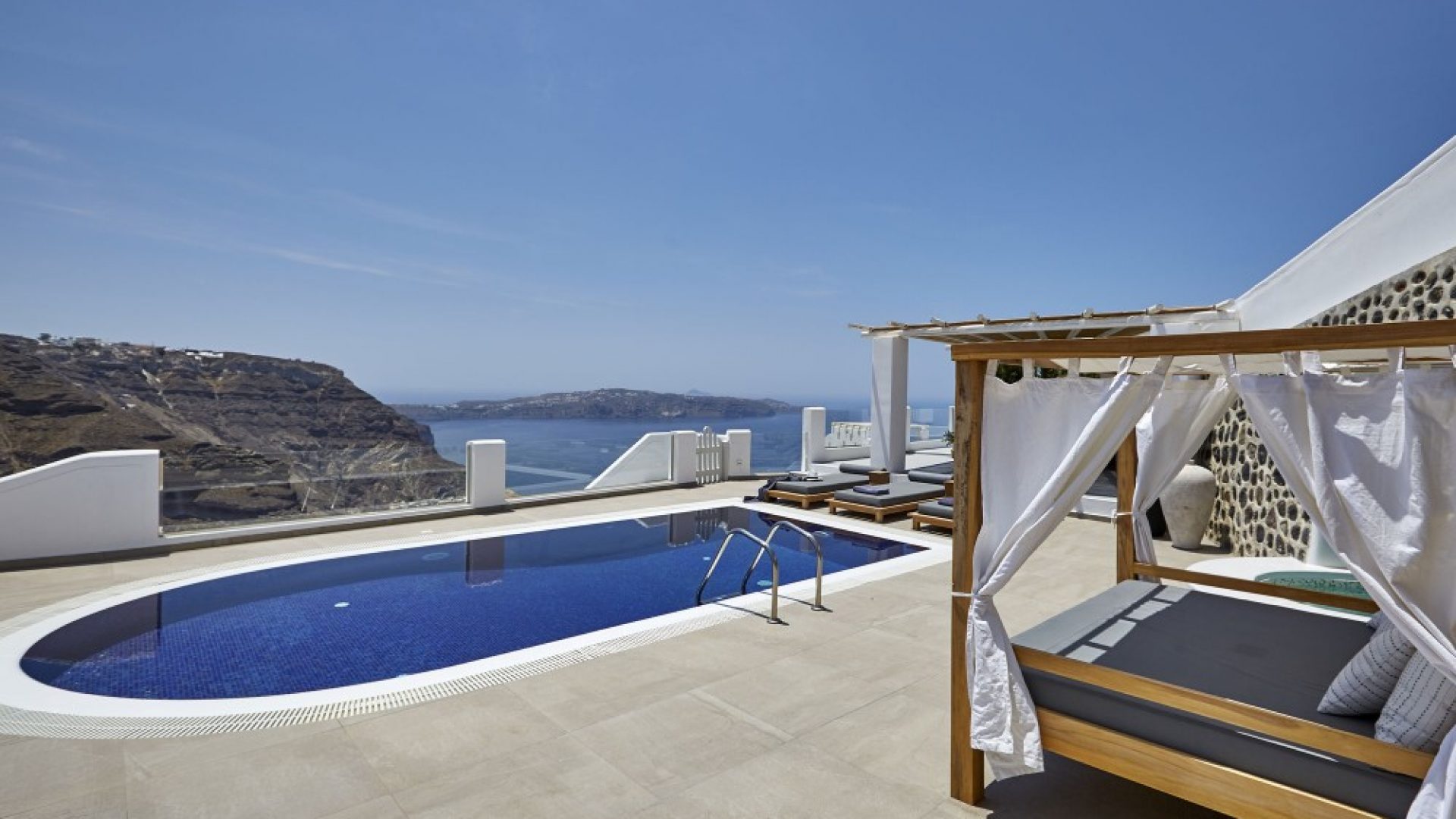 Dramatic views of the Aegean, the volcano, and the spectacular sunset are highlights of your stay in one of the villas.