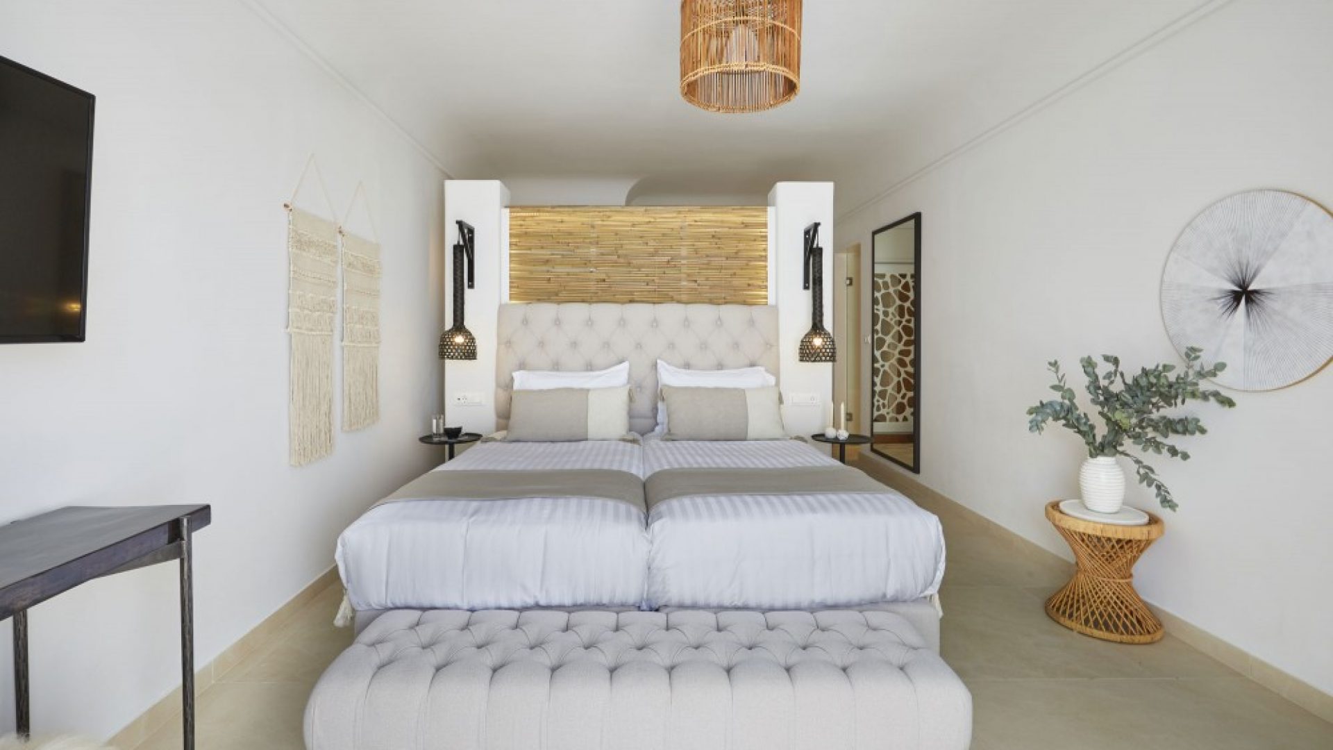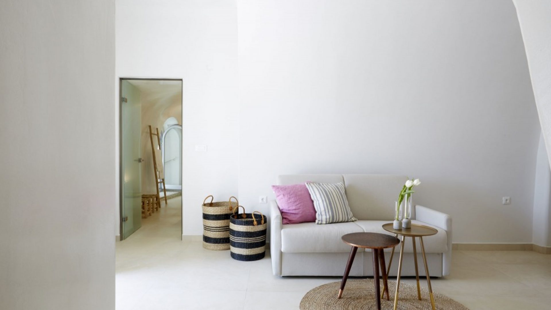 Aphrodite Villa is a spacious villa, accommodating up to 5 persons. Upon entering the upper level, you will be amazed at the ambient white atmosphere and the elegant décor.