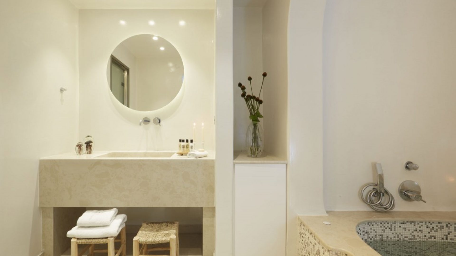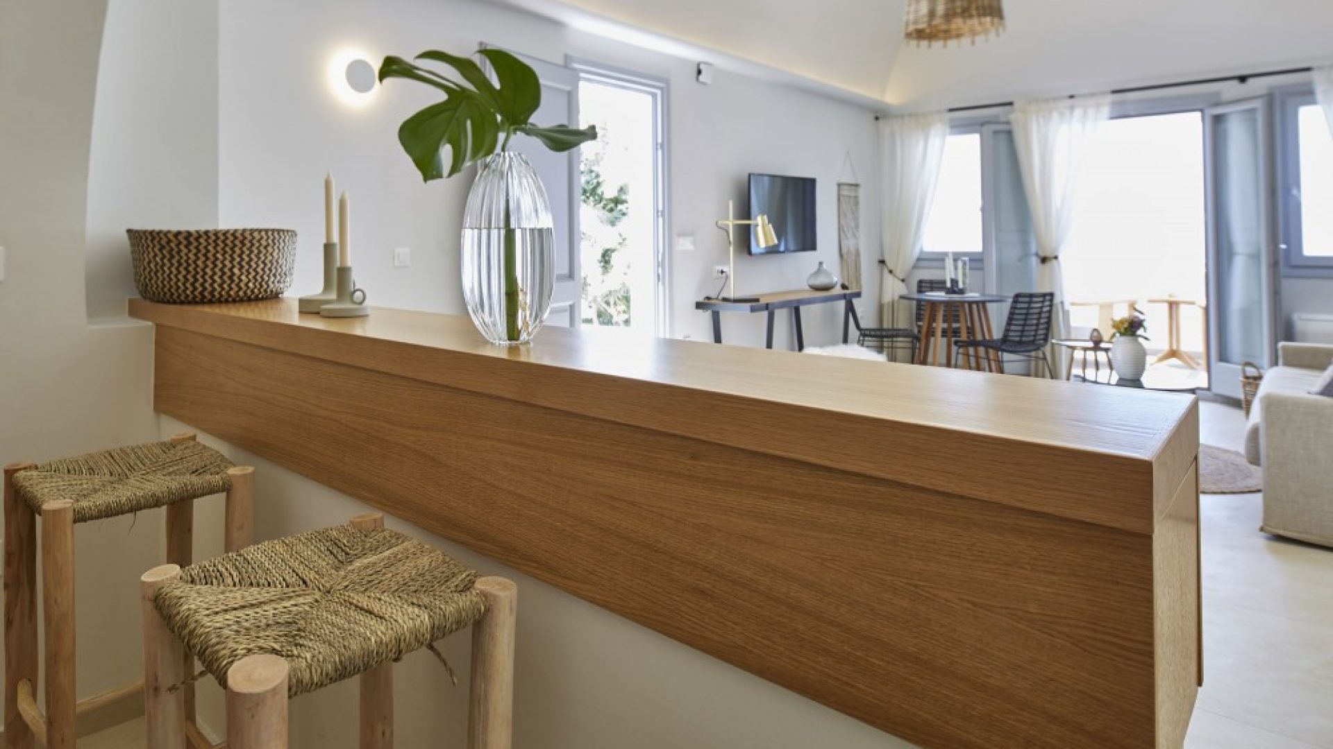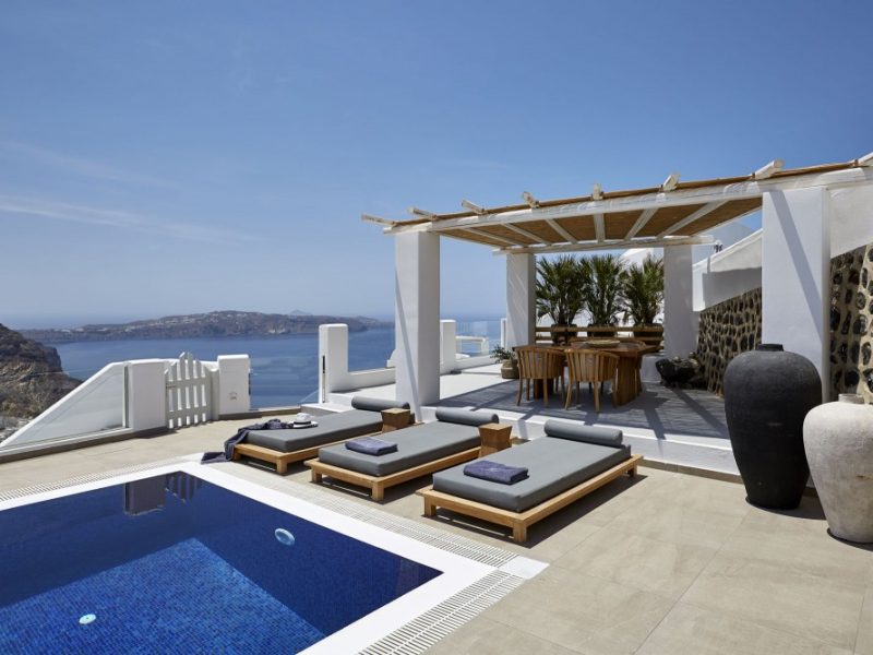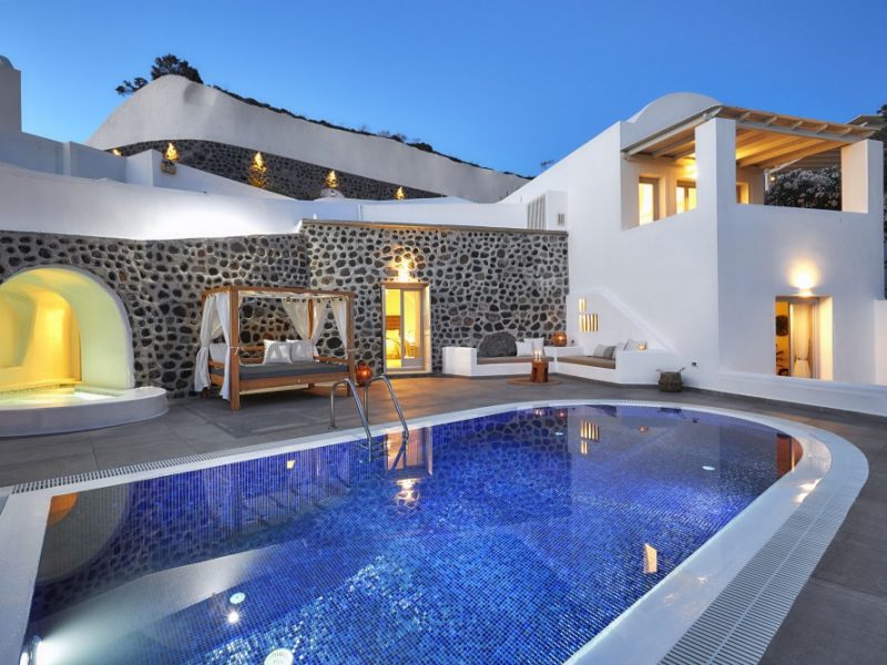 You can access Fira town at night for vibrant entertainment or choose to stay in the privacy of your villa and enjoy the calmness it offers.