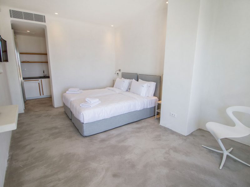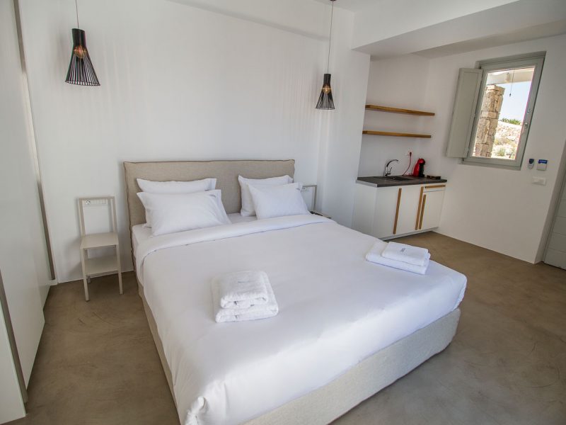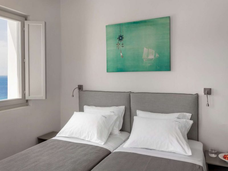 Lie back, relax and take in the spectacular view over Elia beach and the infinite Aegean sea.