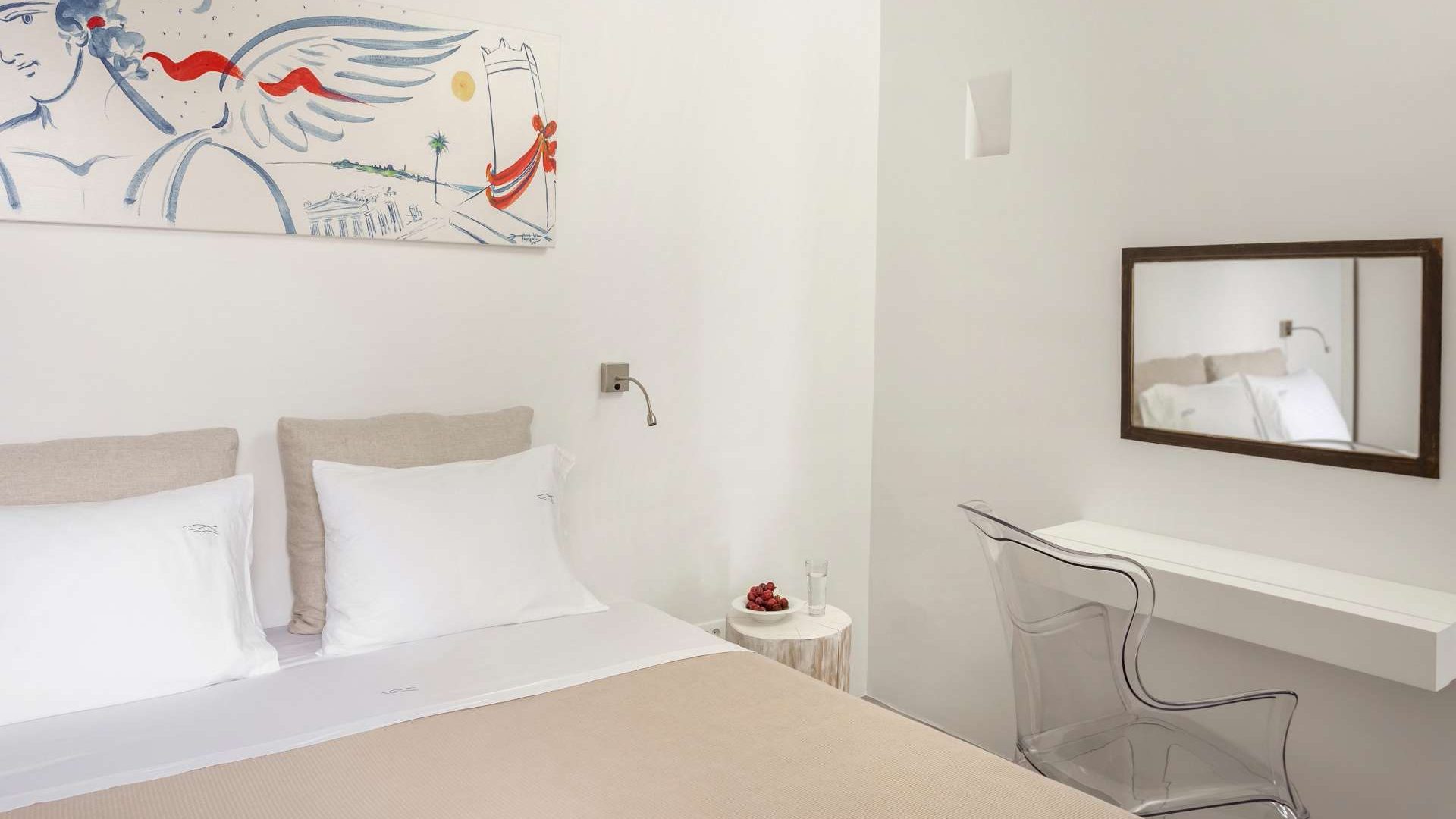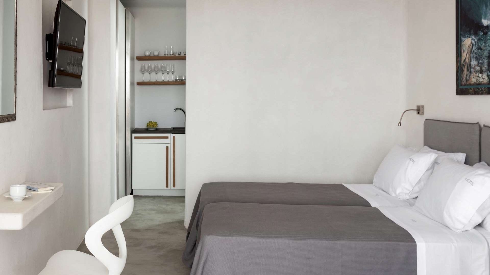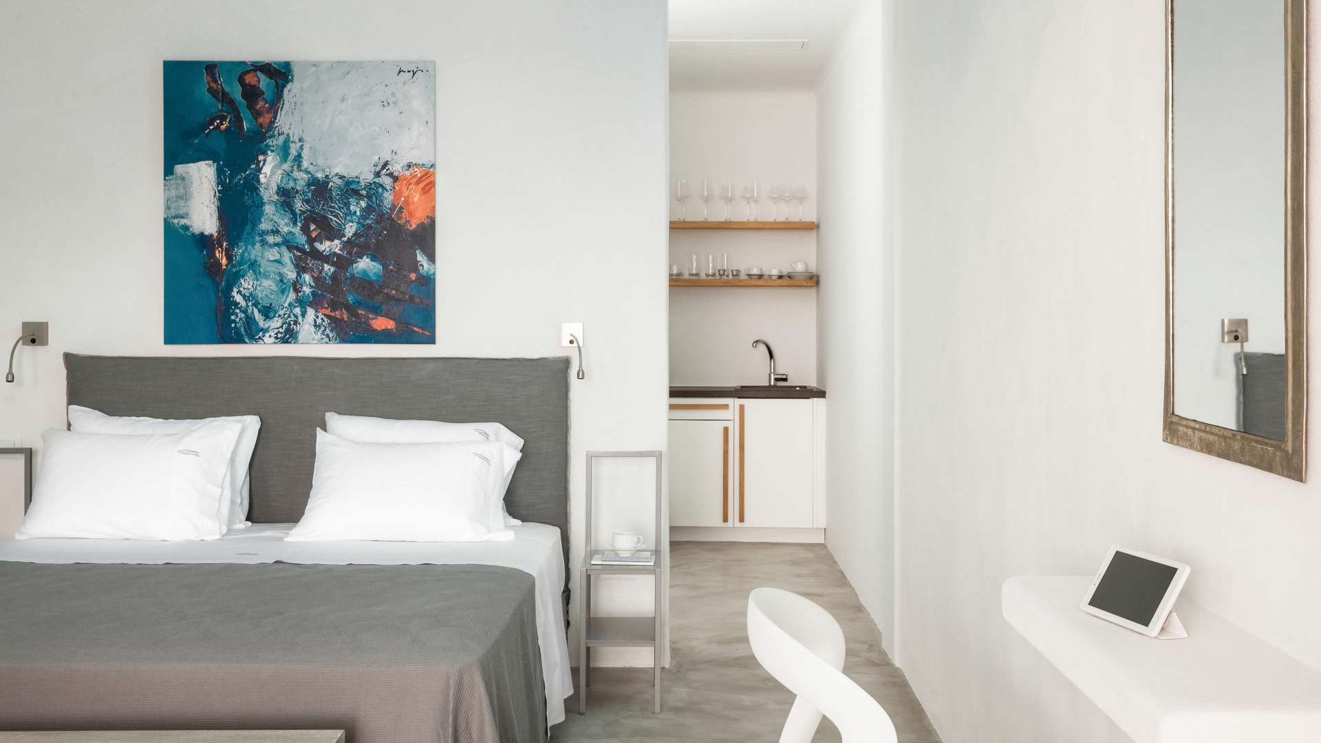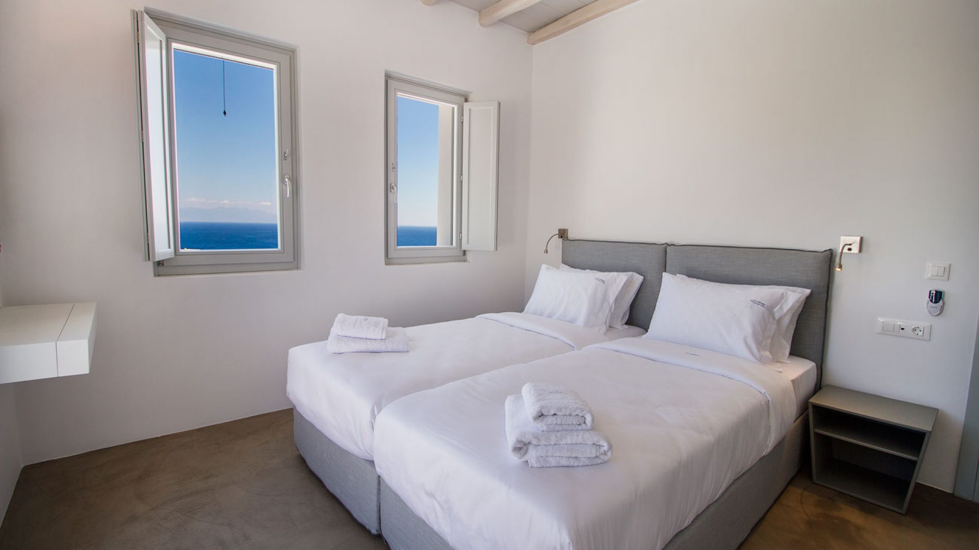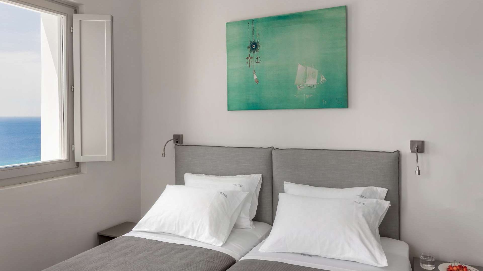 Lie back, relax and take in the spectacular view over elia beach and the infinite aegean sea.