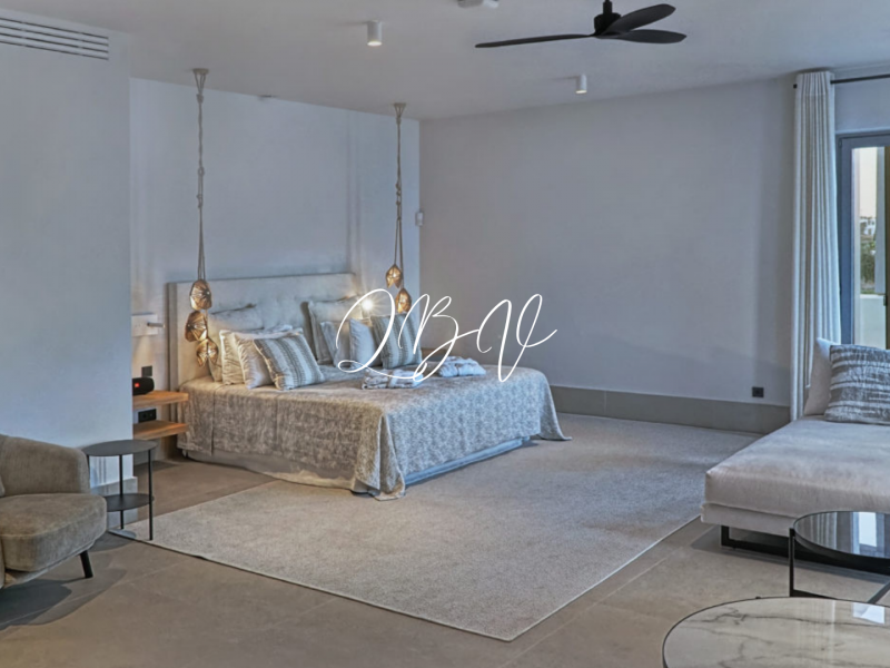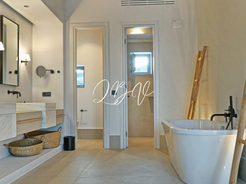 The outdoor area provides an immersive sense of serenity, with main materials that complement perfectly the natural environment surrounding the villa. The impressive swimming pool covers an area of over 100 square meters and works as the natural continuation of the sea. The oversized open-air lounge overlooking the Aegean, together with the outdoor dining area, well-protected from the strong summer winds of the Mediterranean, as well as all other outdoor corners, are all created in a way to help your open-air gatherings and get-togethers with guests, at all hours.