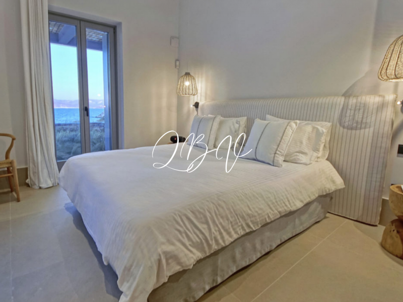 The impressive main building, unfolds on two levels, including a master suite with an en-suite bathroom on the first floor, and two more bedrooms on the ground level, one with its own independent entrance. The same building houses the main indoor lounge with its spectacular sea view and a fully equipped kitchen, as well as a professional catering area. Three more independent rooms with private balconies with views to the Aegean Sea can double as guest rooms. All areas have direct access to the outdoors and provide all guests with a unique living experience.