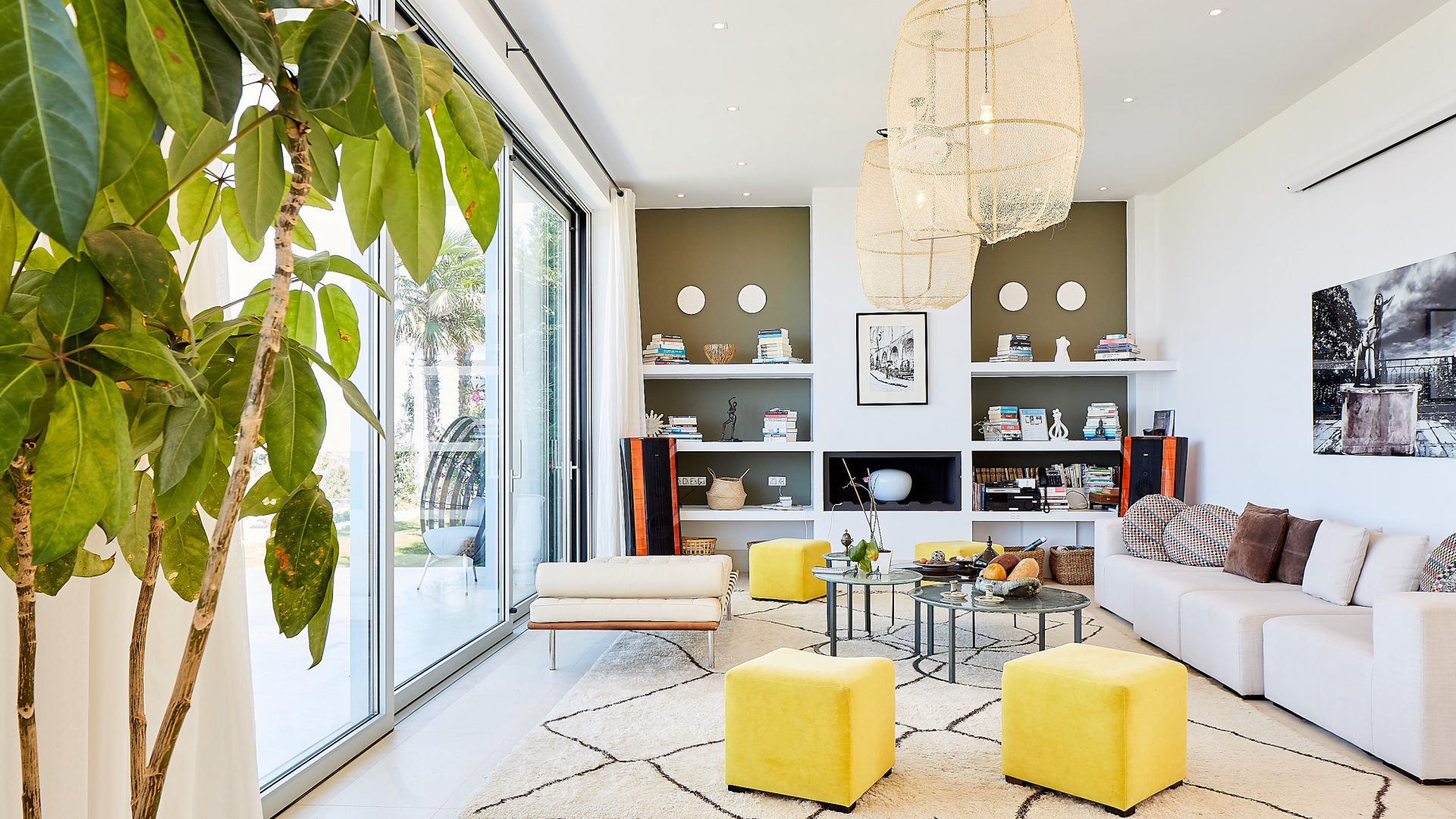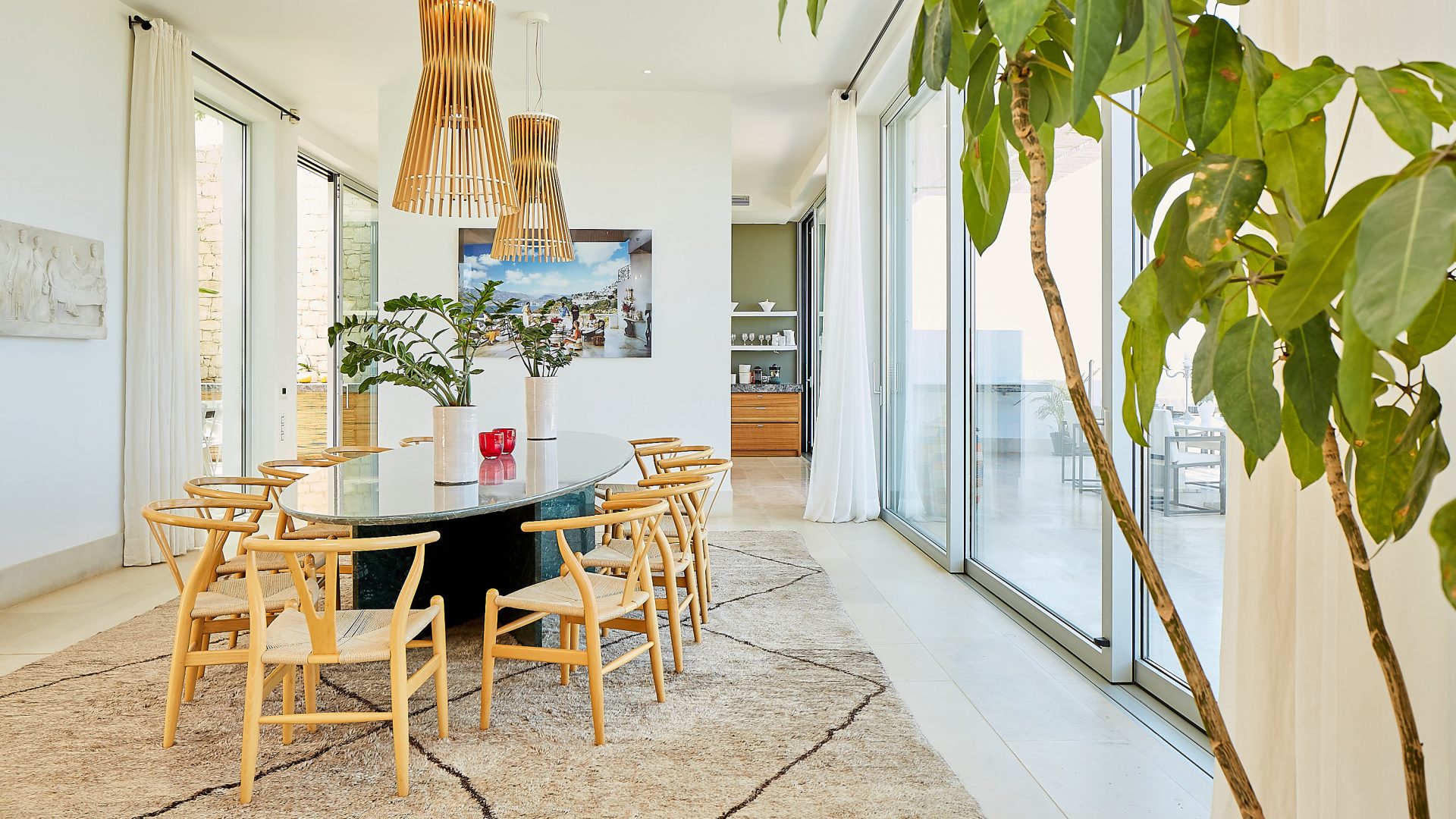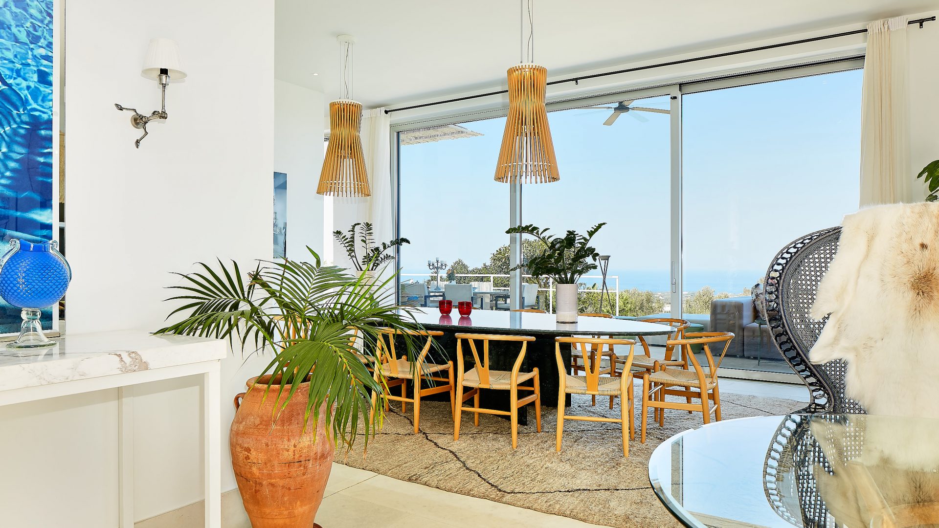 Entering the villa on the ground floor there is a spacious open plan area consisting of the living room, dining area and kitchen which are strategically placed to take advantage of the splendid view.