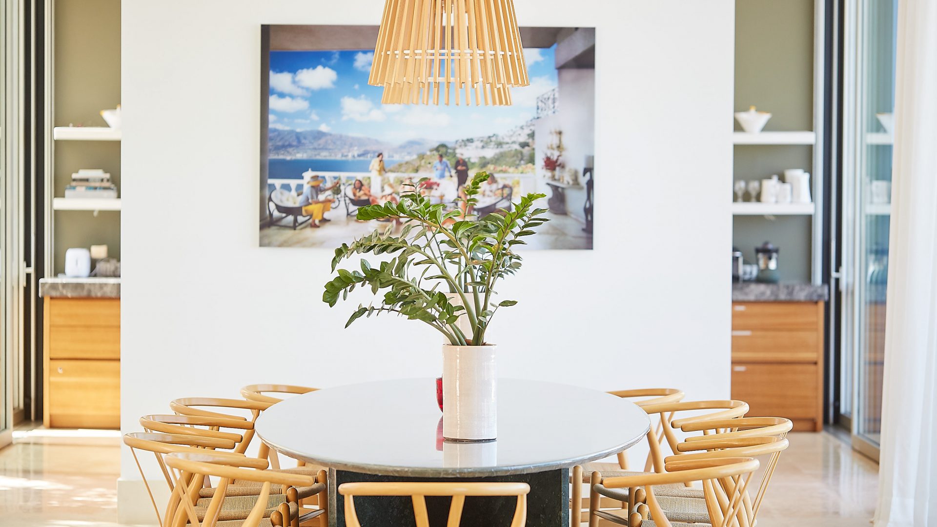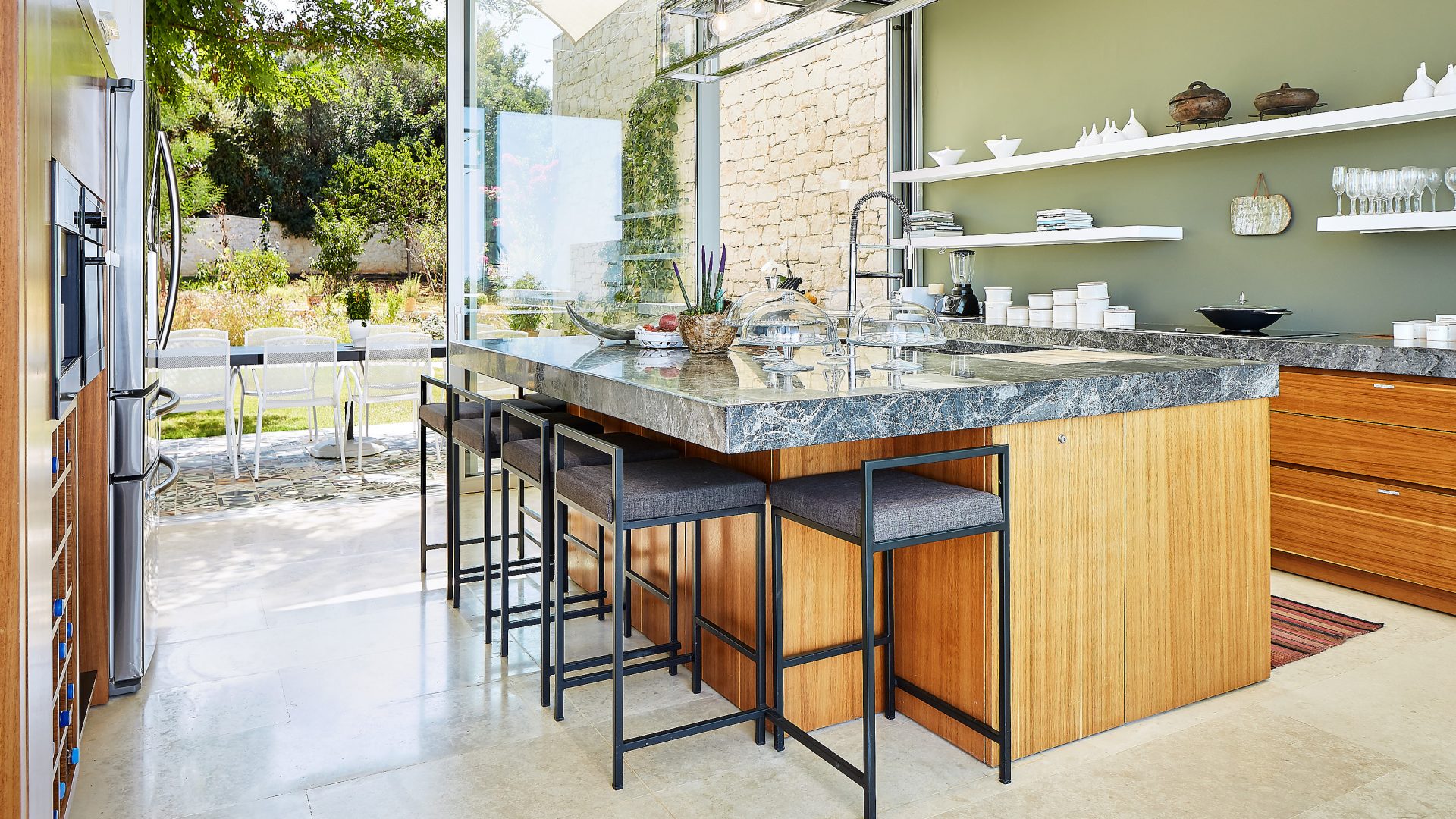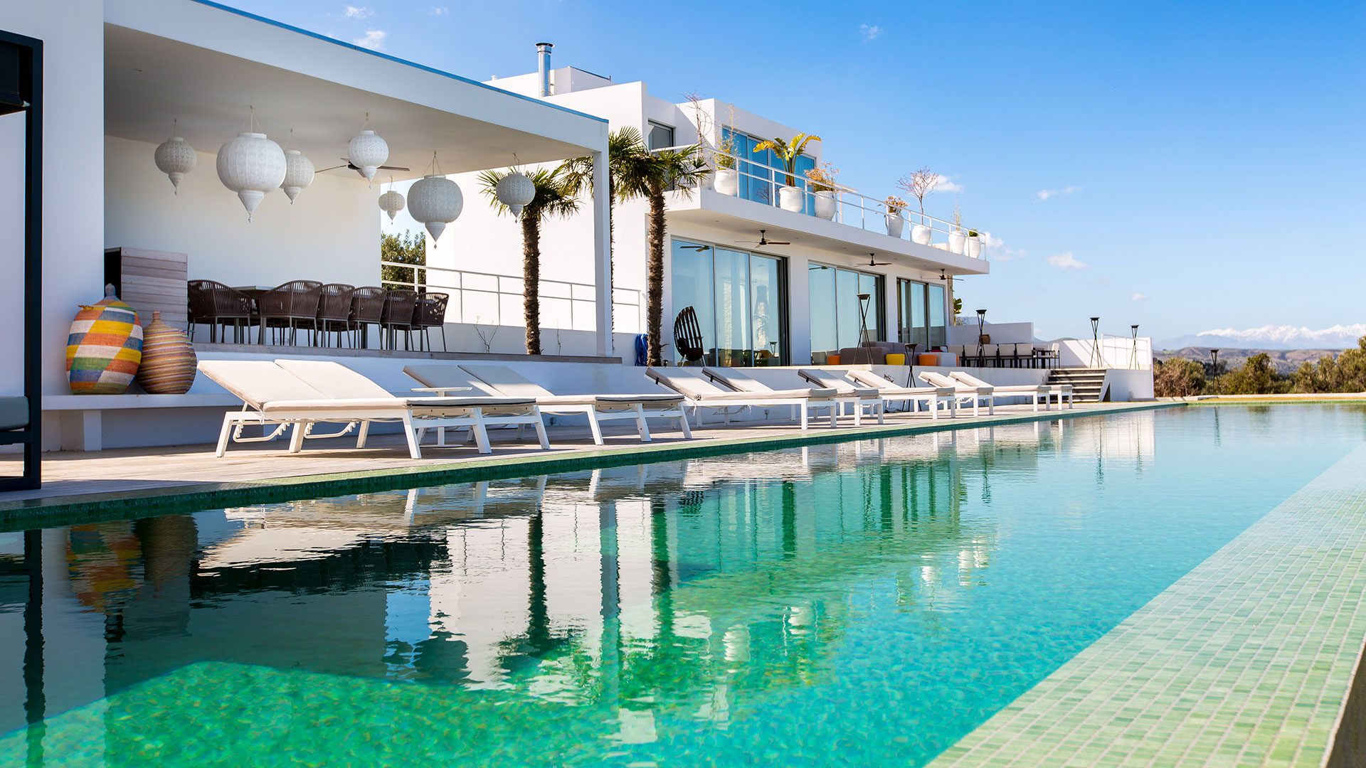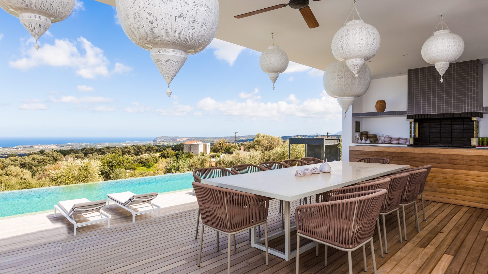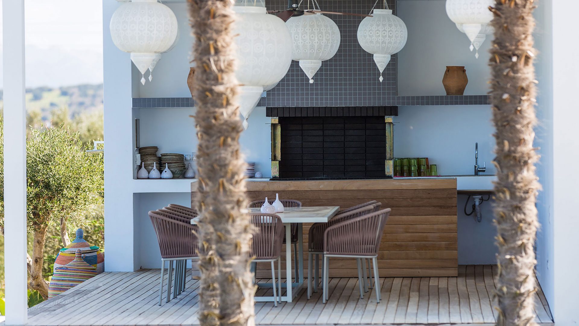 – A pool house with fully equipped charcoal barbecue and dining table offering views to the pool and the surrounding landscape