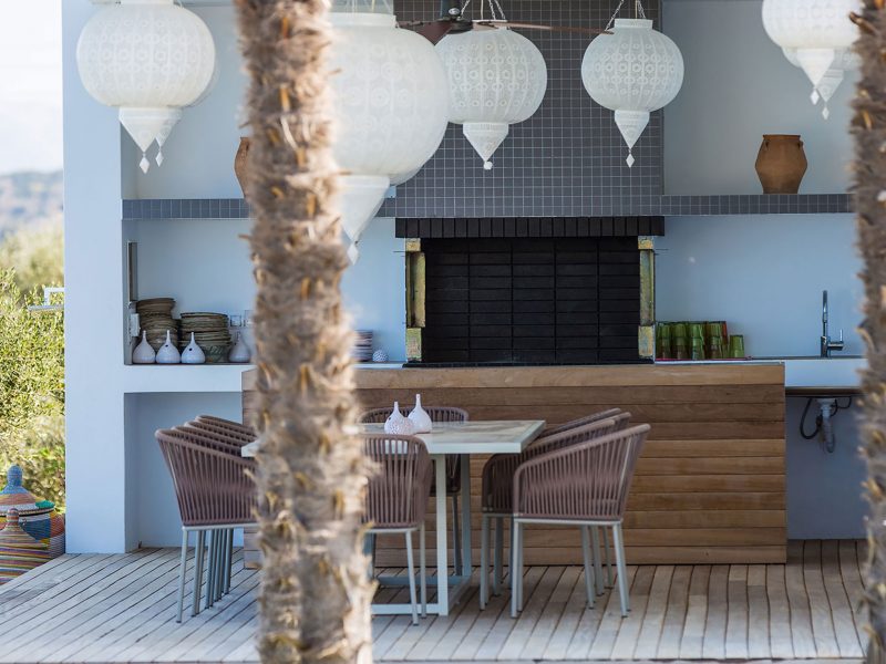 – A pool house with fully equipped charcoal barbecue and dining table offering views to the pool and the surrounding landscape