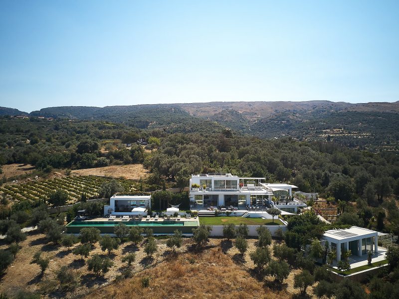It is situated in a private land of 6,000 square meters overlooking the Aegean Sea.