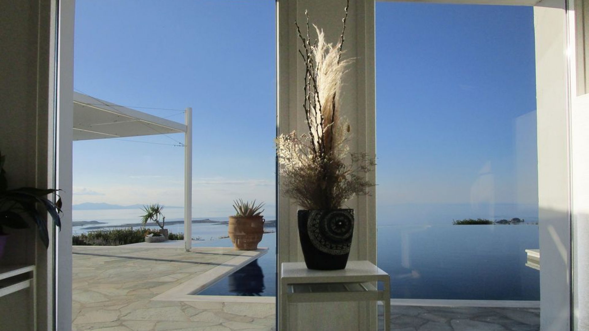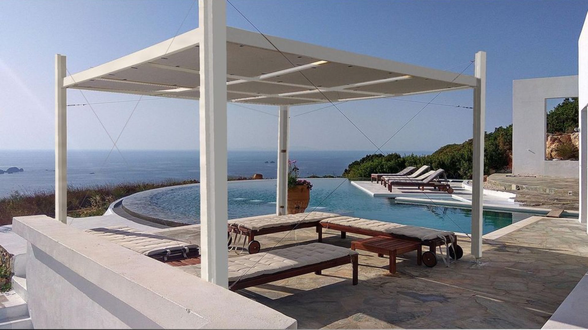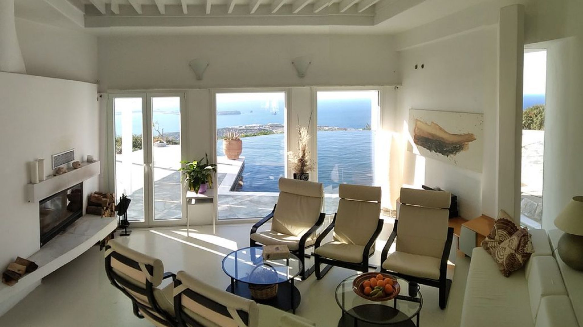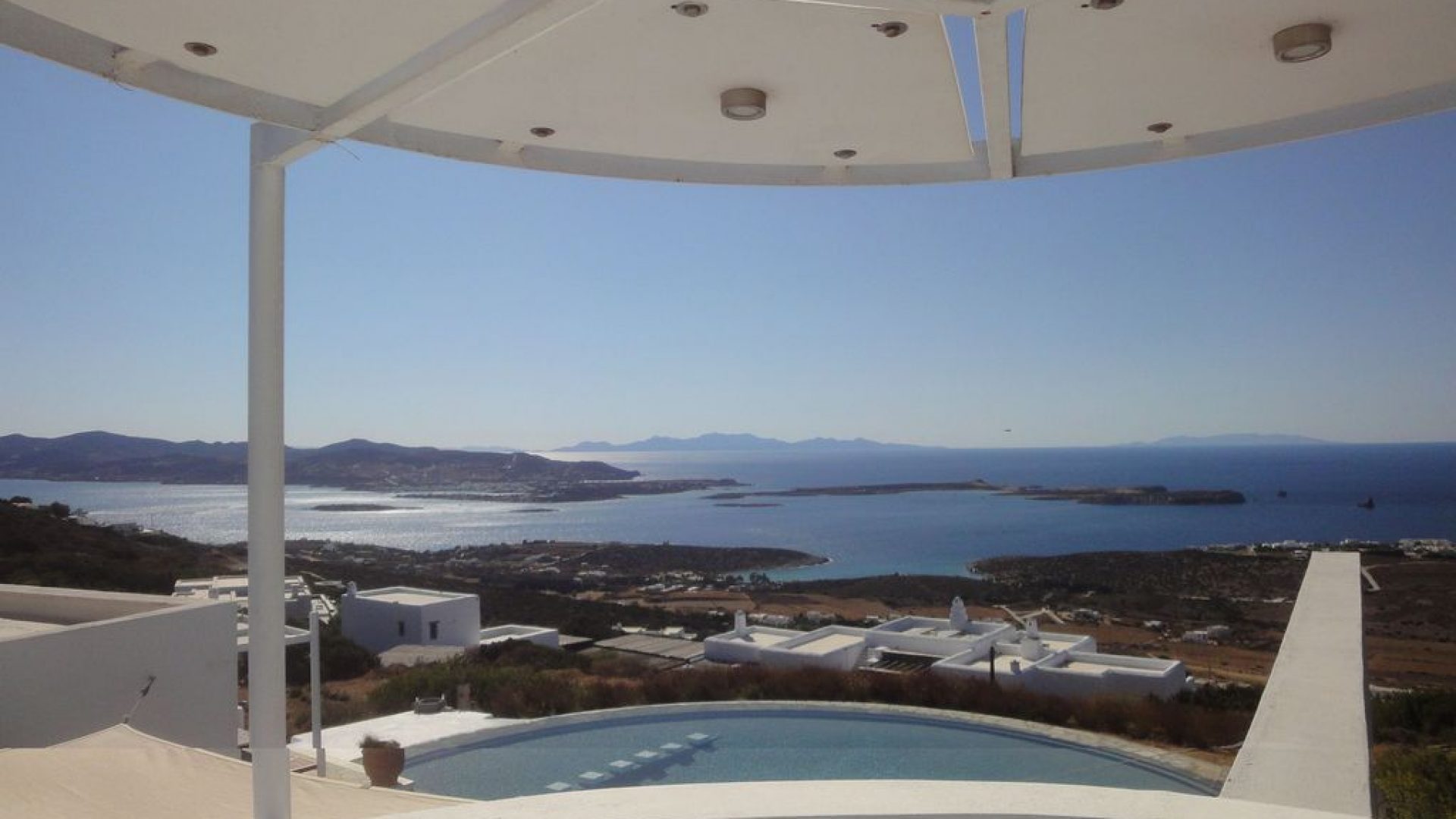 The villa is in a unique location on Paros on top of a hill with 360 degrees panoramic view, from where you can see sixteen islands: some of them are Mykonos, Delos, Tinos, Andros, Siros, Serifos, Milos, and up Sikinos.