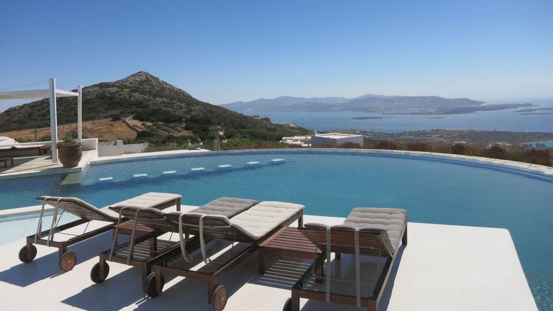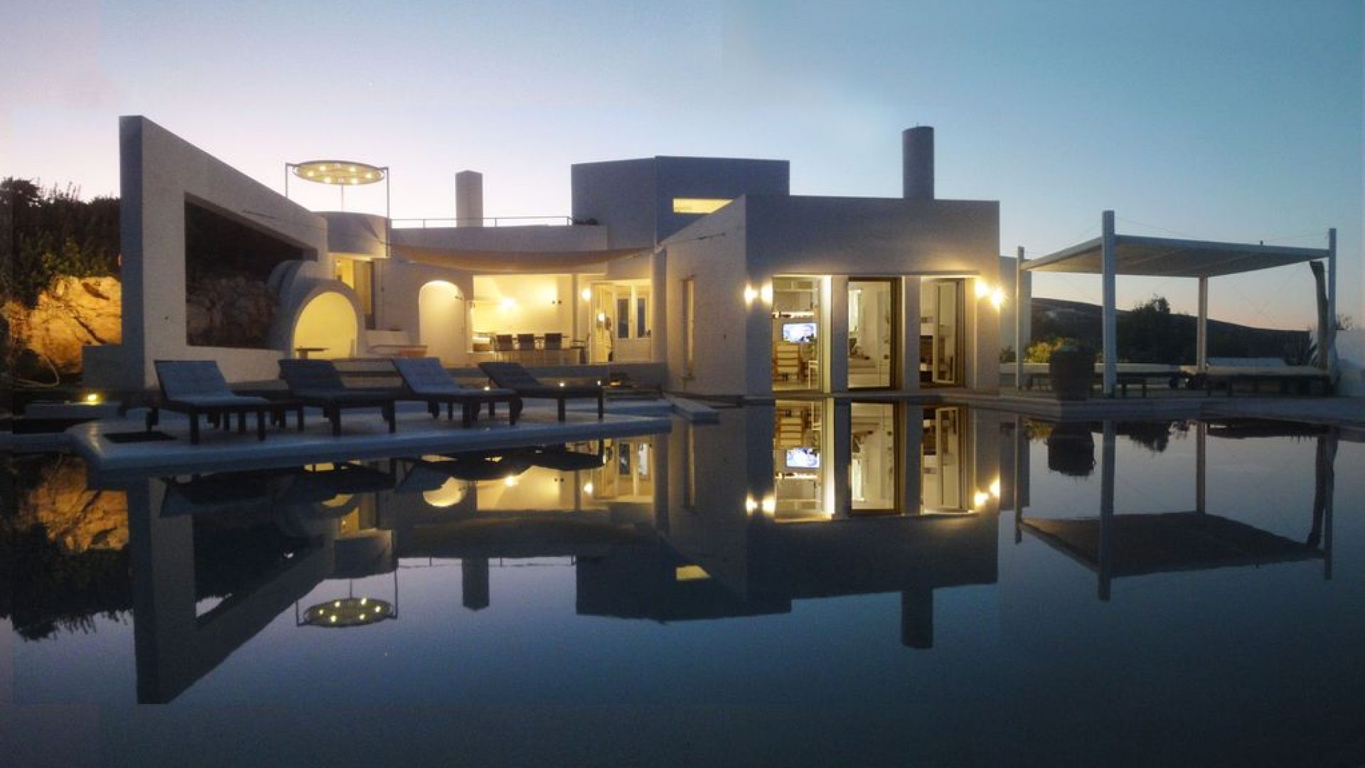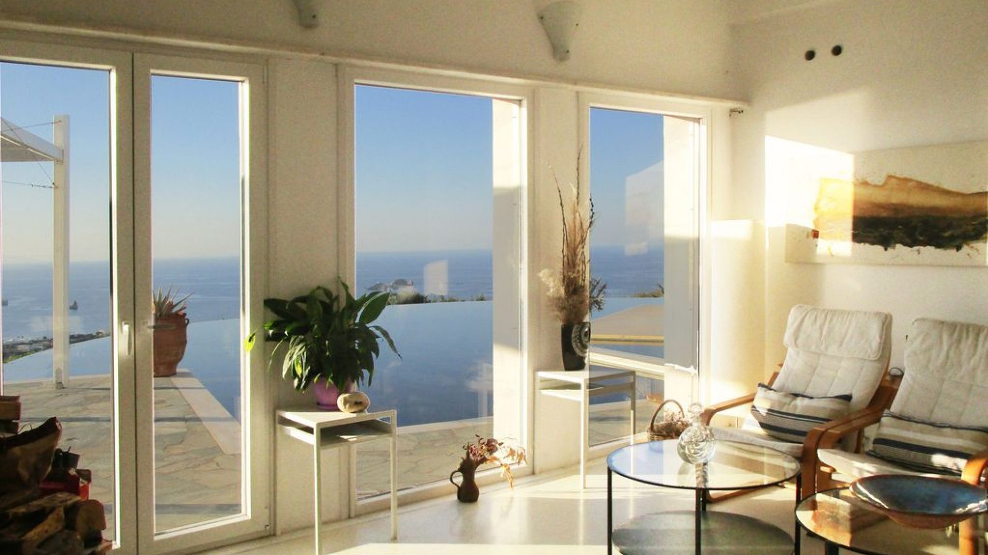 The villa is in a unique location on Paros on top of a hill with 360 degrees panoramic view, from where you can see sixteen islands: some of them are Mykonos, Delos, Tinos, Andros, Siros, Serifos, Milos, and up Sikinos.