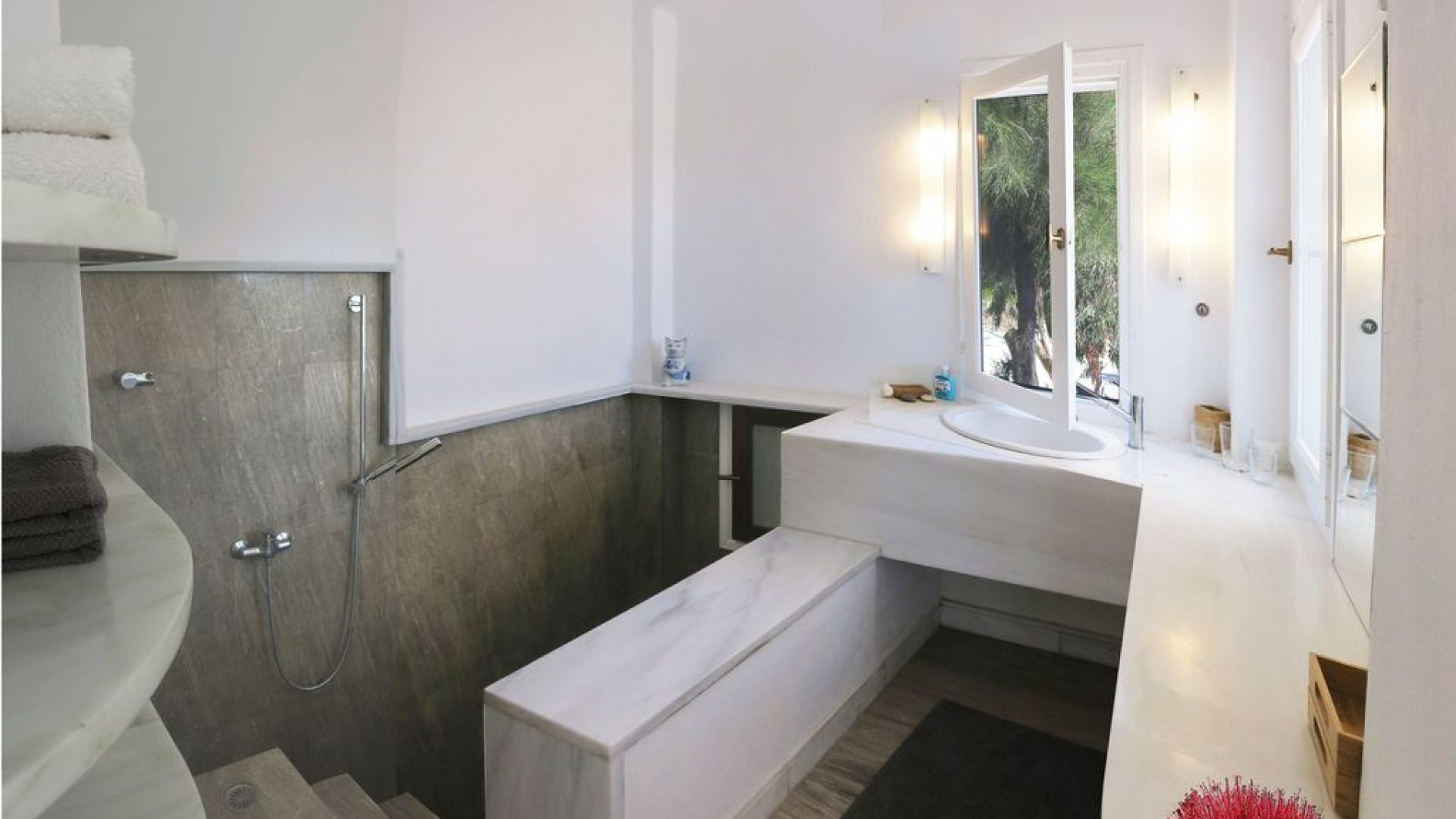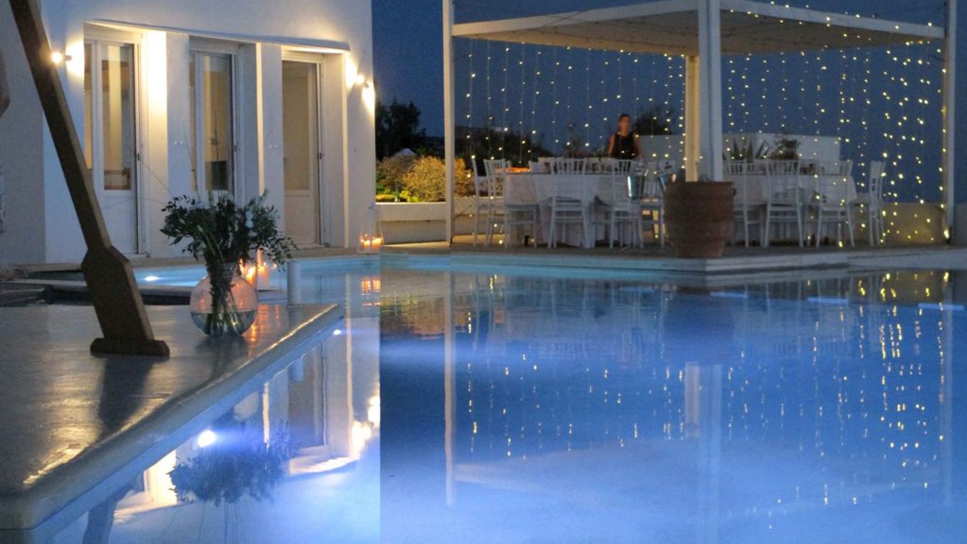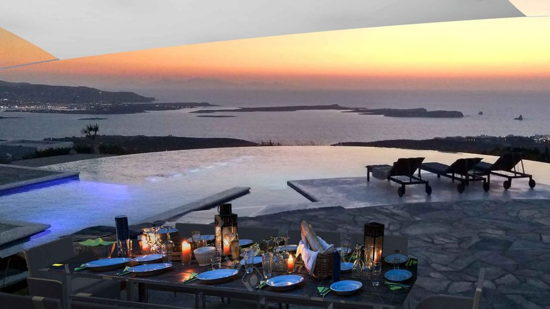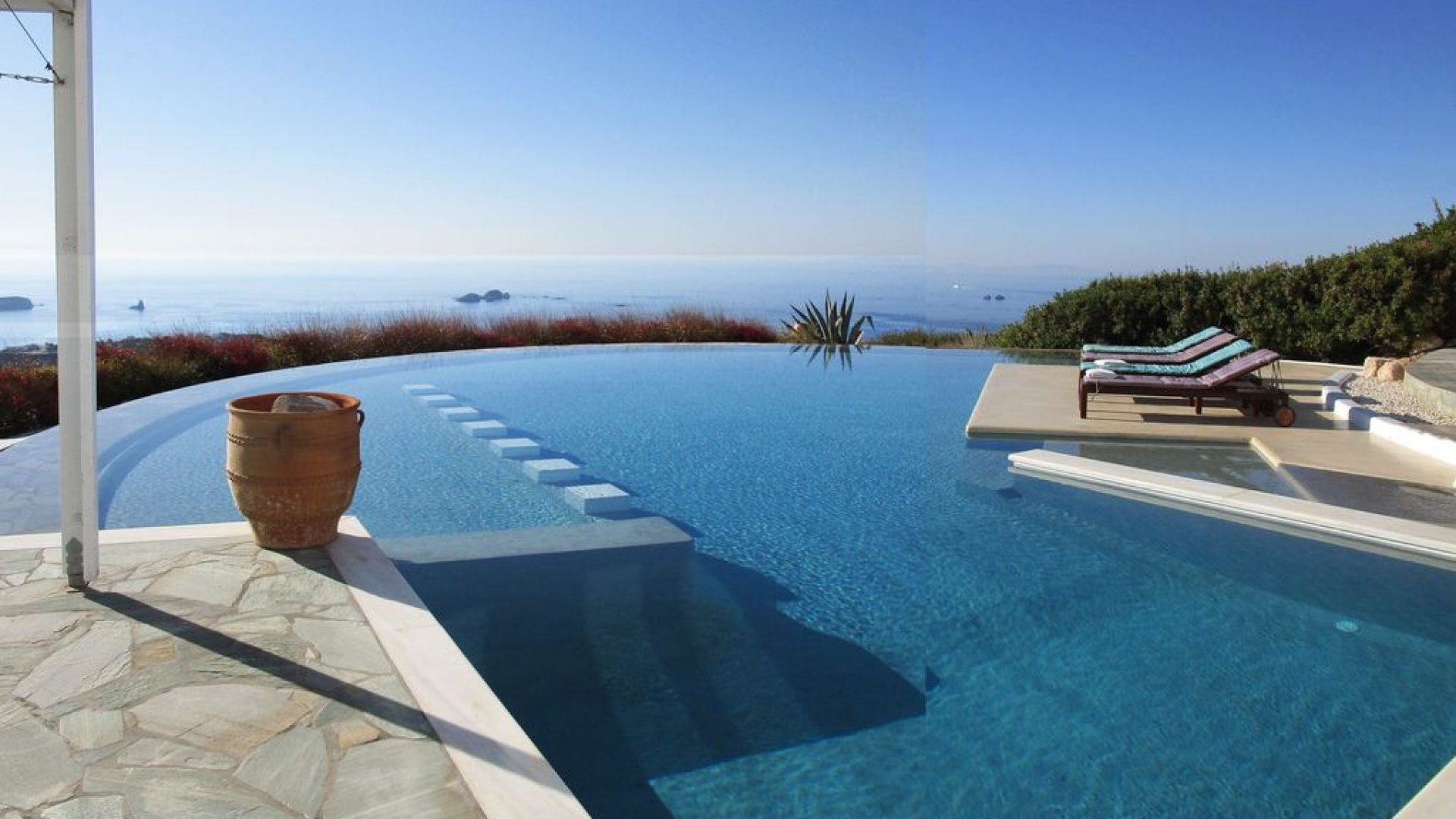 The villa is in a unique location on Paros on top of a hill with 360 degrees panoramic view, from where you can see sixteen islands: some of them are Mykonos, Delos, Tinos, Andros, Siros, Serifos, Milos, and up Sikinos.
