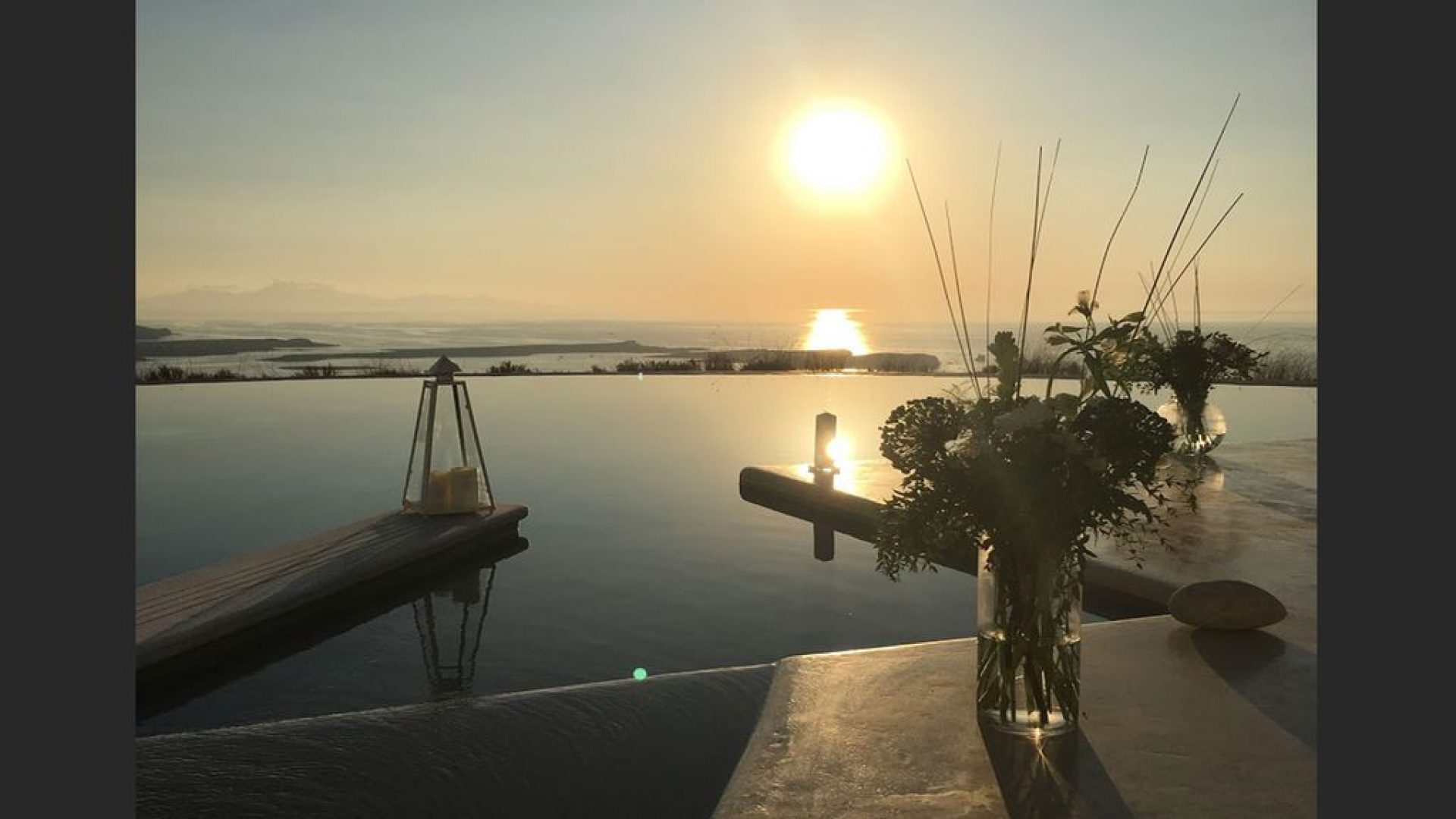 The Pool terrace is surrounded on three sides by the 140m² huge infinity pool, fed with “fresh” water through a small, gently trickling river.