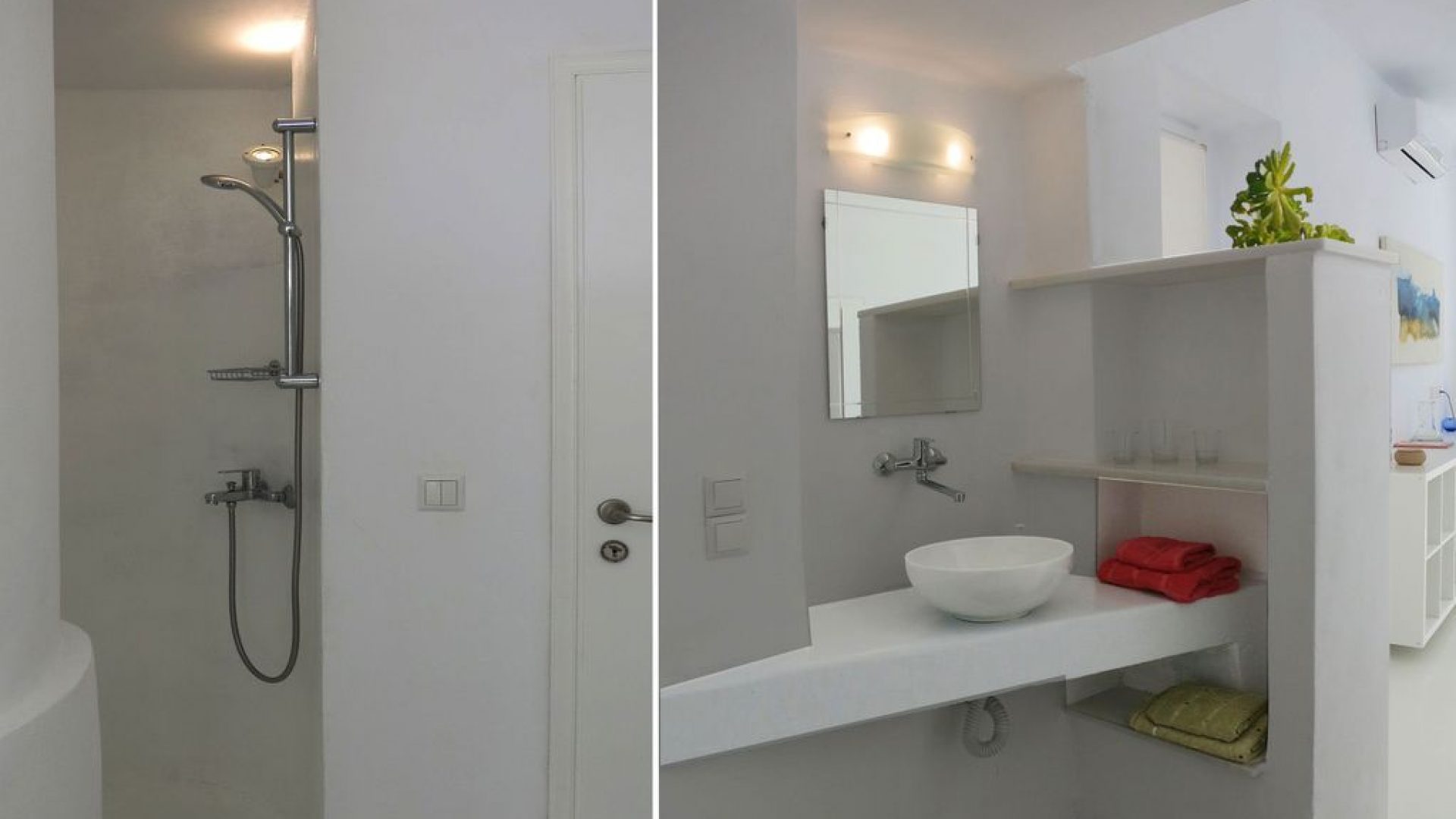 On the first floor with an external entrance is the studio of 20 m2 with its bathroom and terrace. Two more bedrooms with individual bathrooms are on the lower level. One bedroom sleeps 4 people, the other 2. The living room can also sleep one person.