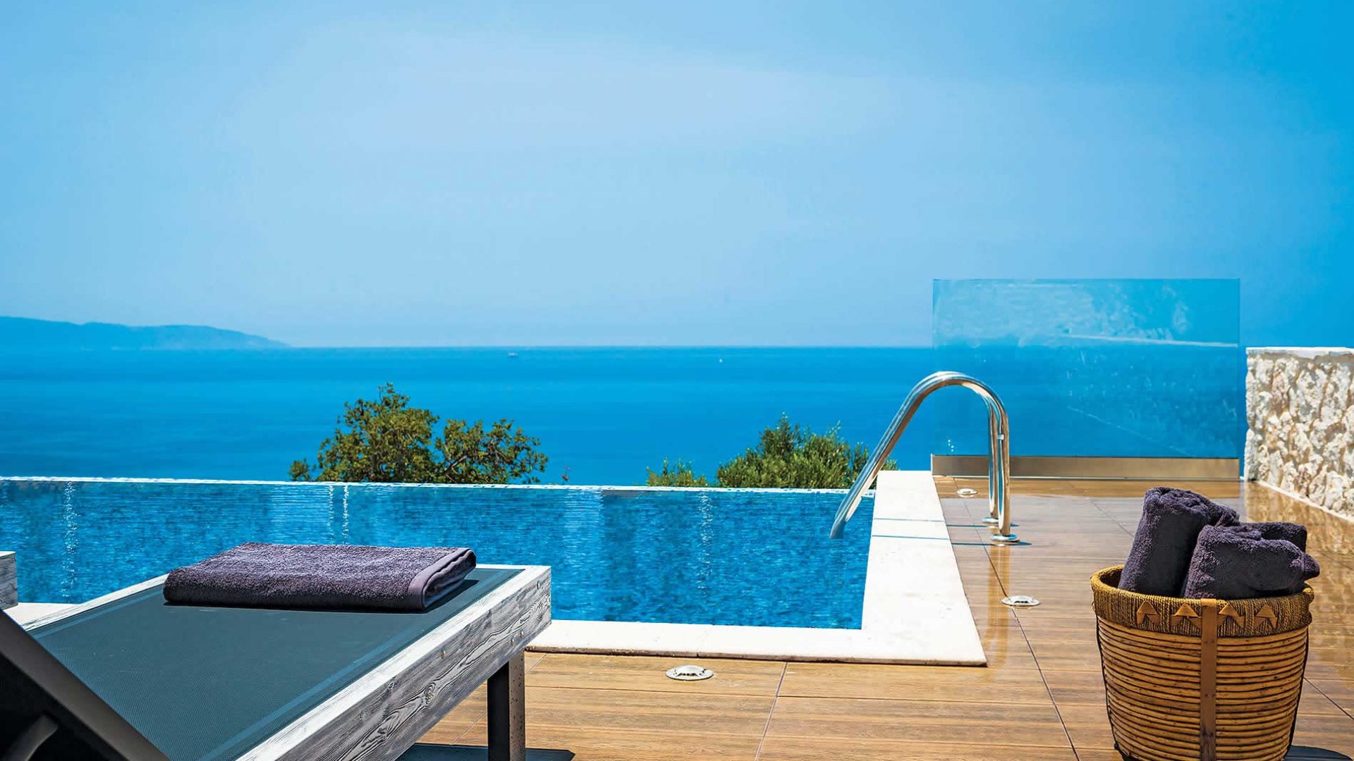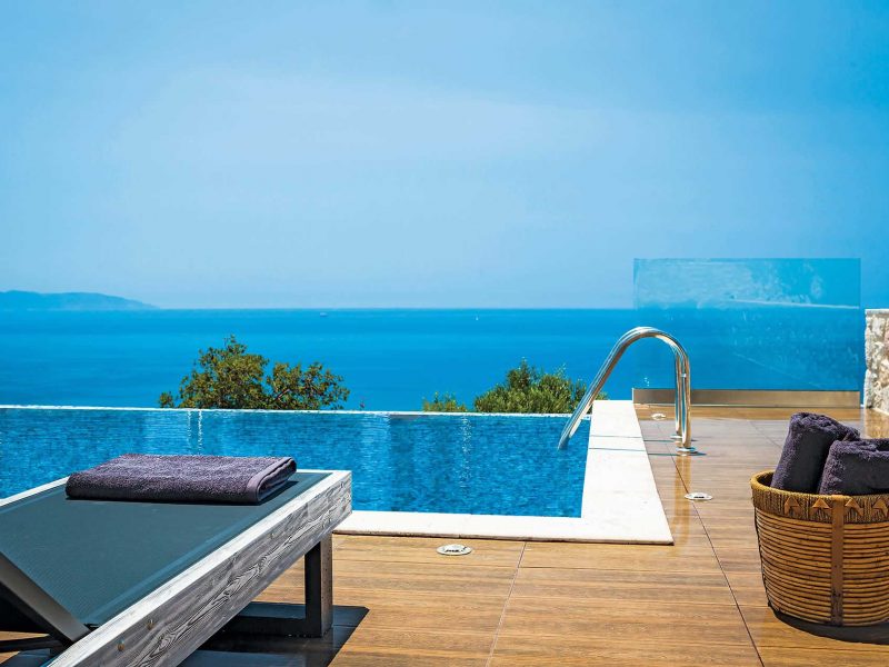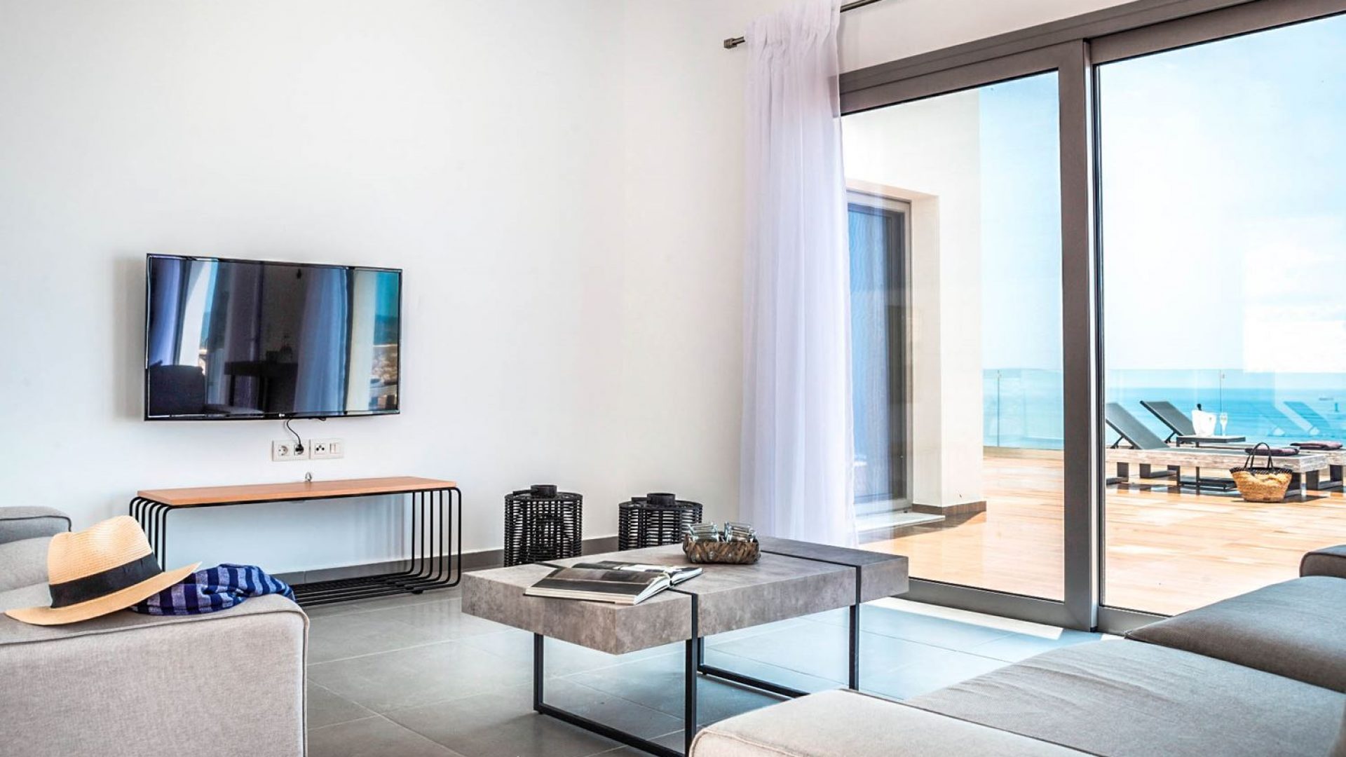 This luxurious 3 Bedroom Villa is designed to offer guests tranquility, inside and outside. It boasts unrivalled sea views from the comfort of its terrace with a private swimming pool, while indoors the fully air-conditioned ambience of the minimal yet refined, smooth whitewashed lines and eclectic patterns are absolutely soothing.