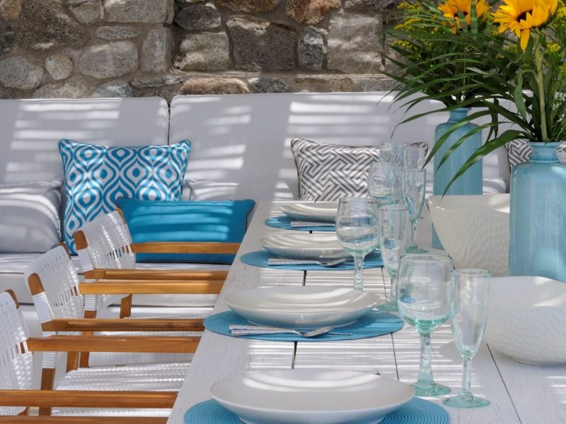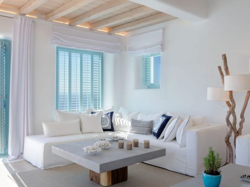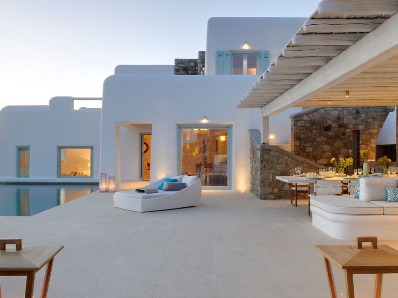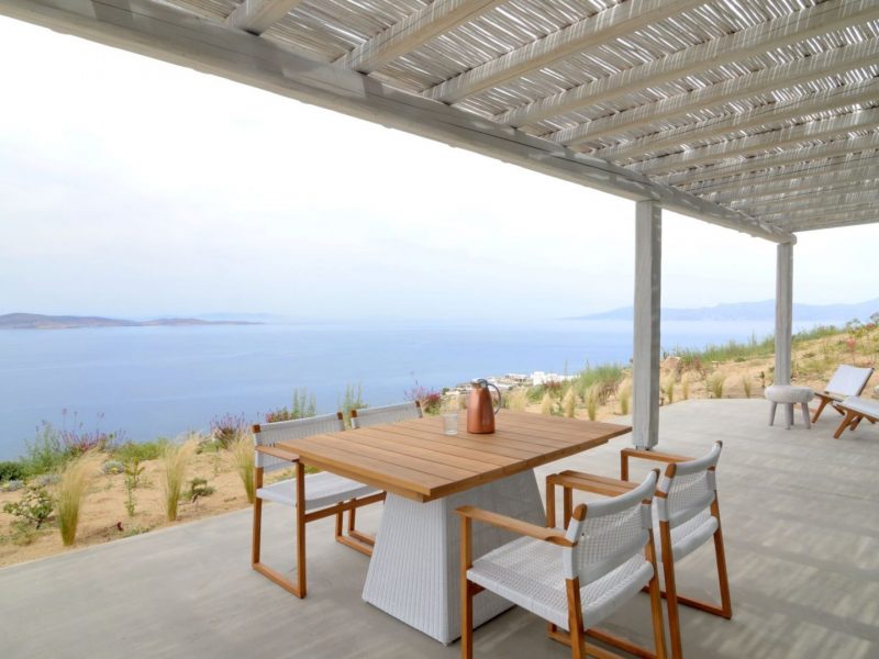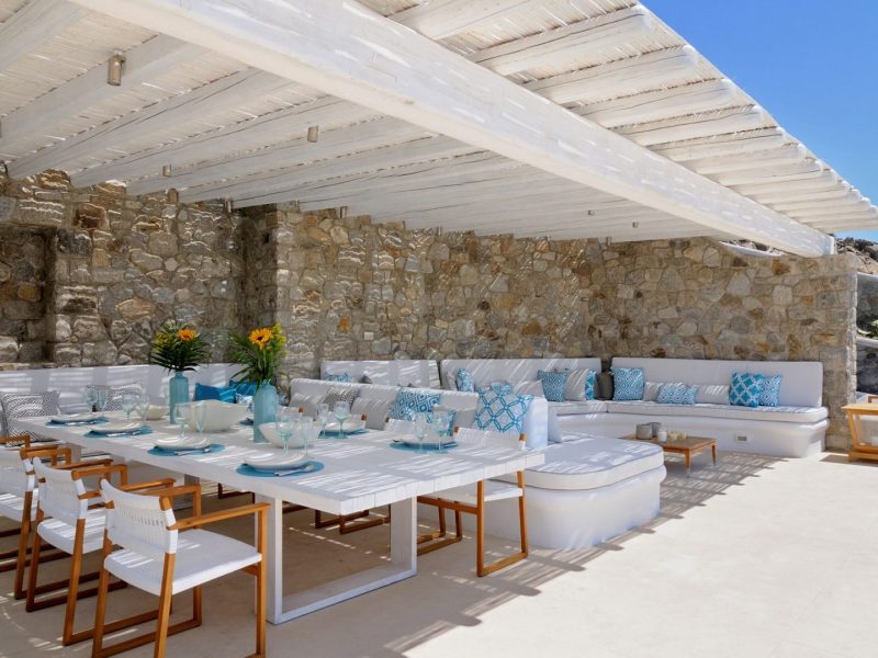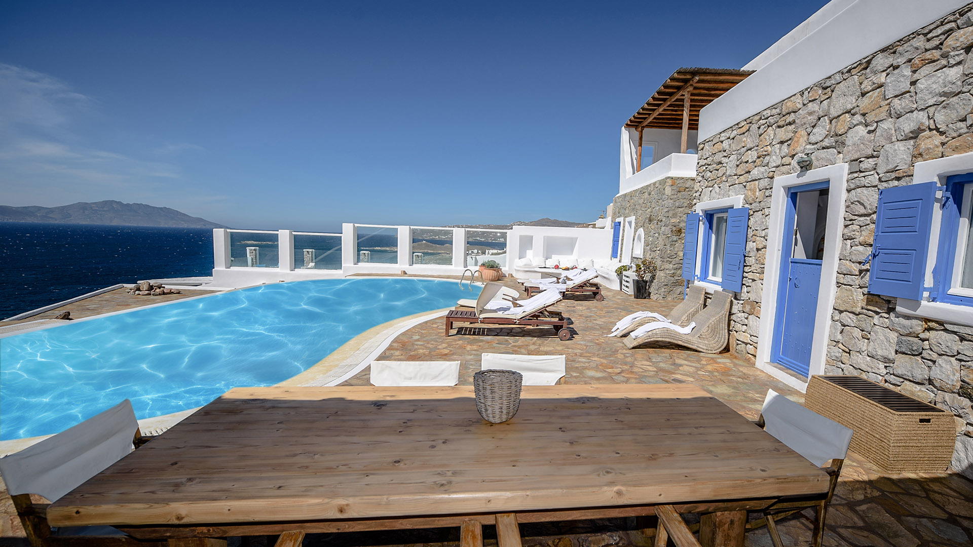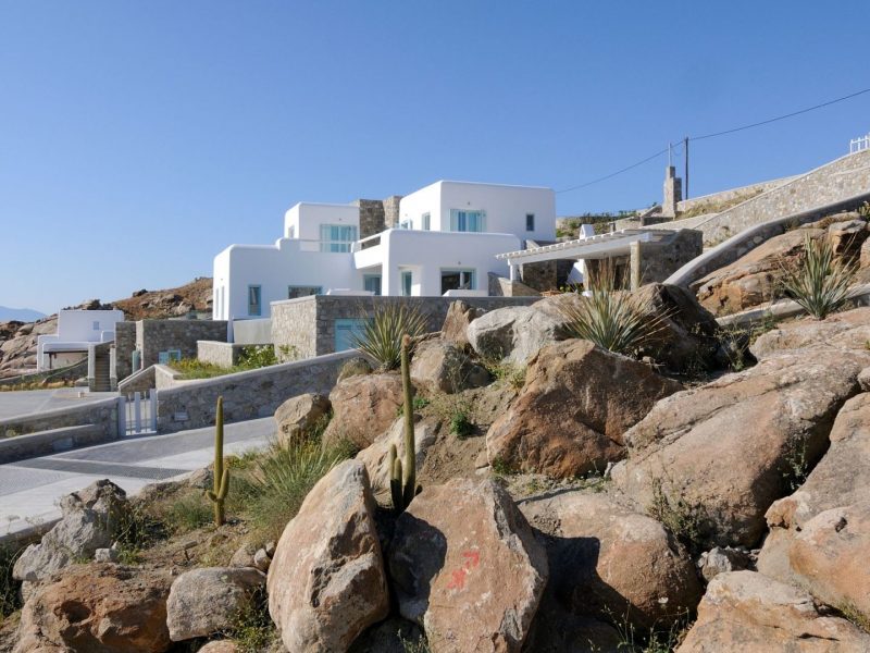 Marvelous views of picturesque Delos and Rhenia islands and enviable island living harmoniously merge into a stunning home that embraces its residents. The stunning views of Delos and Rhenia are perfectly matched by whitewashed architectural elements and natural stone walls.