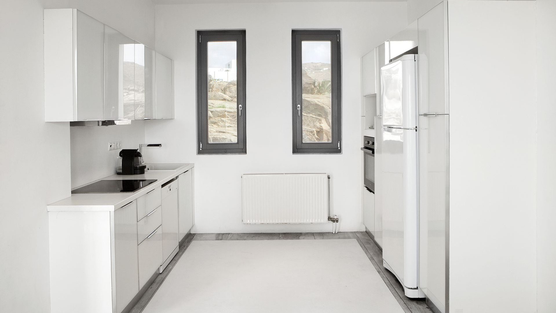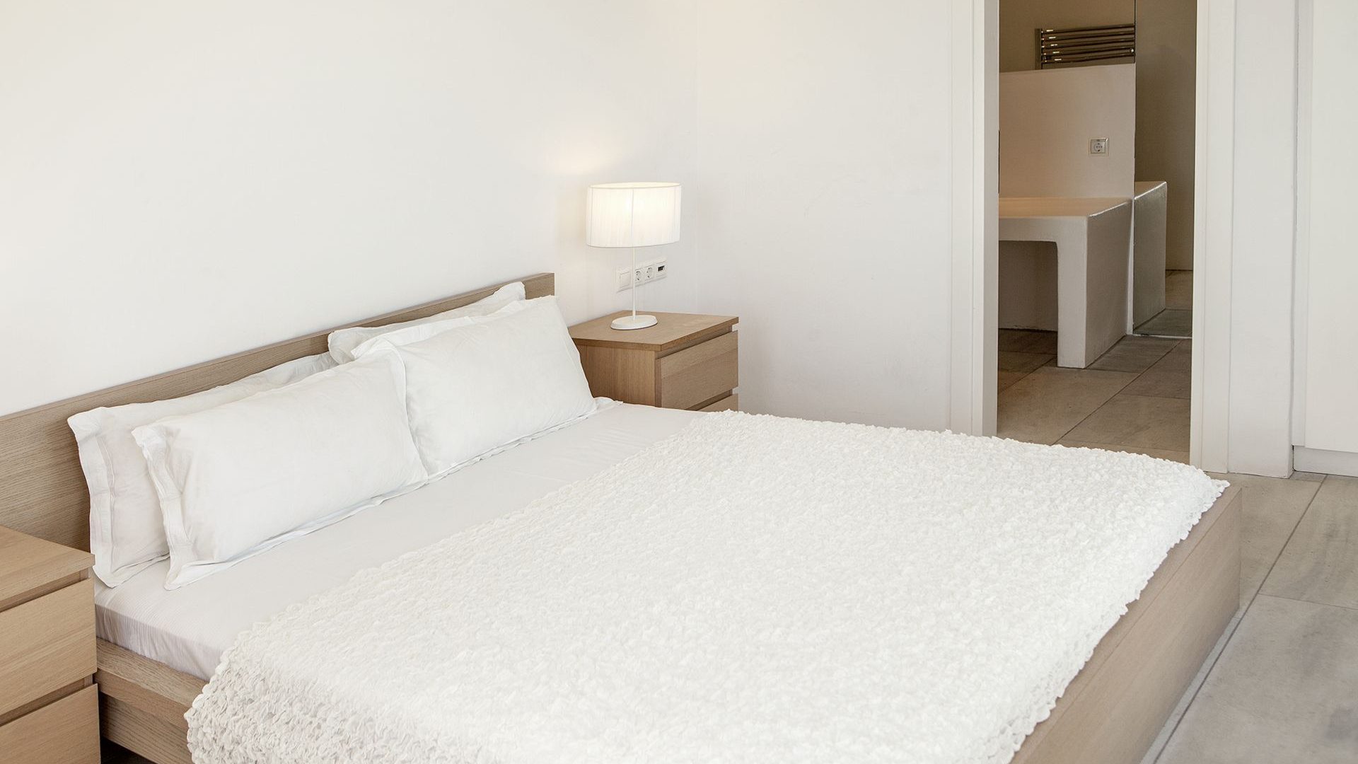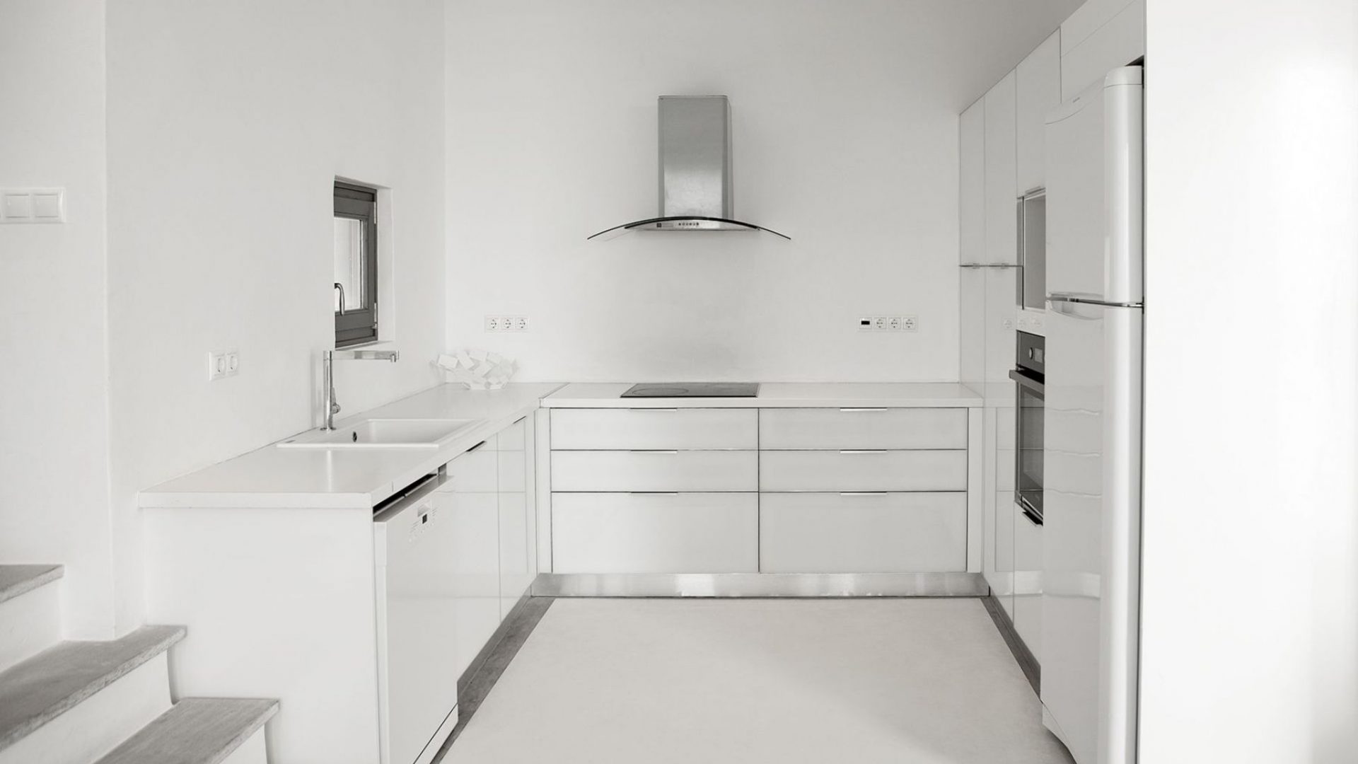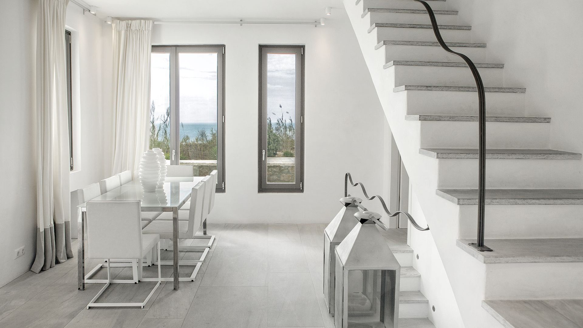 The villa is an excellent example of modern architecture. It is spacious with an all-white contemporary décor that gives a touch of luxurious purity. There is a modern open kitchen, with a cozy, charming dining area and a bright living room with direct access to the pool terrace.