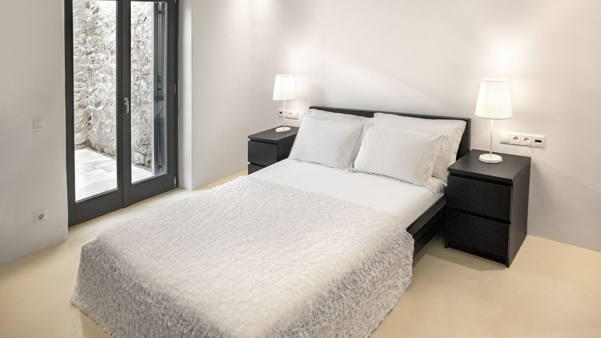 1 Guest Bedroom with double bed, A/C, direct access to pool terrace via French doors and staircase