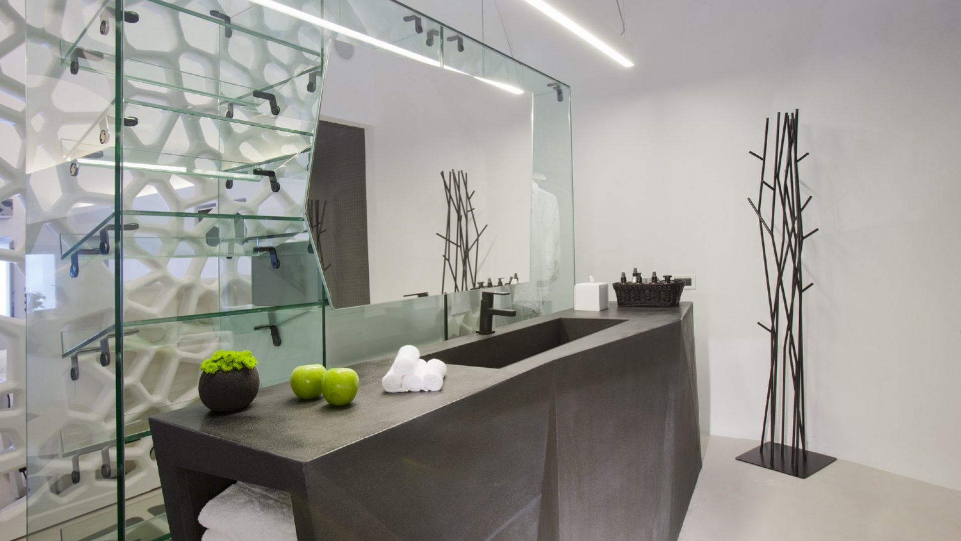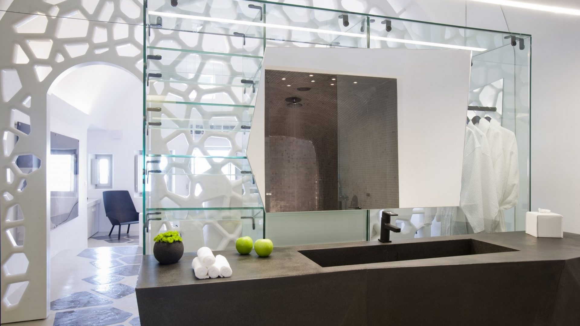 Two exquisite bedrooms (including the 75 sqm master), complete with king-size beds and their bathrooms with personalized bathrobes, look out towards a panoramic view of Santorini’s azure blue skies, sparkling ocean and of course the legendary Santorini sunset. In one-bedroom format, The Villa is a honeymoon suite beyond compare. A baby cot can be provided upon request.