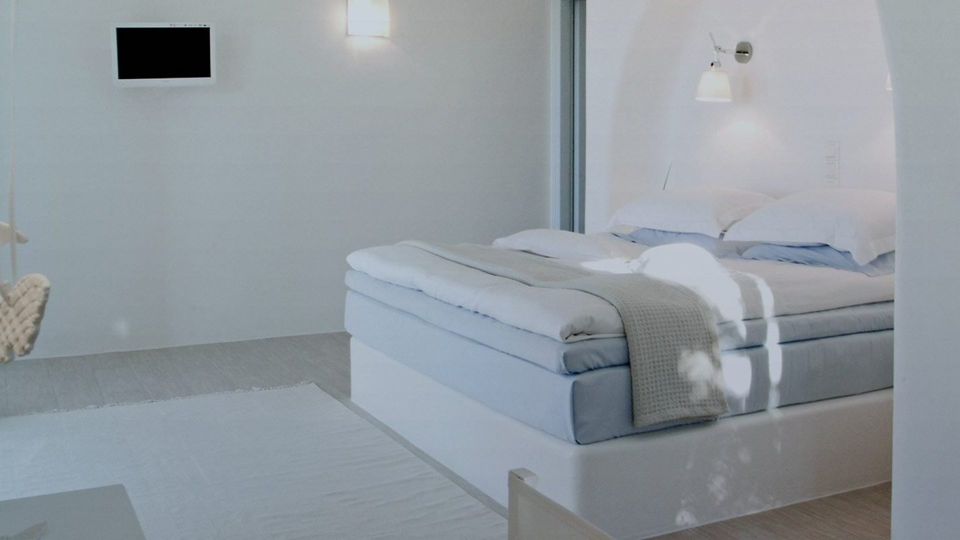 The Calissa luxury villa features a private terrace with a 130 square meters long swimming pool and a 25 m long aquatic treadmill as well as lounging areas under shaded pergolas. Guests staying at this private holiday villa in Paros Island are welcome to dive in the tranquil waters of the pool, unwind in view of the emerald sea and enjoy the miraculous views to the endless horizon and the 10 neighboring islands.