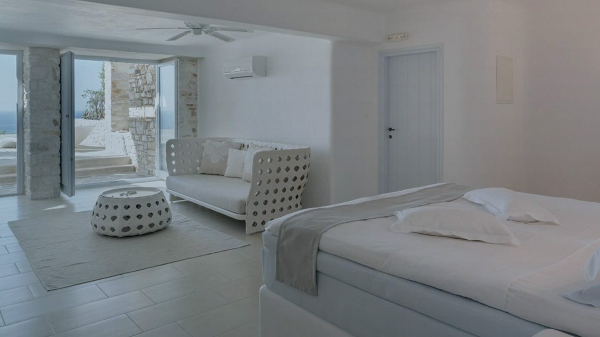 Rightfully regarded as one of the most luxury villas in Paros Island near Chryssi Akti (Golden Beach), the private sea view villa offers a sanctuary of luxurious refinement and unpretentious tranquility.