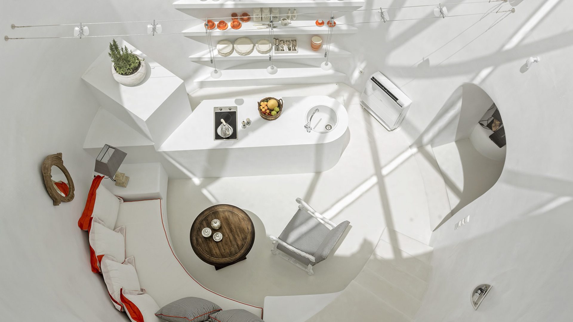Two old kilns were totally restored and rebuilt in 2014 with respect to the Cycladic architecture using only eco-friendly materials.