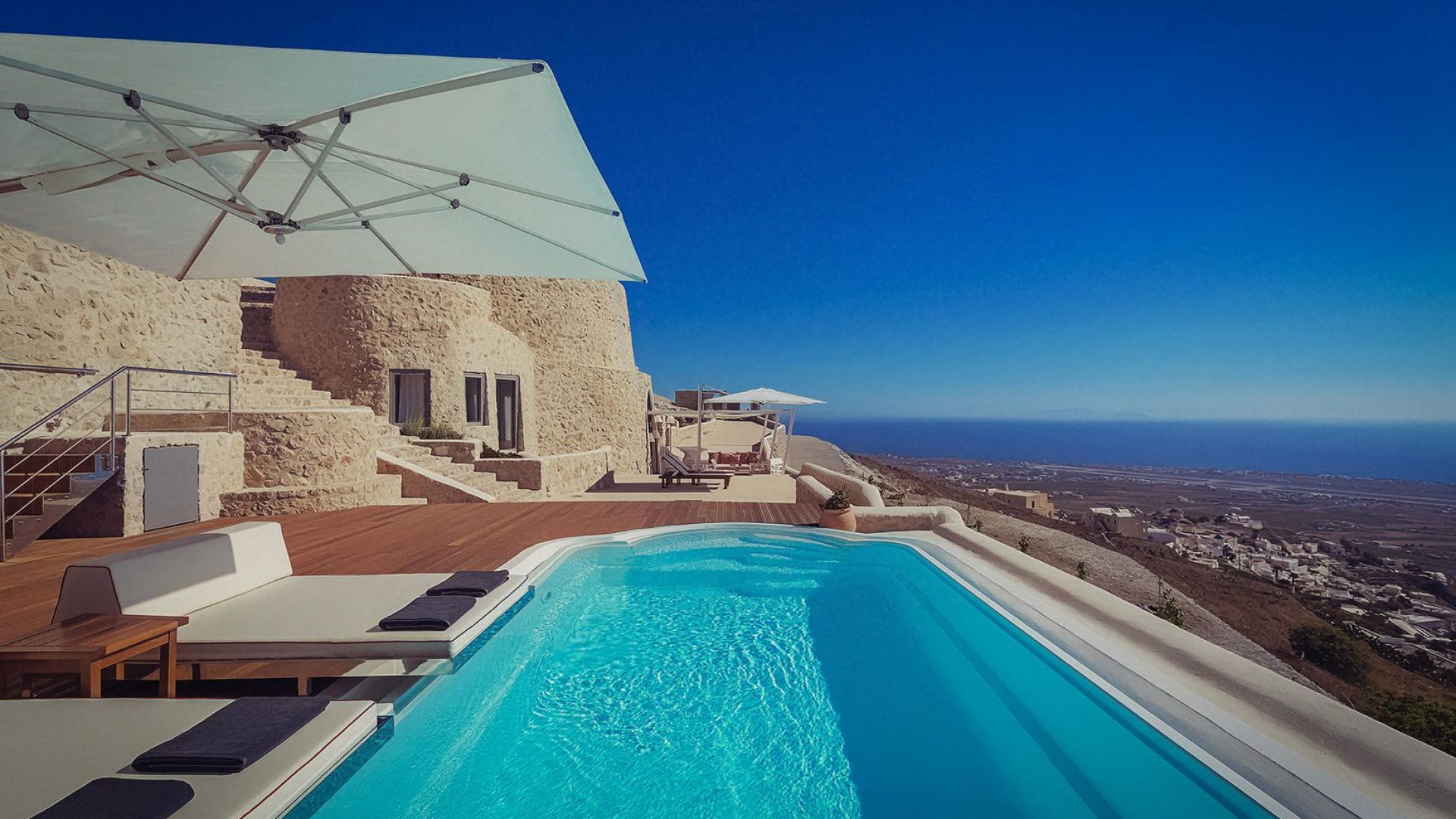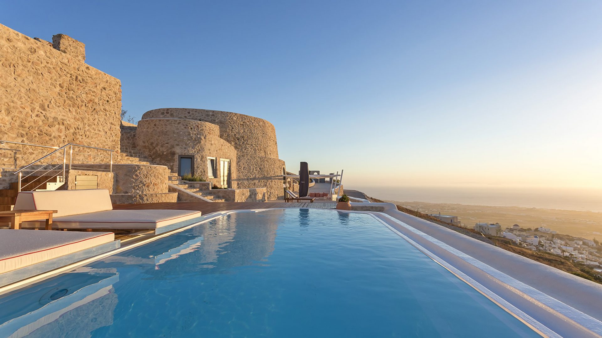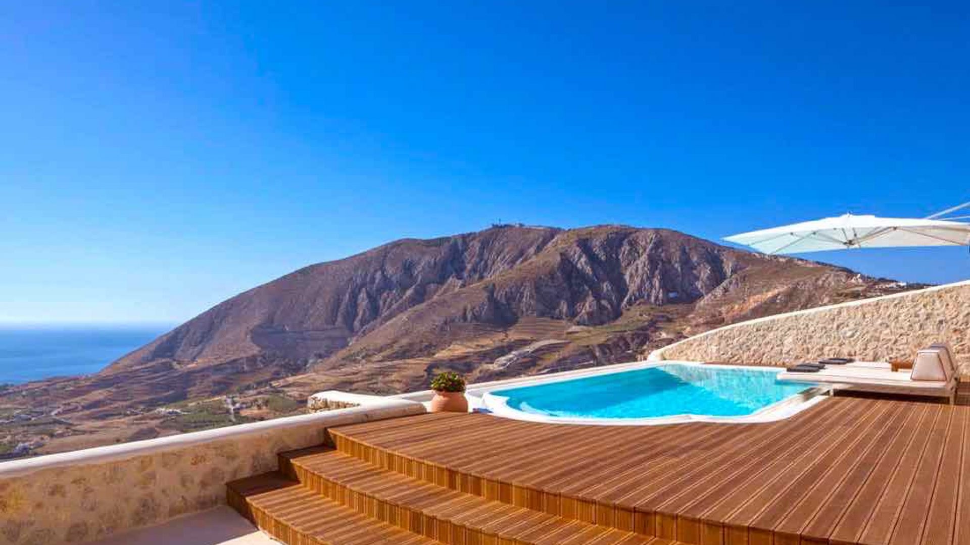 Camino Villa is situated at the top of a steep slope, at the east part of the island and it enjoys stunning views of the Aegean Sea, spectacular view to the eastern part of Santorini and the nearby islands.