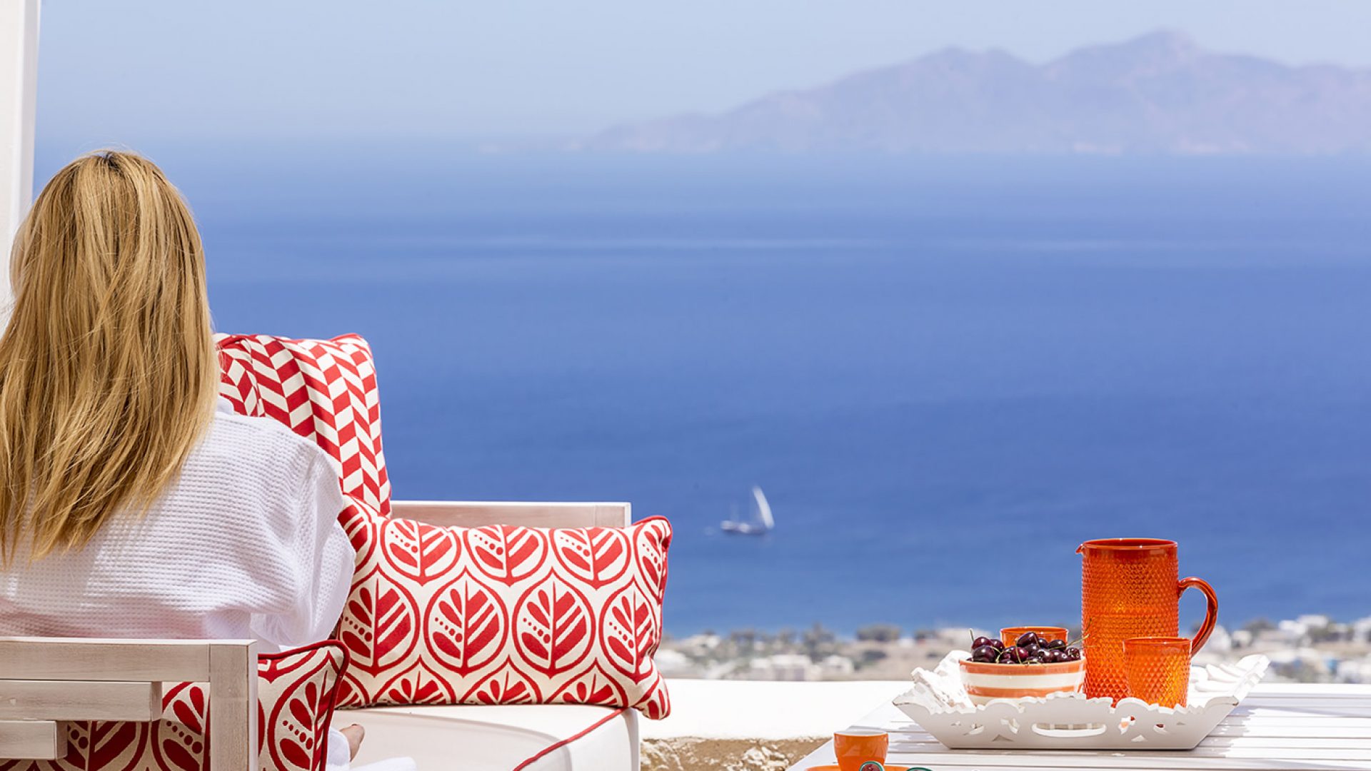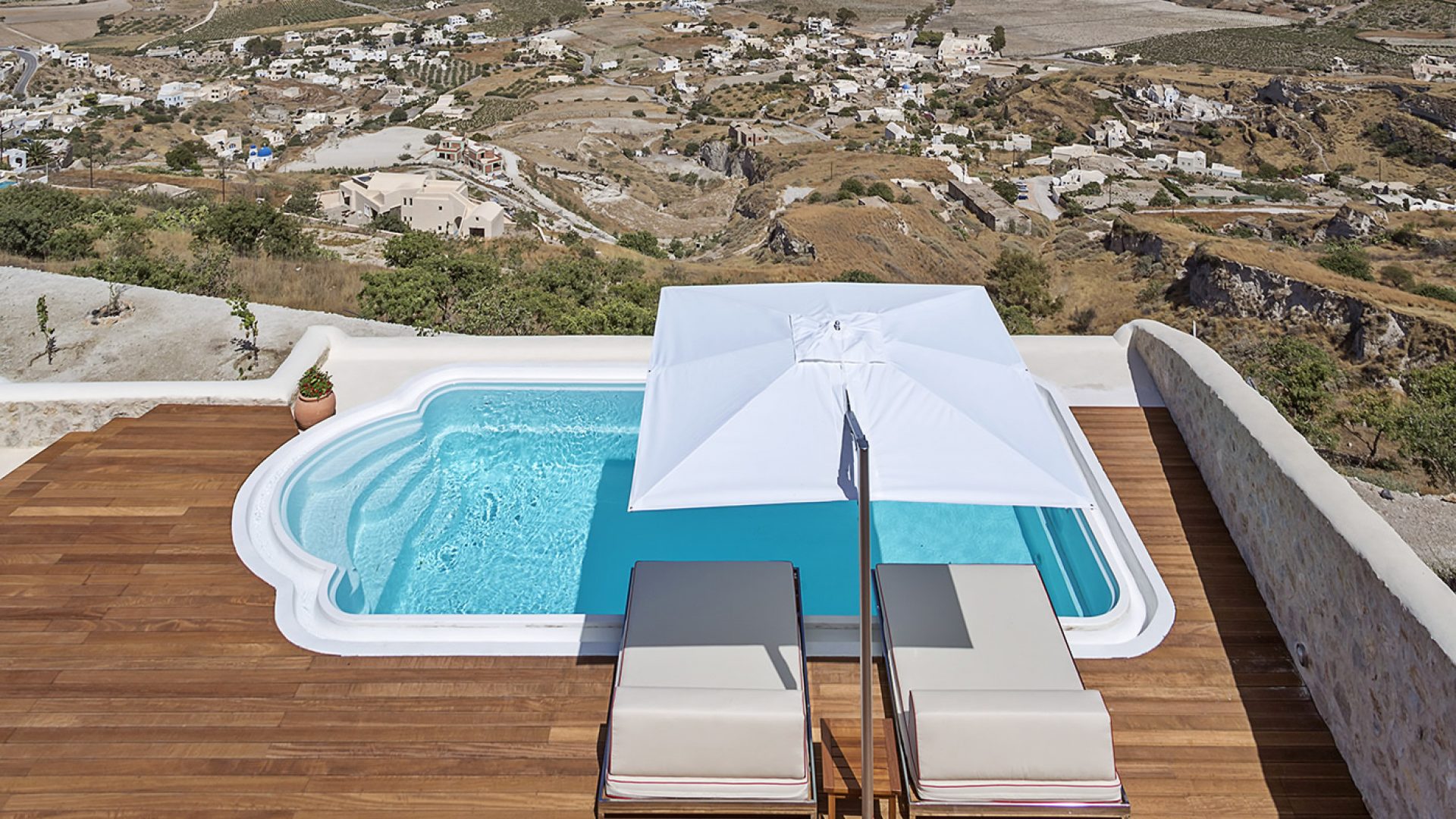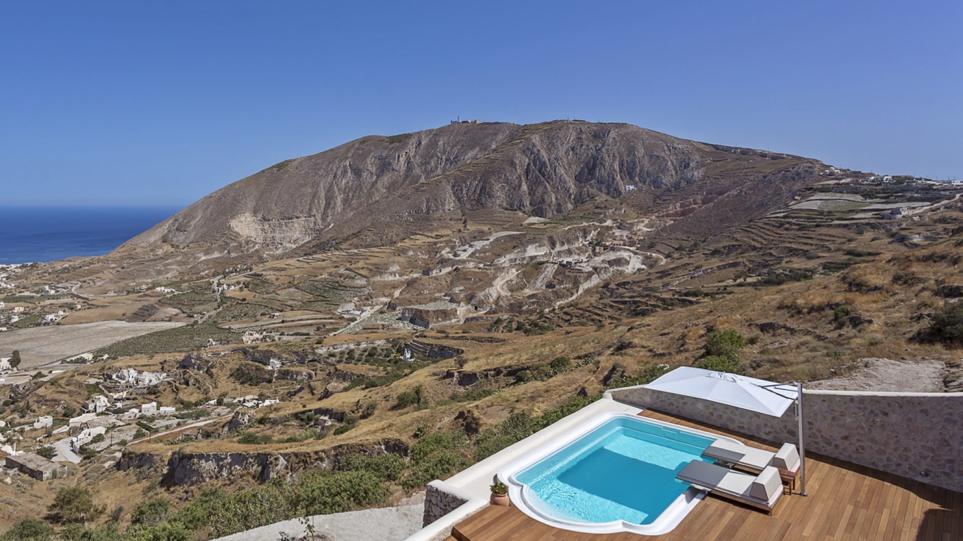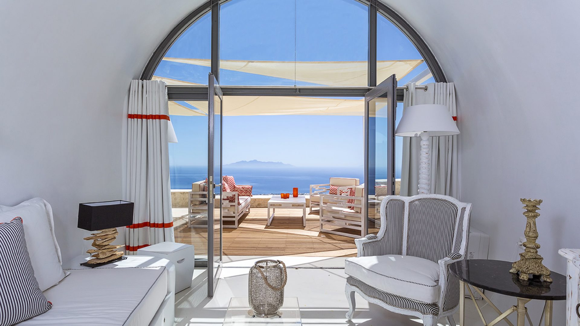 Camino Villa is situated at the top of a steep slope, at the east part of the island and it enjoys stunning views of the Aegean Sea, spectacular view to the eastern part of Santorini and the nearby islands.