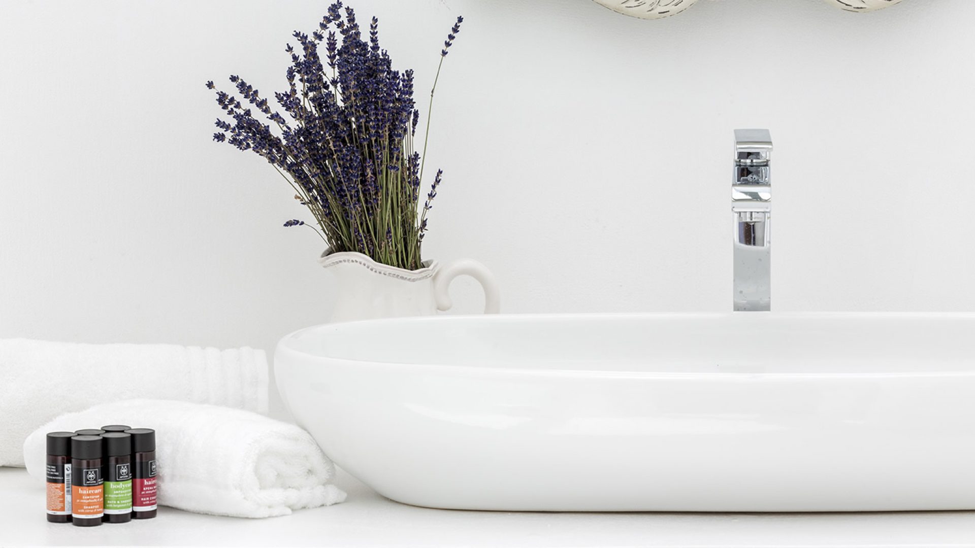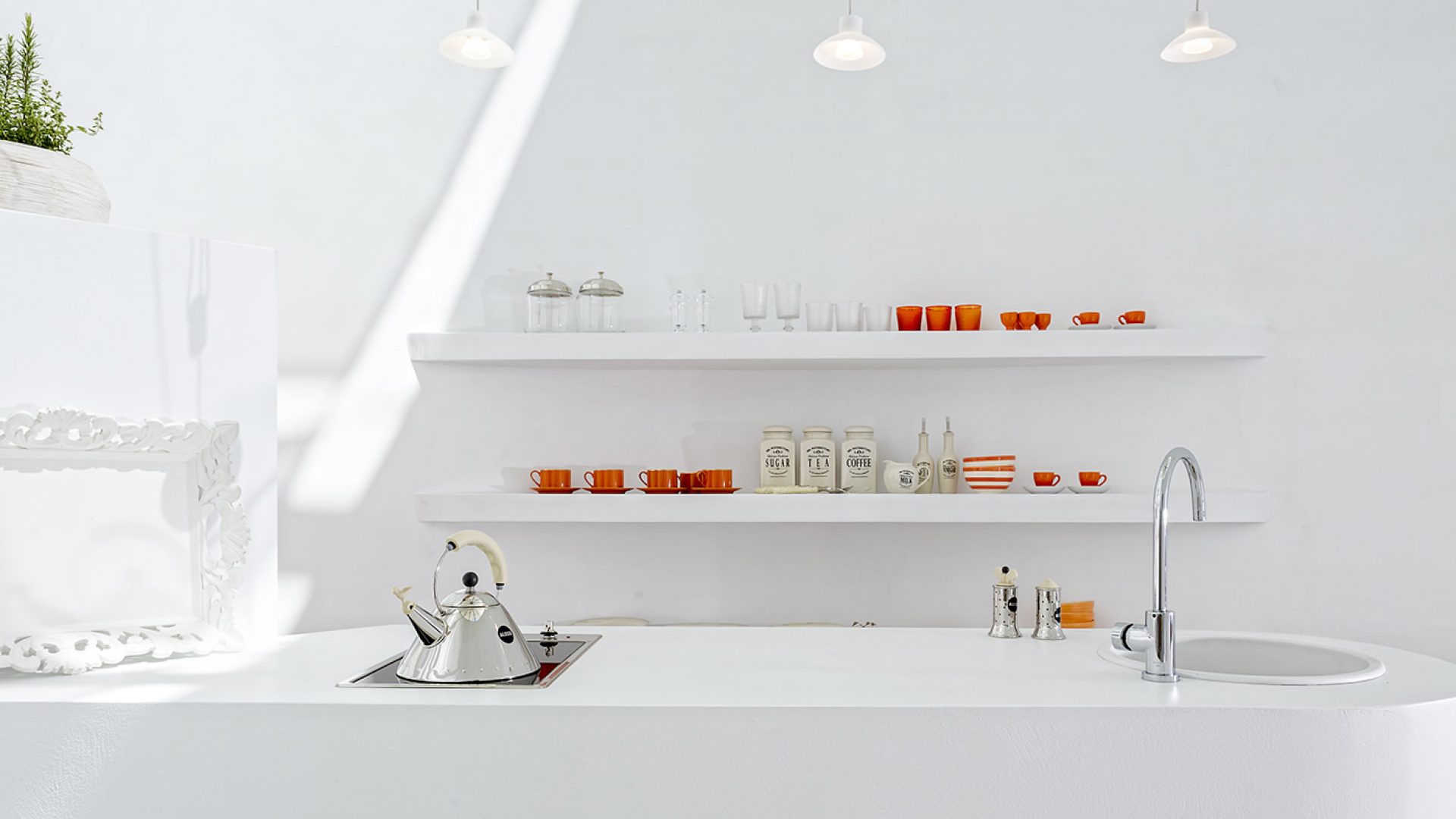 The white minimal interior of the property with smooth curved edges and simple deco gives you a relaxing ambiance.