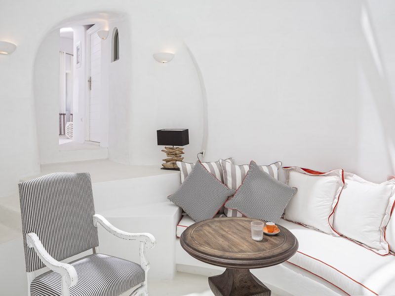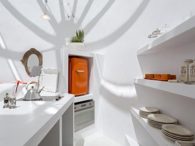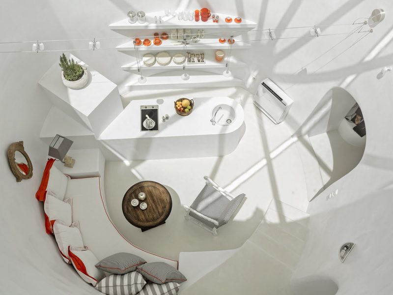 Two old kilns were totally restored and rebuilt in 2014 with respect to the Cycladic architecture using only eco-friendly materials.