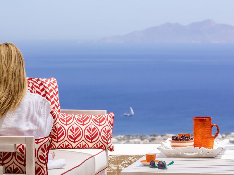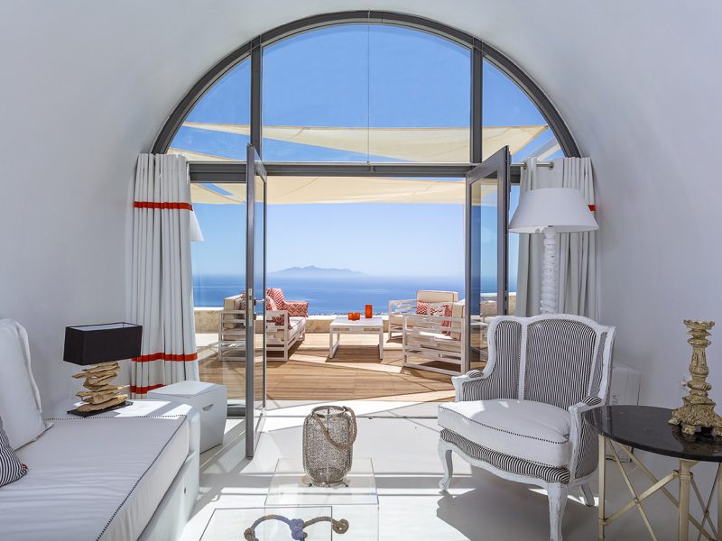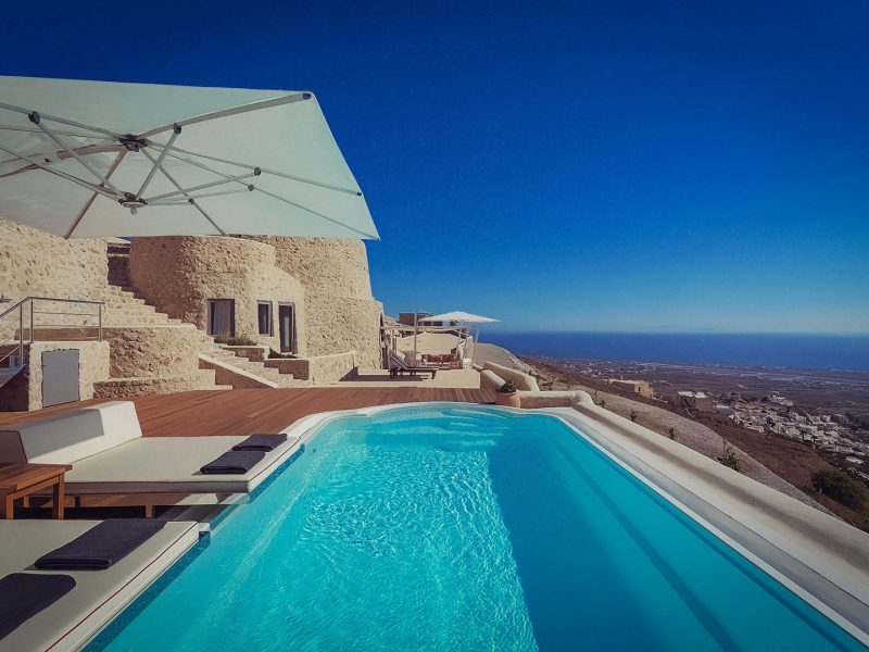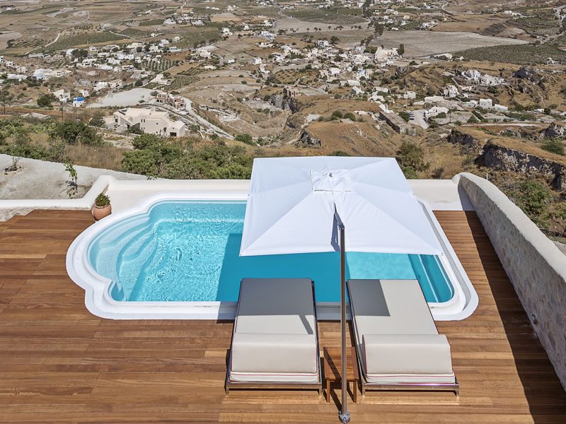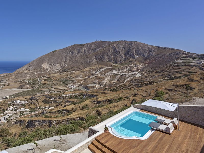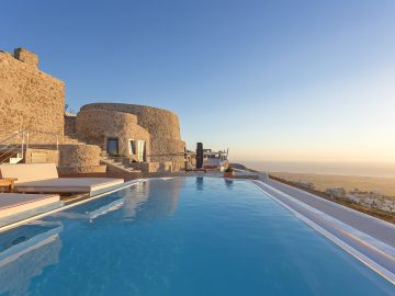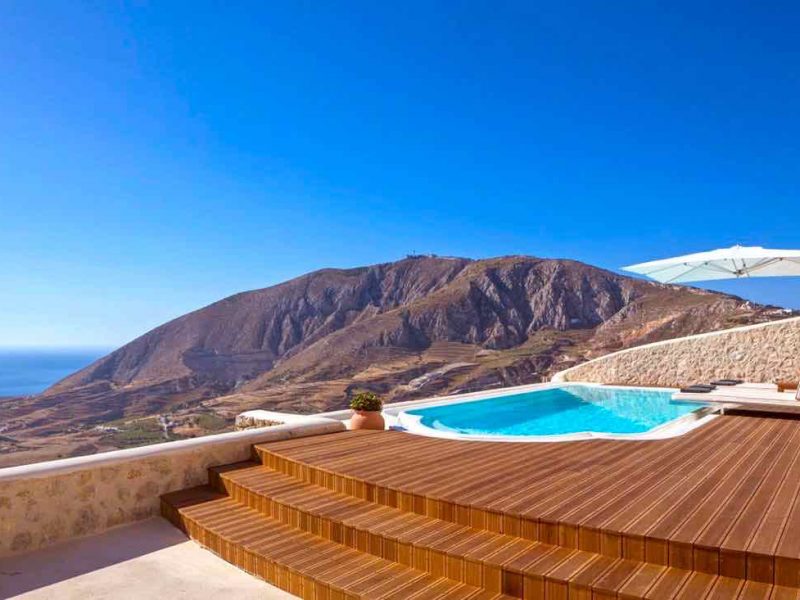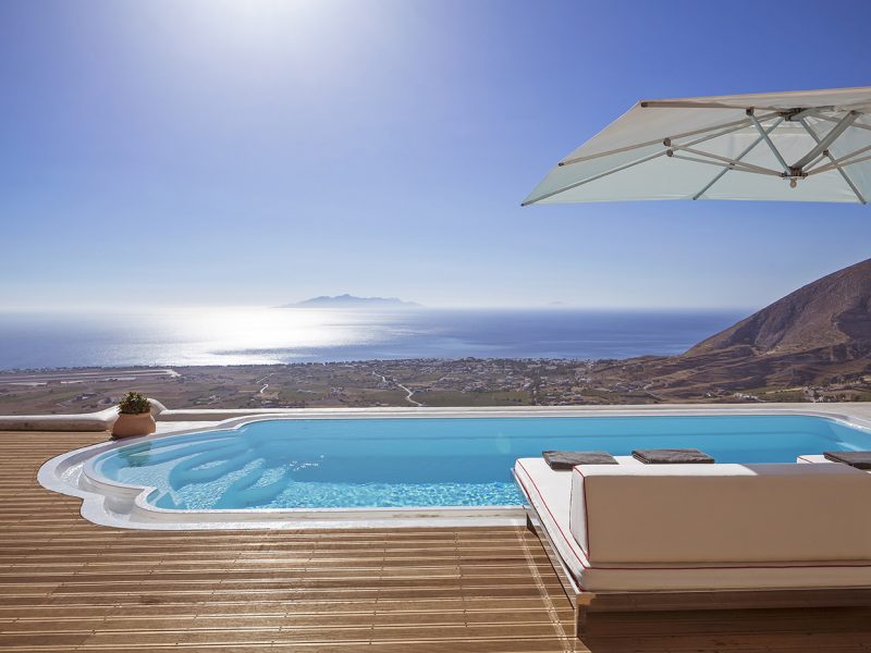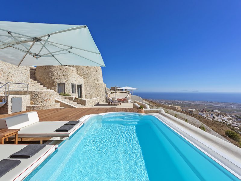 Camino Villa is situated at the top of a steep slope, at the east part of the island and it enjoys stunning views of the Aegean Sea, spectacular view to the eastern part of Santorini and the nearby islands.