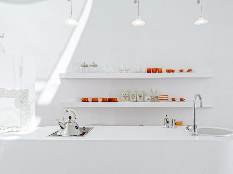 The white minimal interior of the property with smooth curved edges and simple deco gives you a relaxing ambiance.