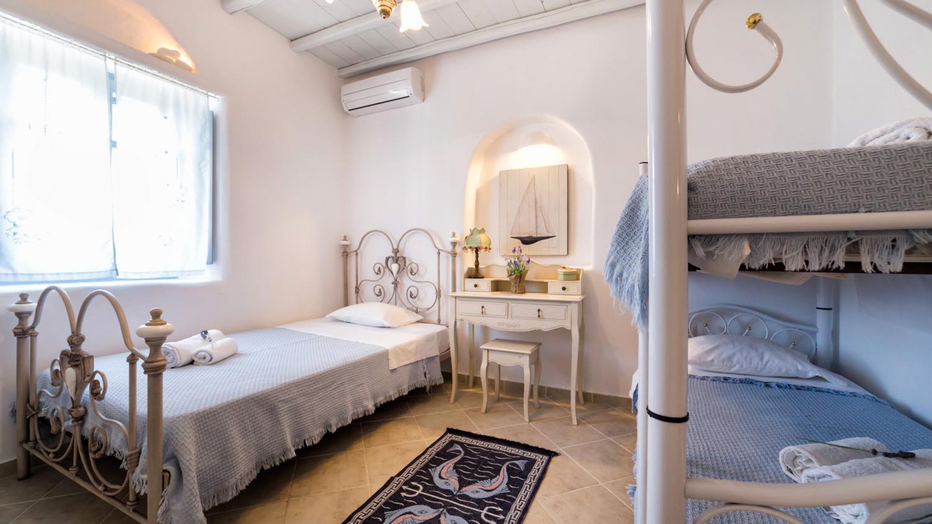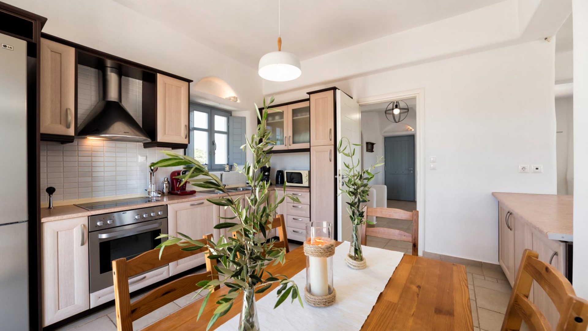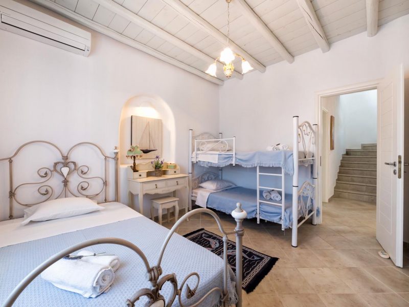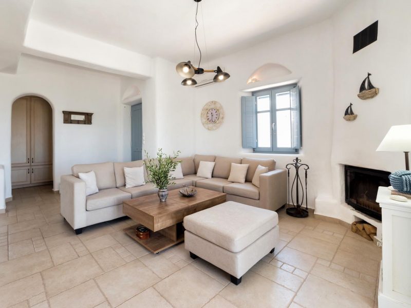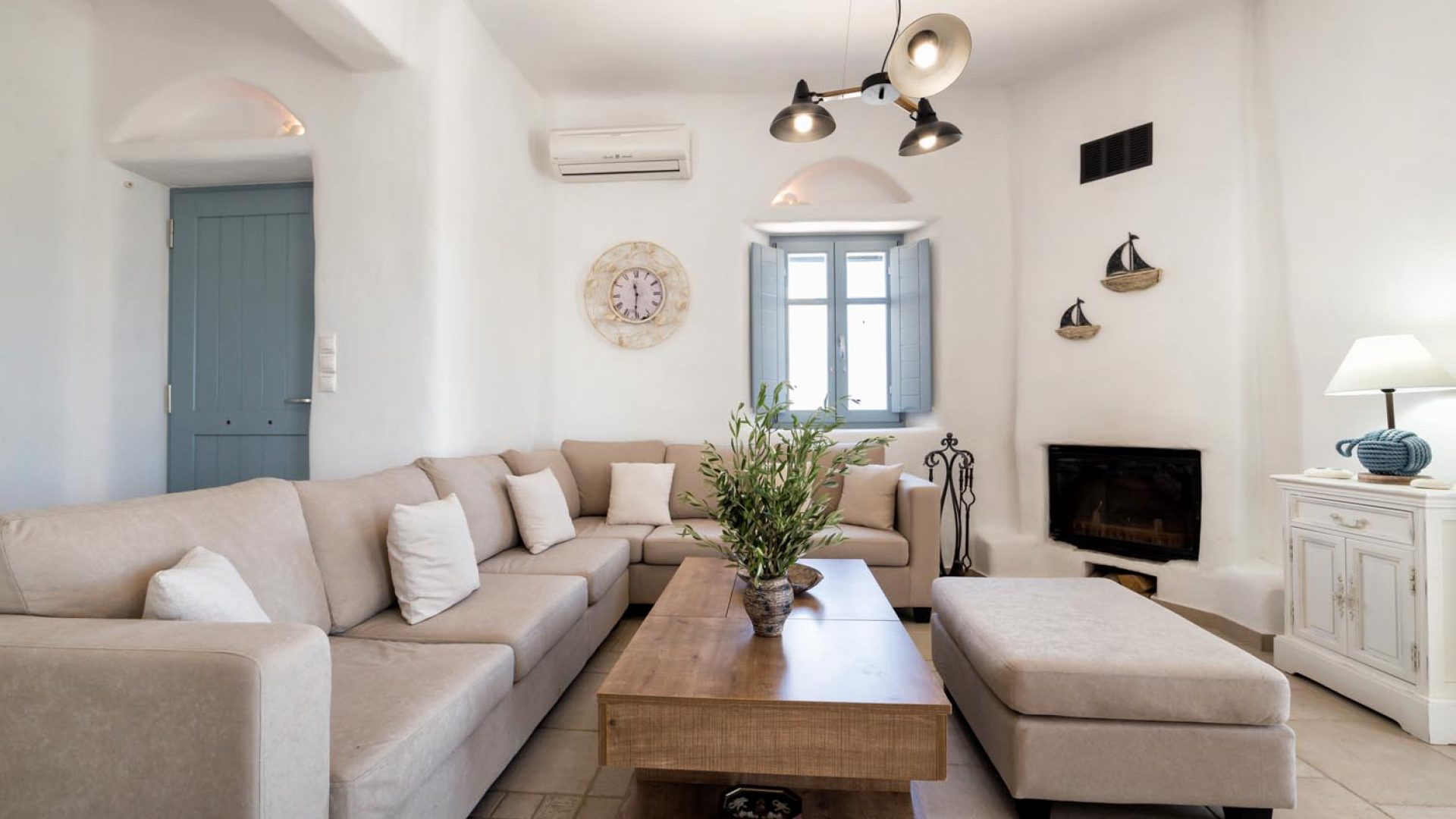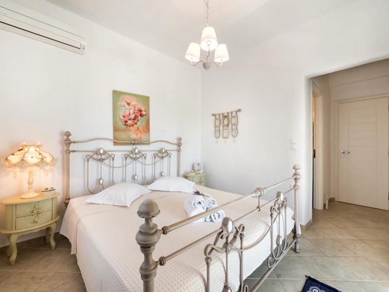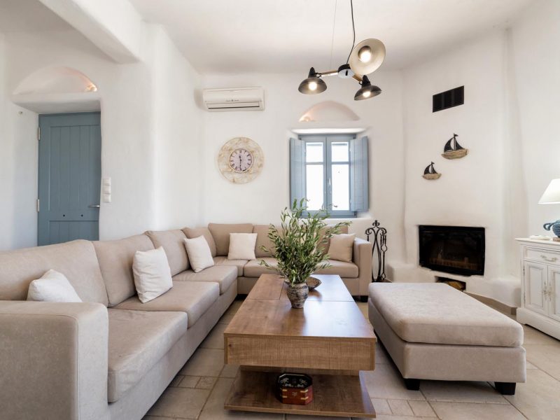 Fitted with wrought-iron beds and decorated in white and grey tones, Villa Drios features a laundry room with a washing machine and ironing facilities, a living room with a fireplace and a fully-equipped kitchen. Facilities also include air-conditioning, a coffee machine, an oven, and a dishwasher. Guests can relax at the furnished sun terraces overlooking the garden and the sea or use the BBQ facilities and enjoy a meal.