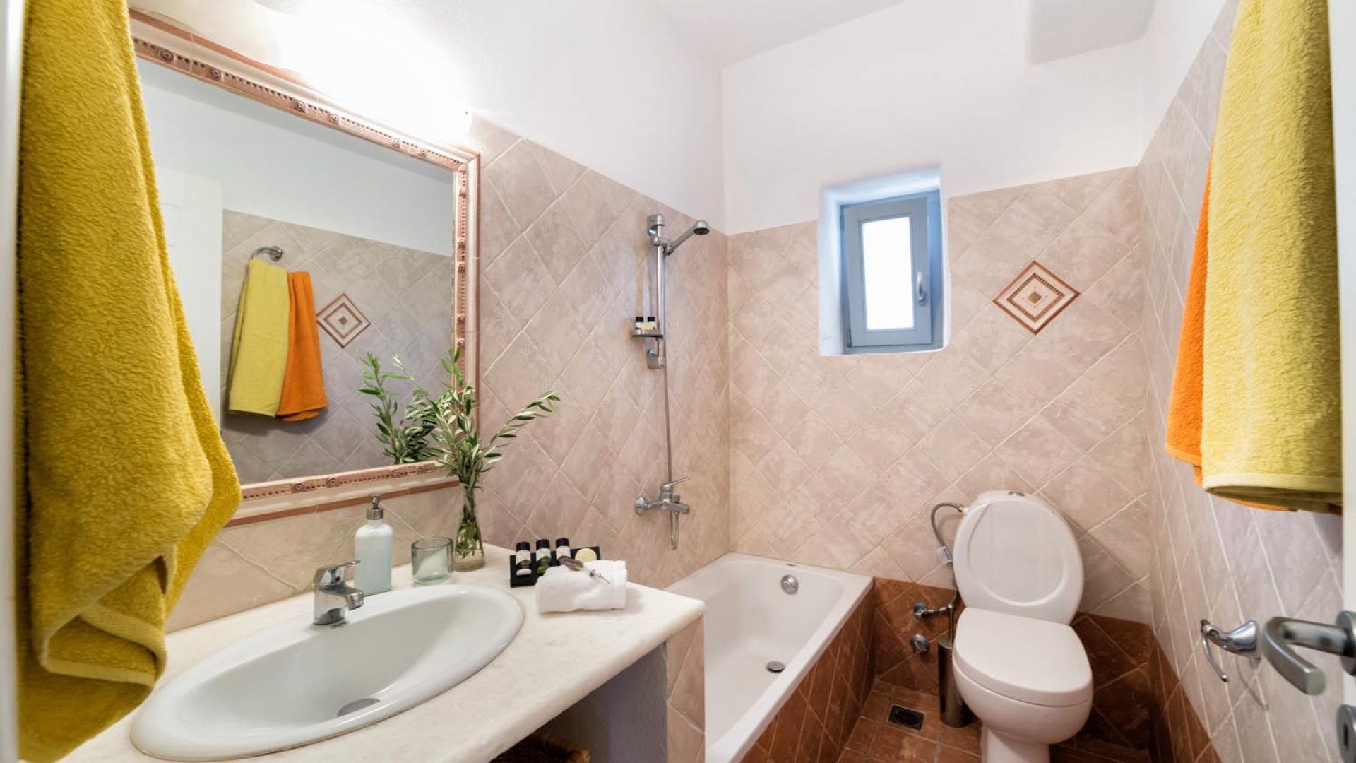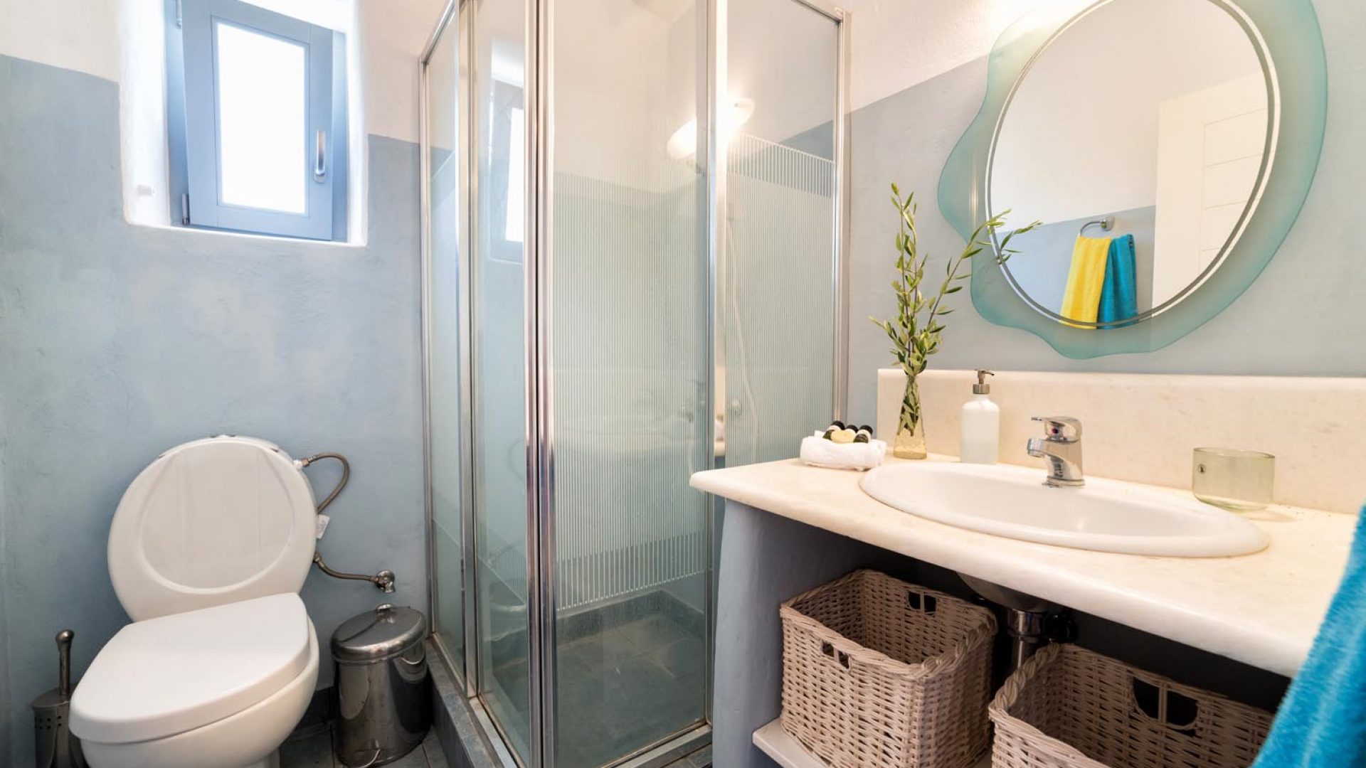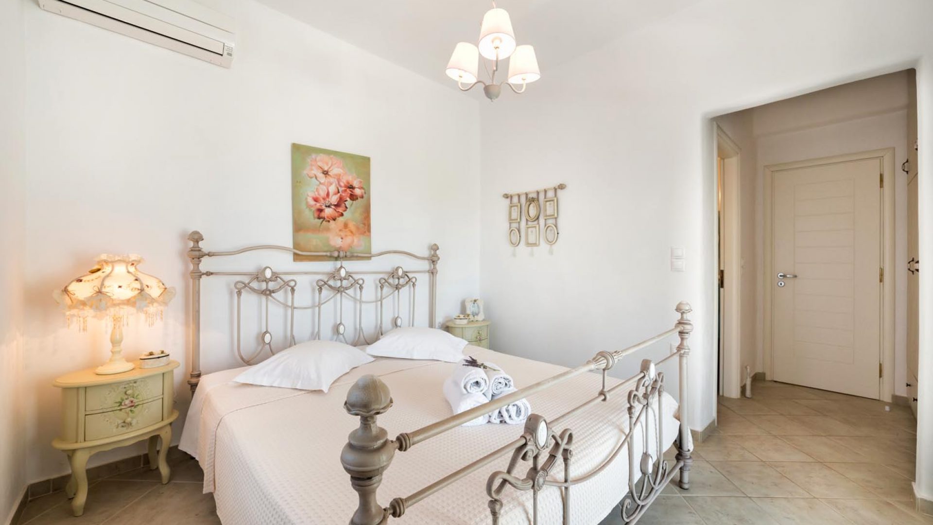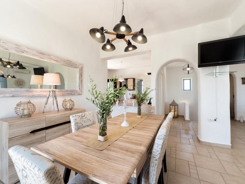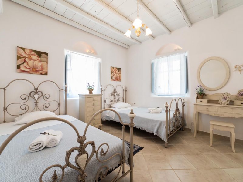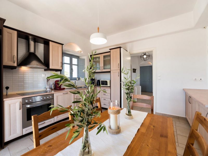 Fitted with wrought-iron beds and decorated in white and grey tones, Villa Drios features a laundry room with a washing machine and ironing facilities, a living room with a fireplace and a fully-equipped kitchen. Facilities also include air-conditioning, a coffee machine, an oven, and a dishwasher. Guests can relax at the furnished sun terraces overlooking the garden and the sea or use the BBQ facilities and enjoy a meal.