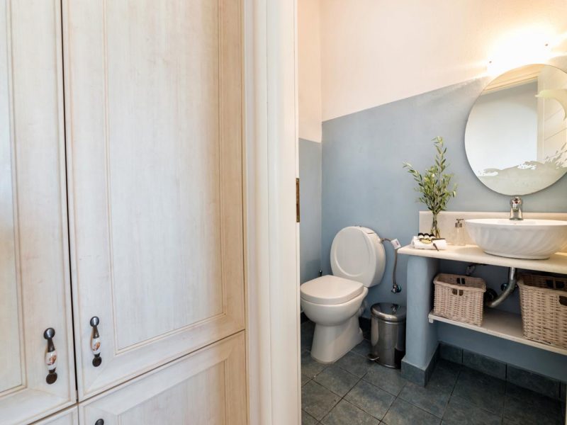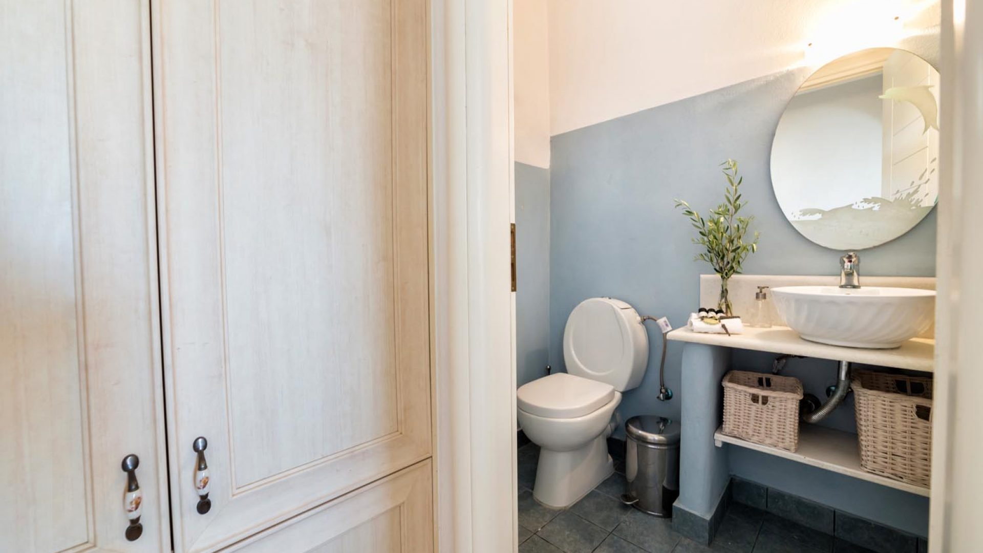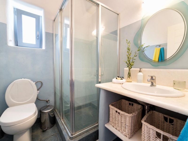 The Villa is divided into two levels. The ground floor includes one bedroom with private bathroom and terrace, 2 more bedrooms and 1 more bathroom and a storeroom with washing machine, ironing board, vacuum cleaner. On the 1st floor, there is a spacious living room with fireplace, dining room and fully equipped kitchen with dishwasher and coffee maker and terrace with barbecue and sea view. All bedrooms and central areas are air-conditioned.