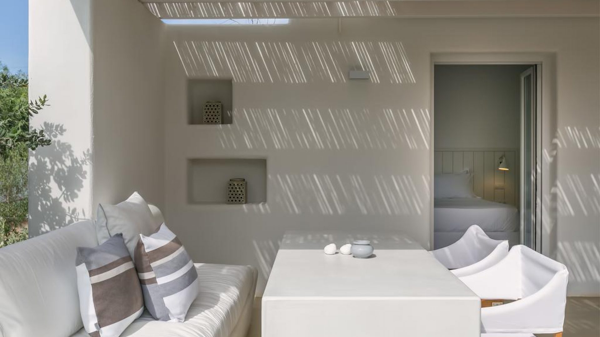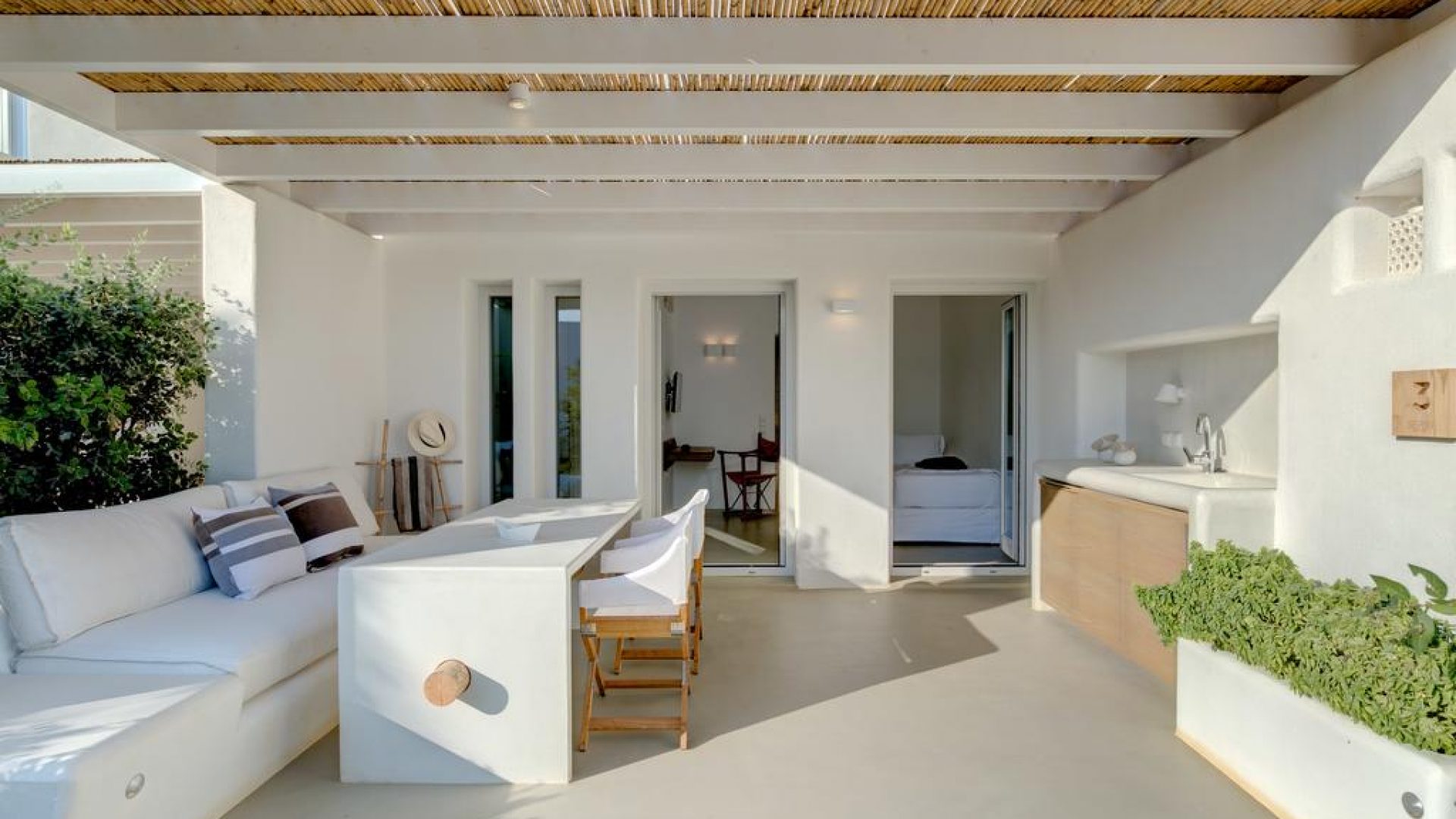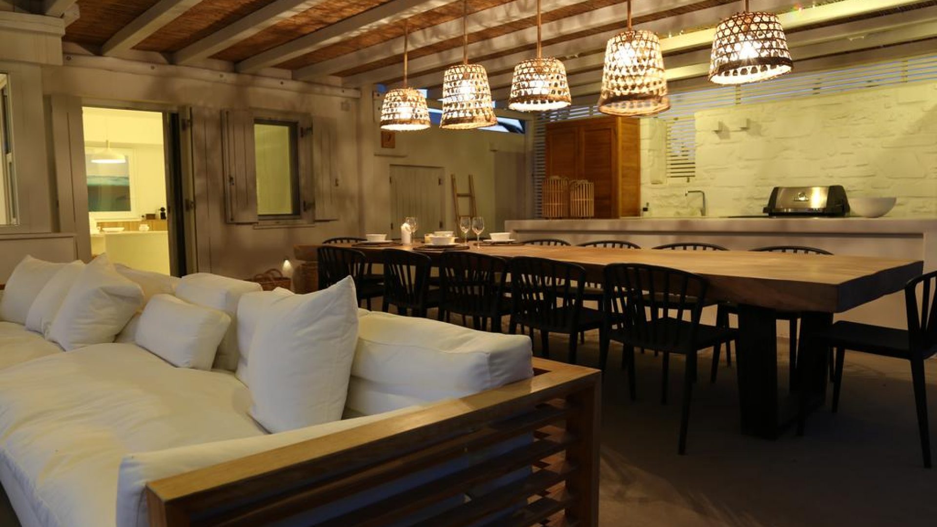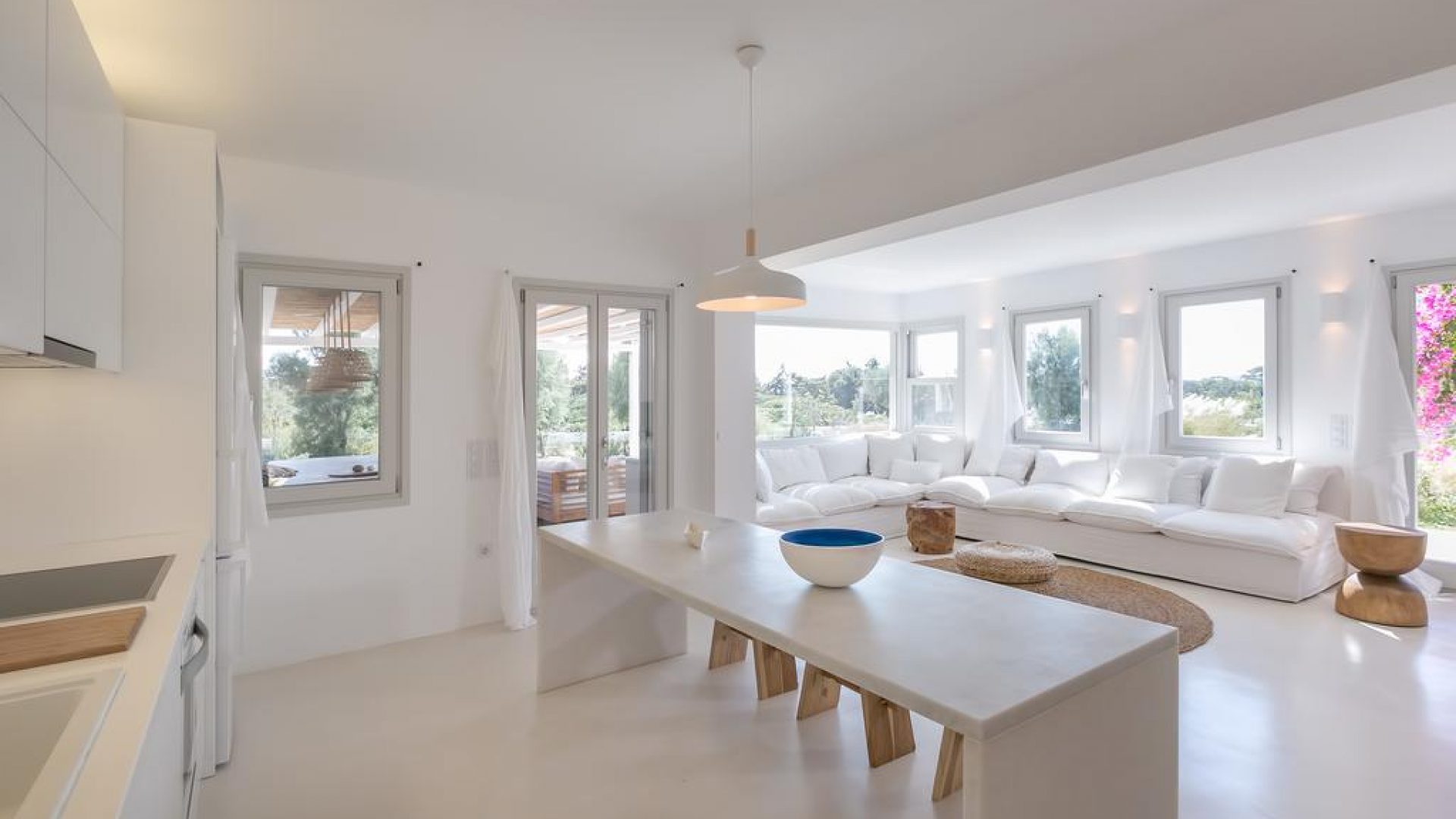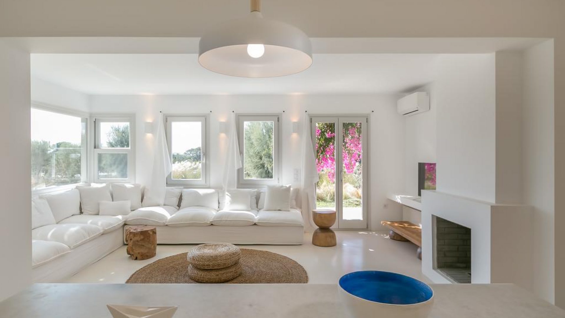 On the doorstep of one of the most beautiful beaches of the island, in Mikri Santa Maria, the Villa is located, which is ideal for a relaxing holiday.