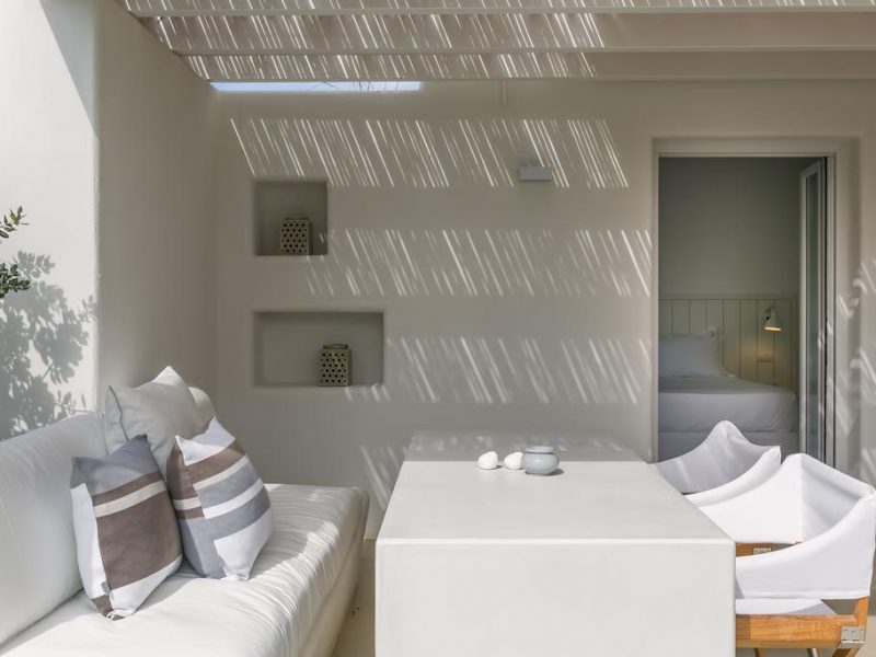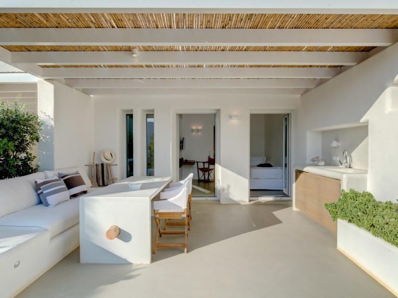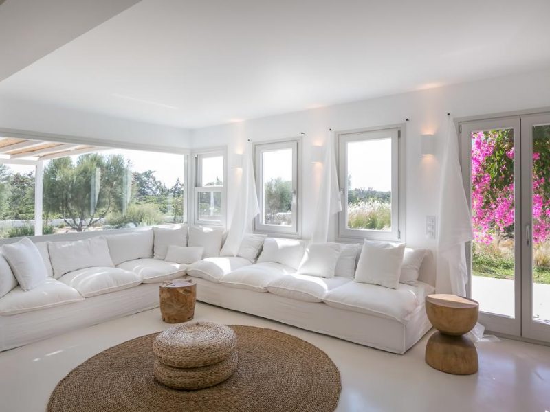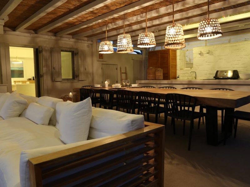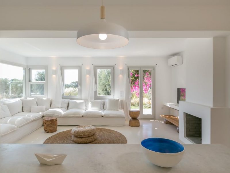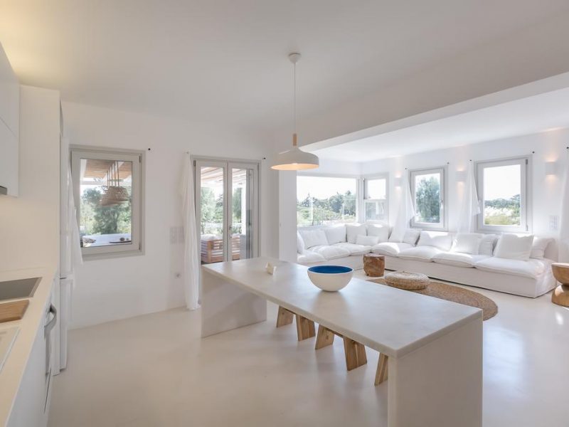 On the doorstep of one of the most beautiful beaches of the island, in Mikri Santa Maria, the Villa is located, which is ideal for a relaxing holiday.