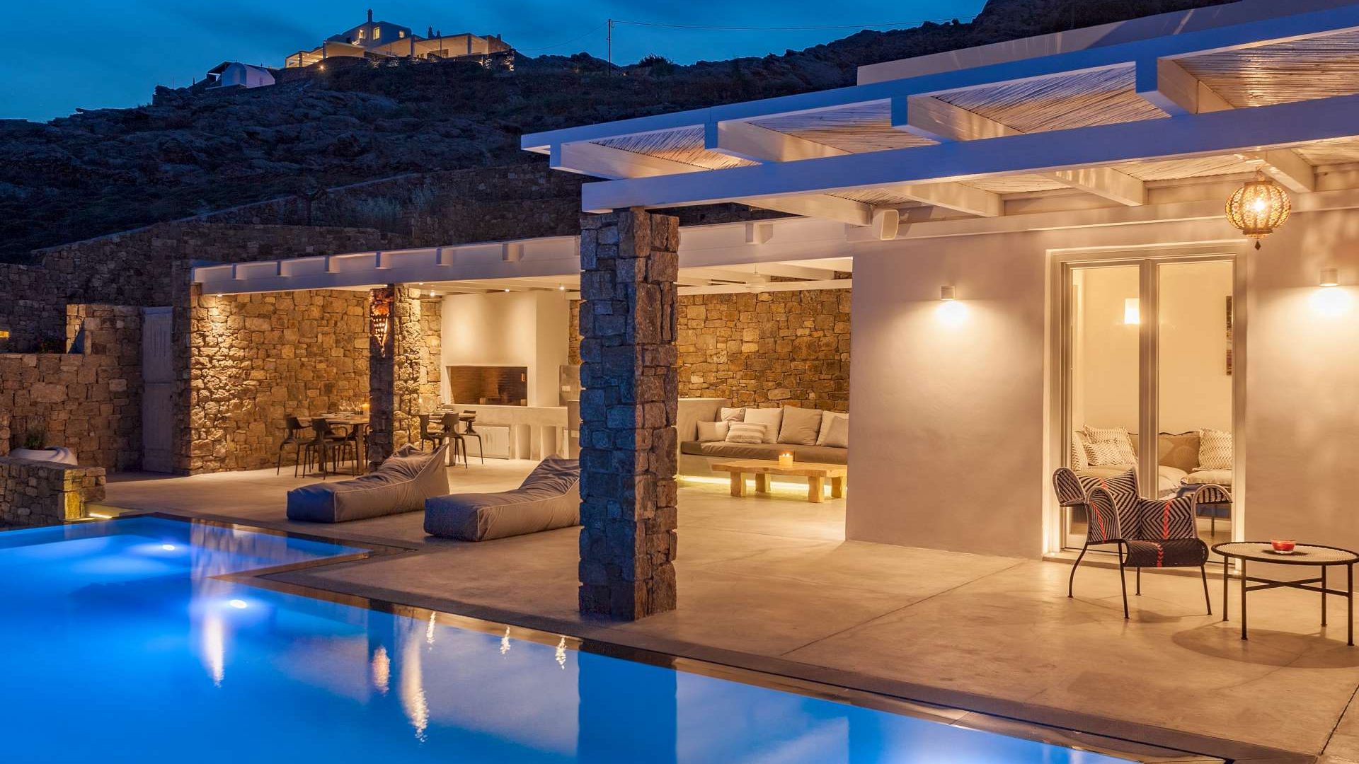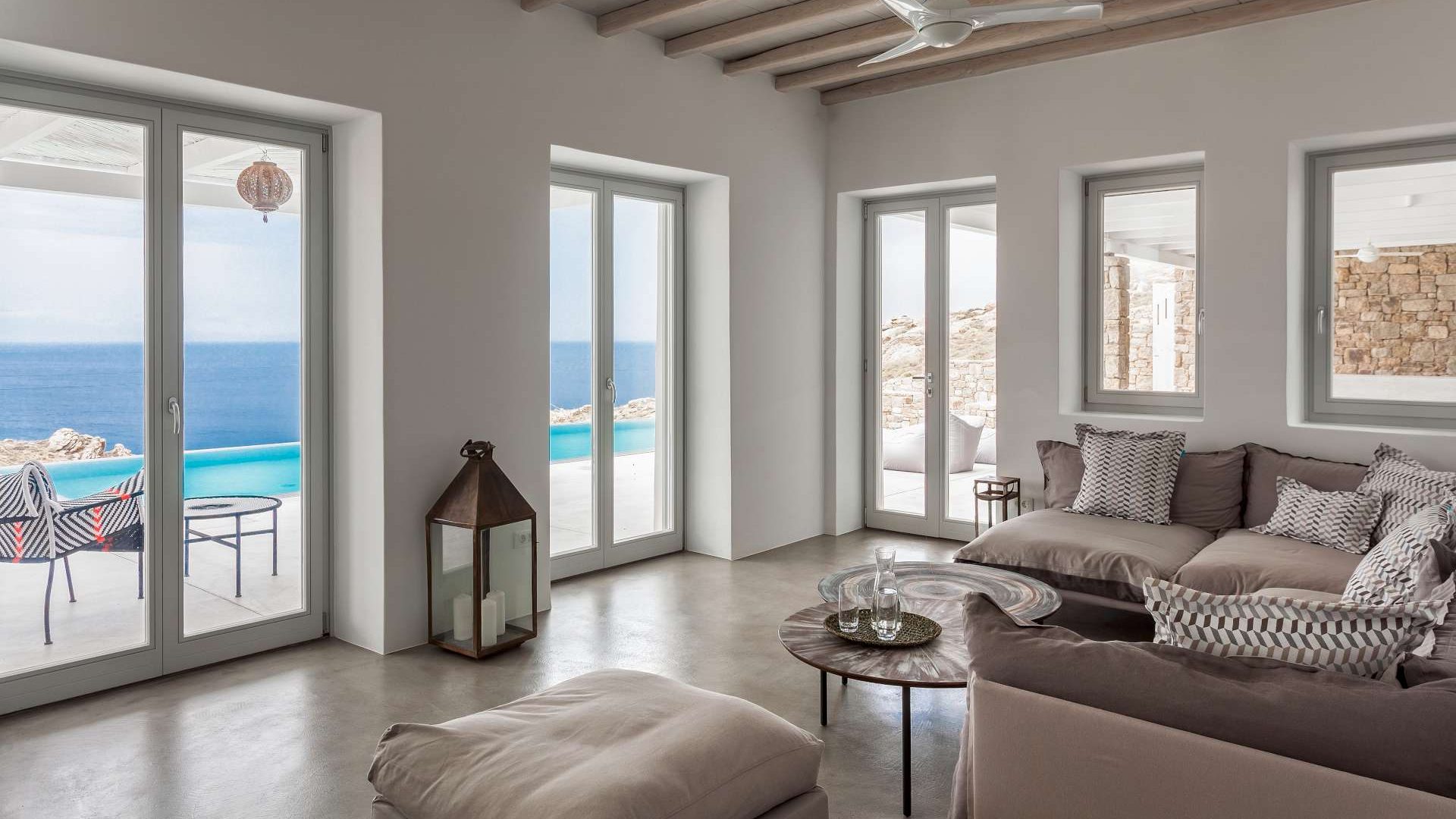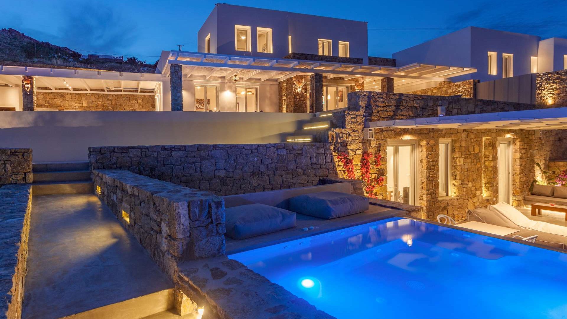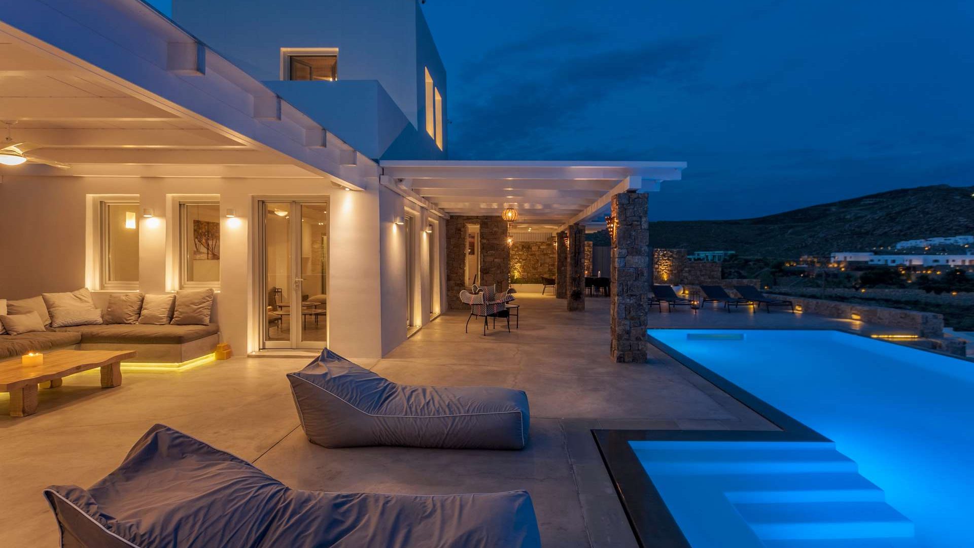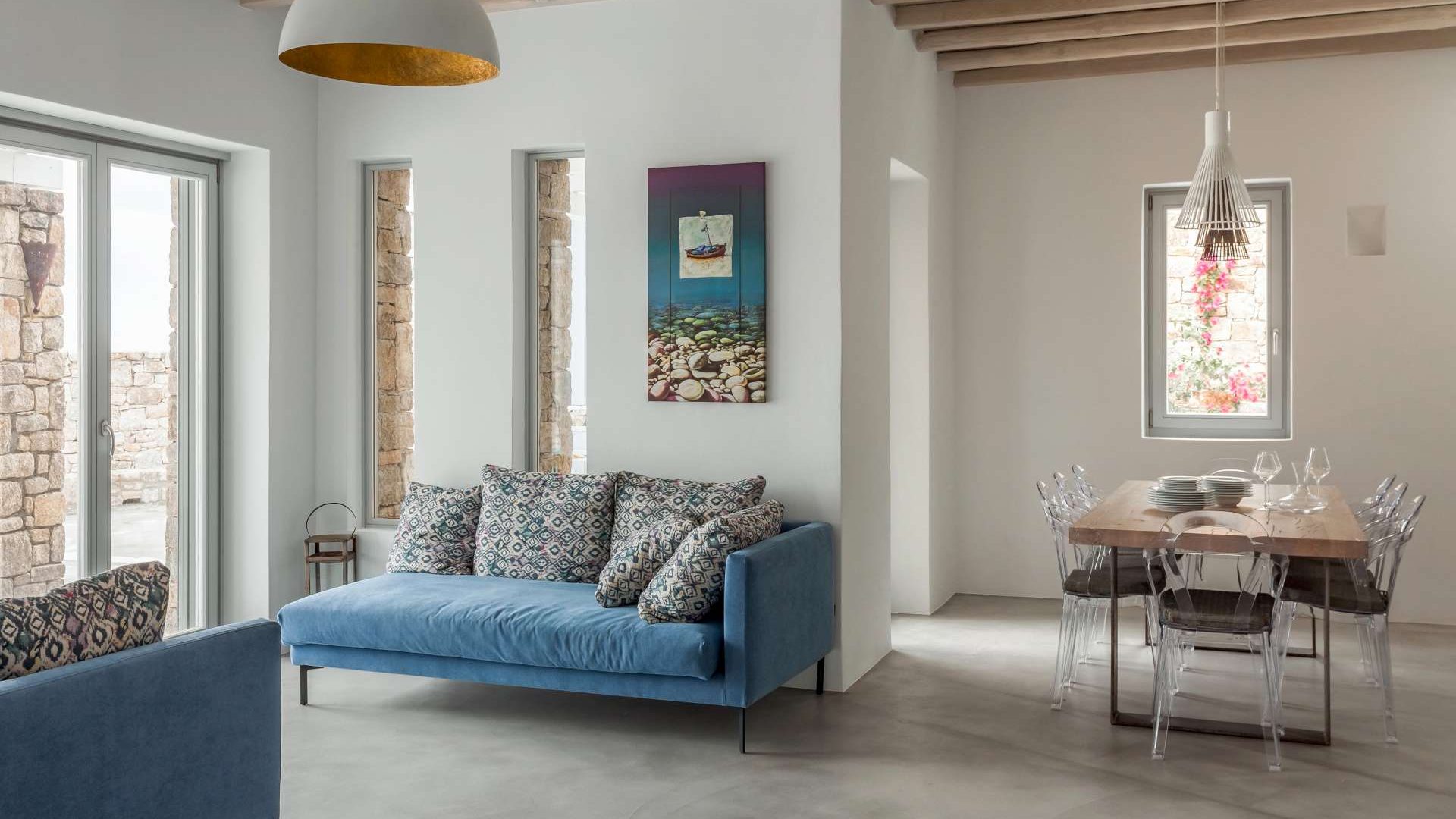 This staggering residence can accommodate up to 26 people. The interior of Embassy Villa combines Cycladic architecture with contemporary amenities. Its spacious bedrooms are decorated with elegant furnishings, while every item is made with the finest materials, to exude style and luxury.
