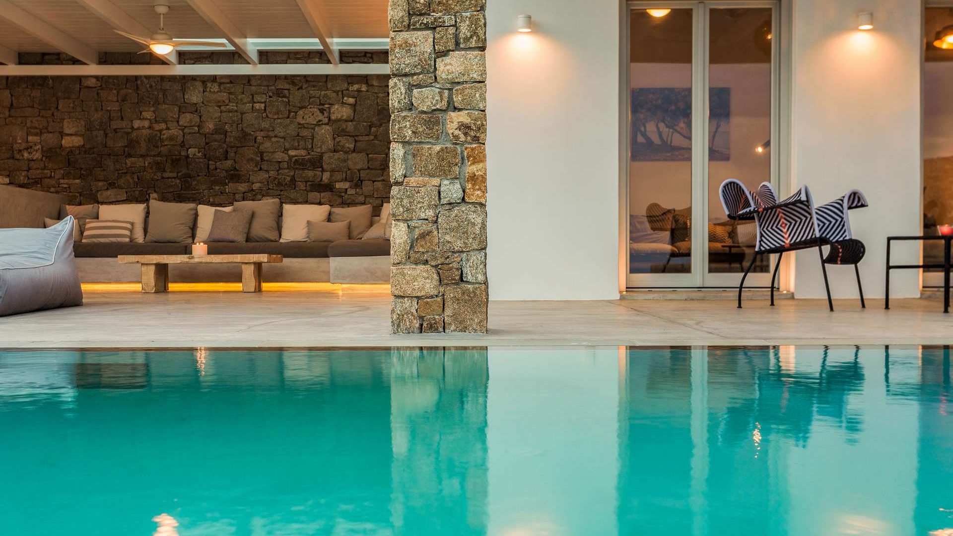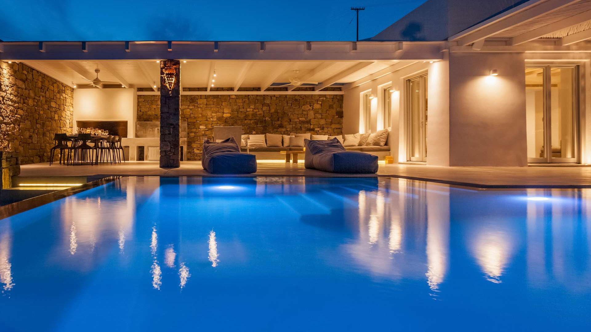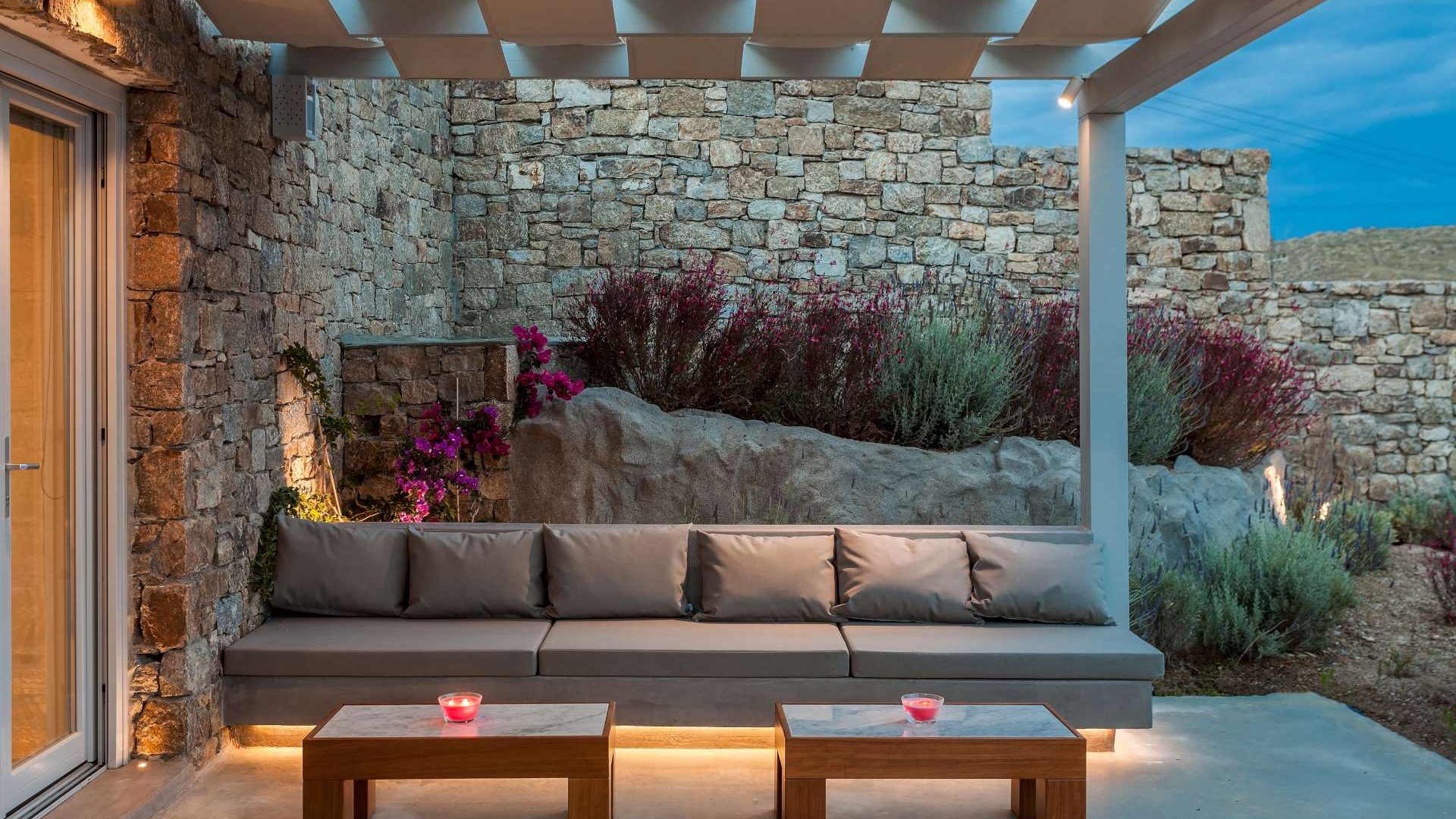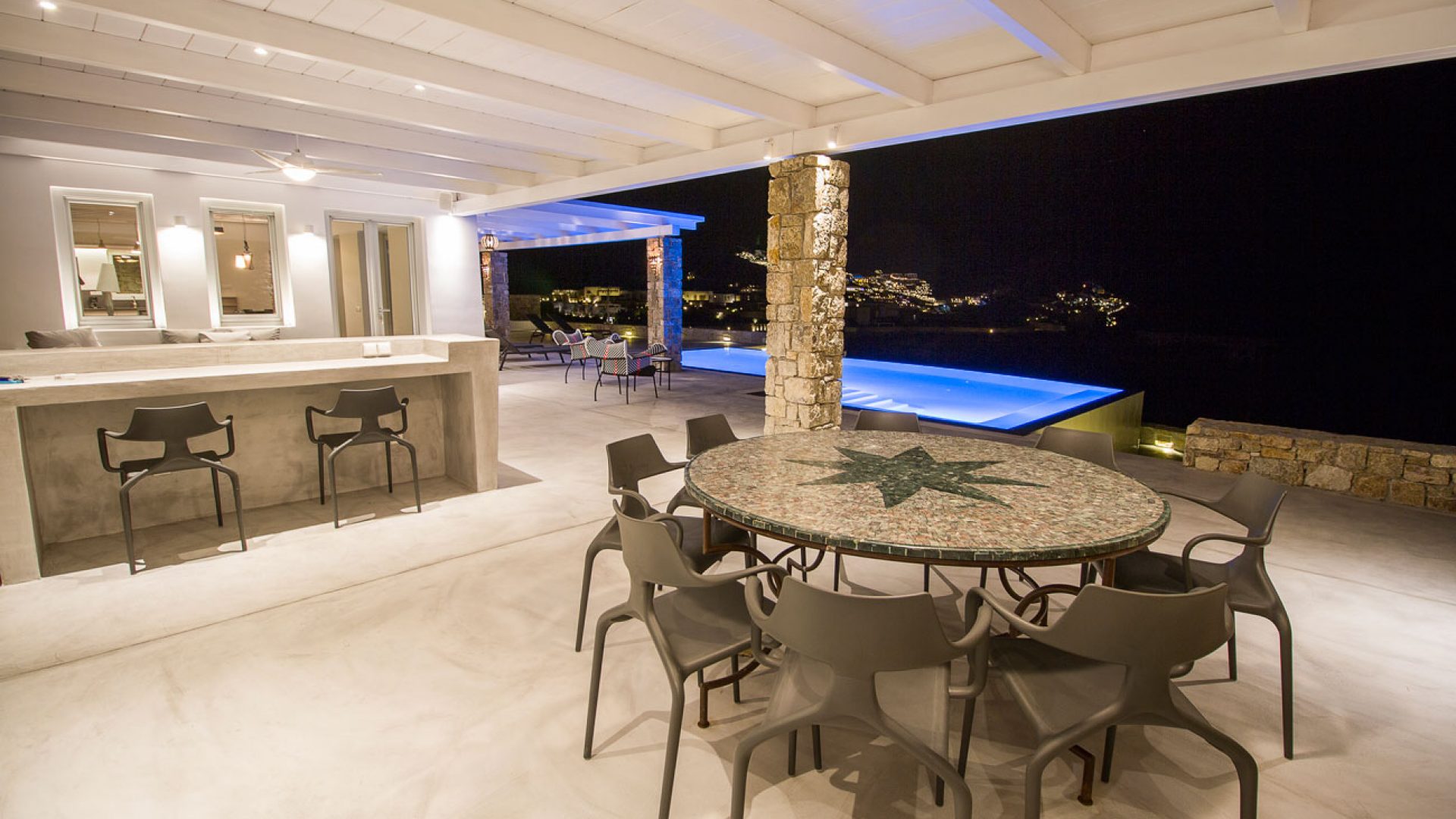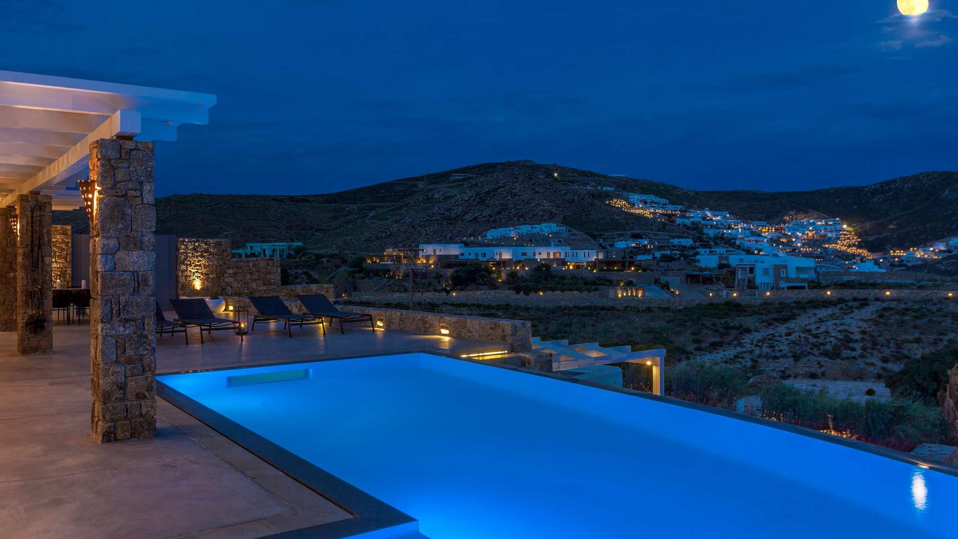 This staggering residence can accommodate up to 26 people. The interior of Embassy Villa combines Cycladic architecture with contemporary amenities. Its spacious bedrooms are decorated with elegant furnishings, while every item is made with the finest materials, to exude style and luxury.