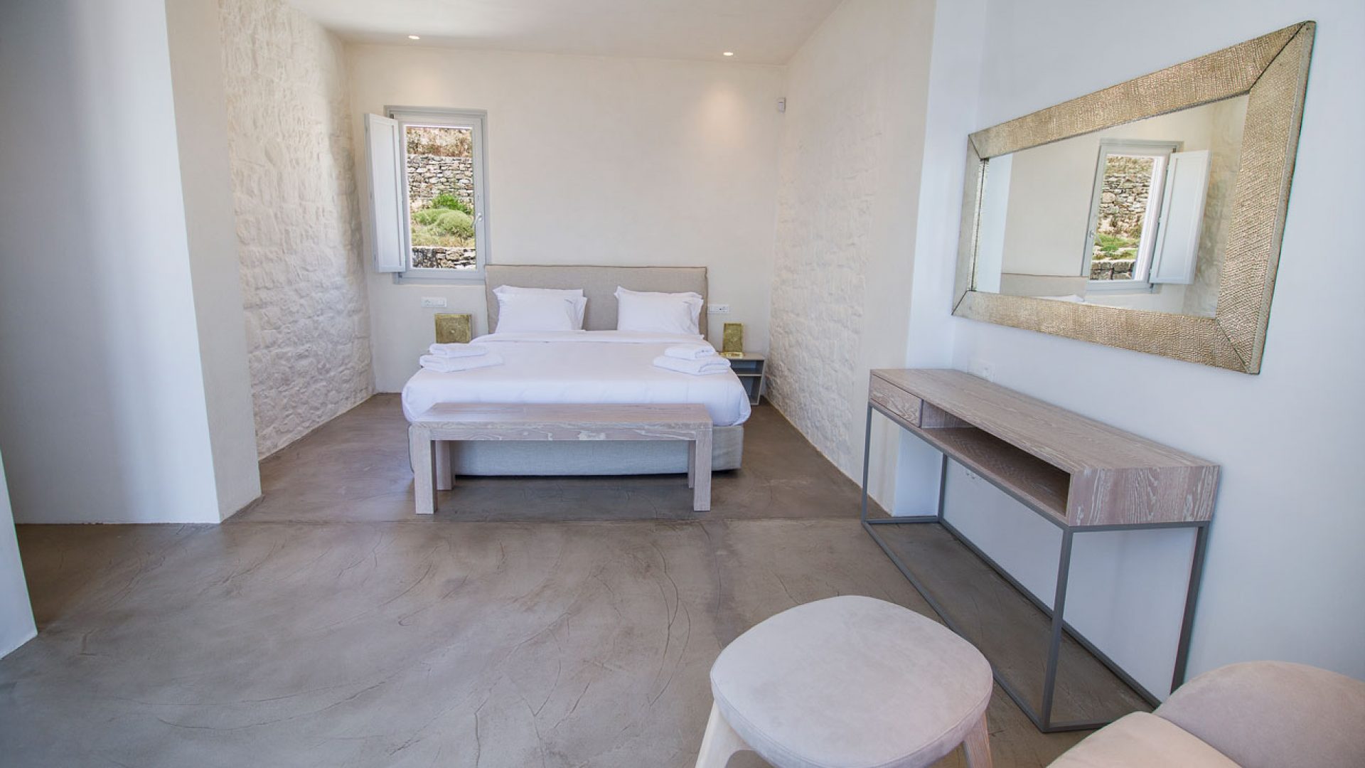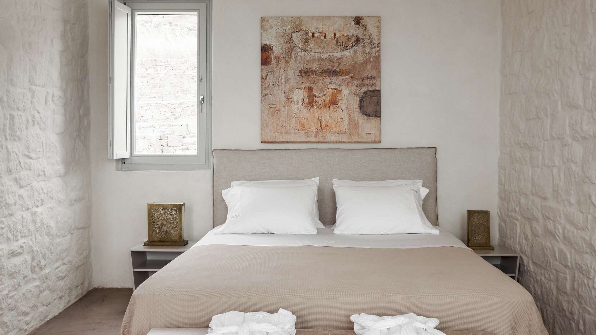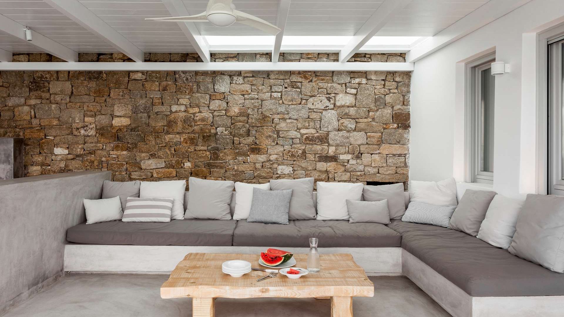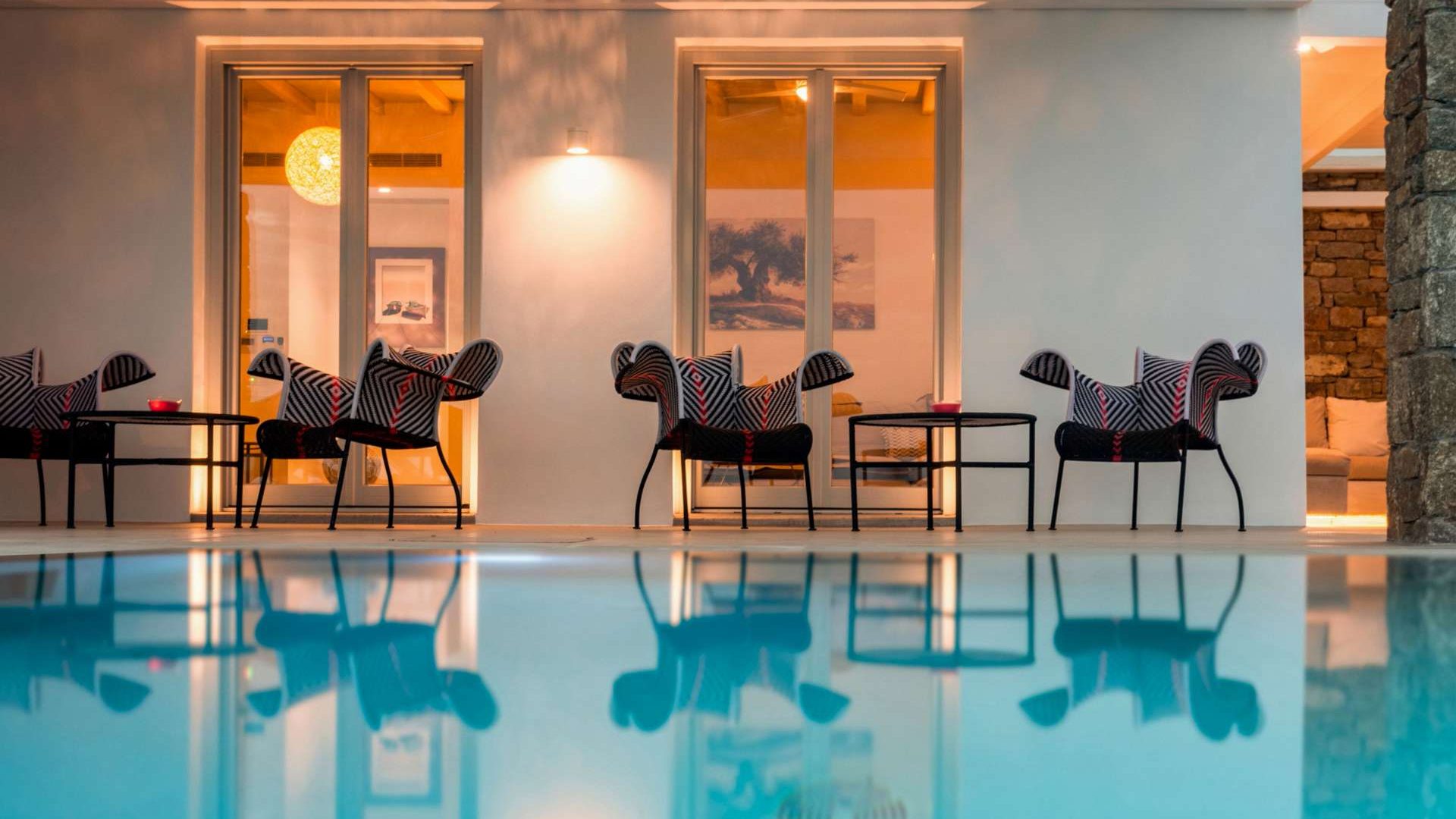 This staggering residence can accommodate up to 26 people. The interior of Embassy Villa combines Cycladic architecture with contemporary amenities. Its spacious bedrooms are decorated with elegant furnishings, while every item is made with the finest materials, to exude style and luxury.