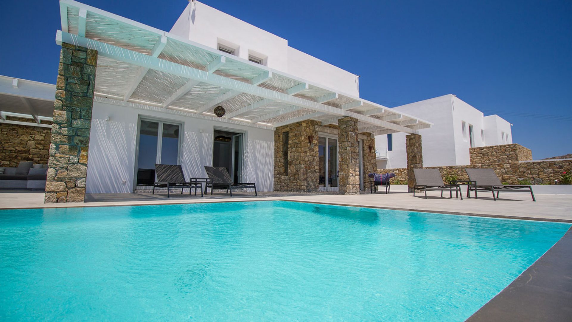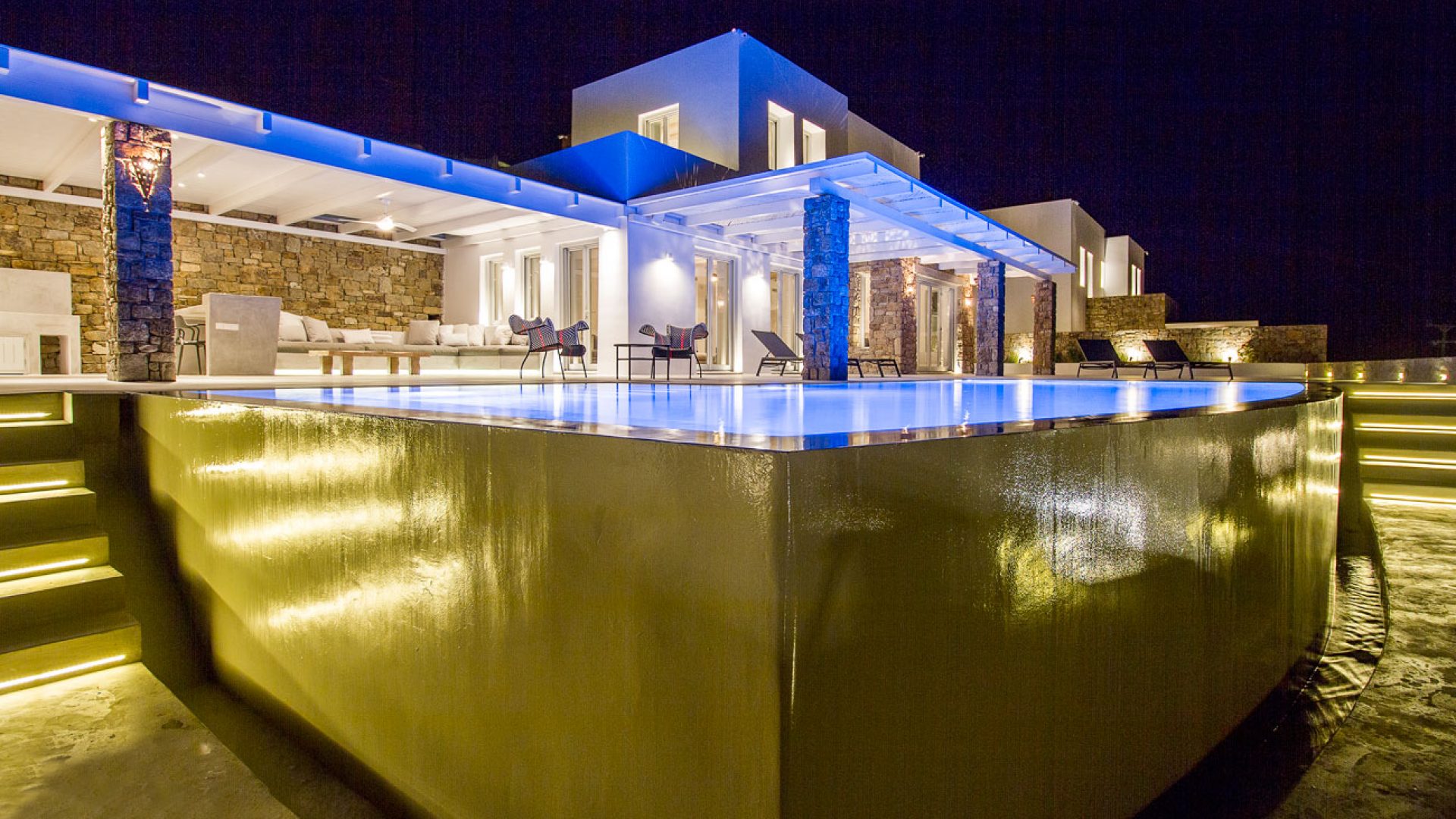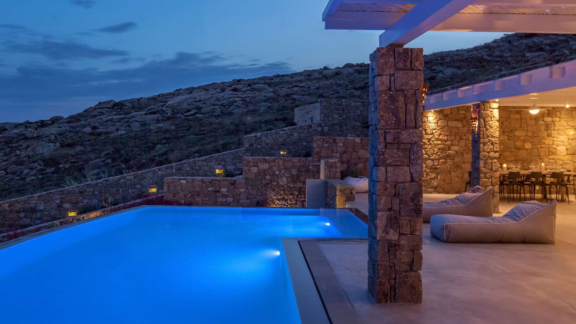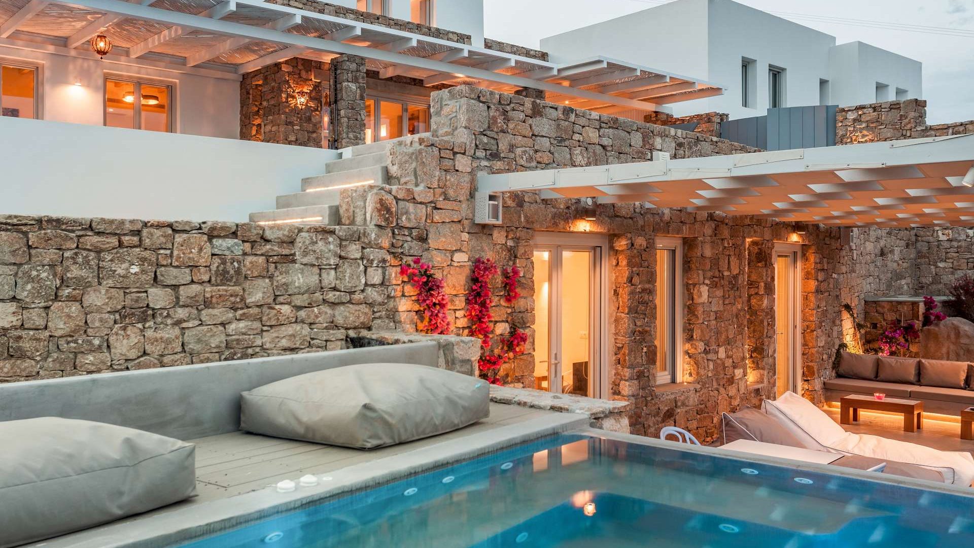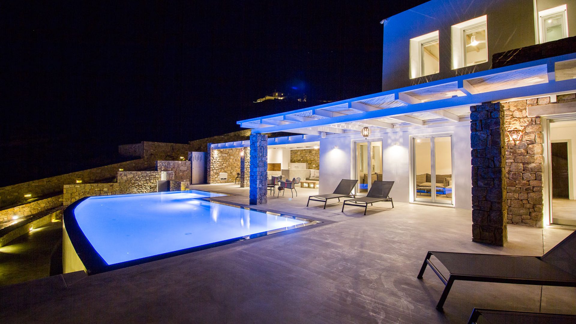 This staggering residence can accommodate up to 26 people. The interior of Embassy Villa combines Cycladic architecture with contemporary amenities. Its spacious bedrooms are decorated with elegant furnishings, while every item is made with the finest materials, to exude style and luxury.
