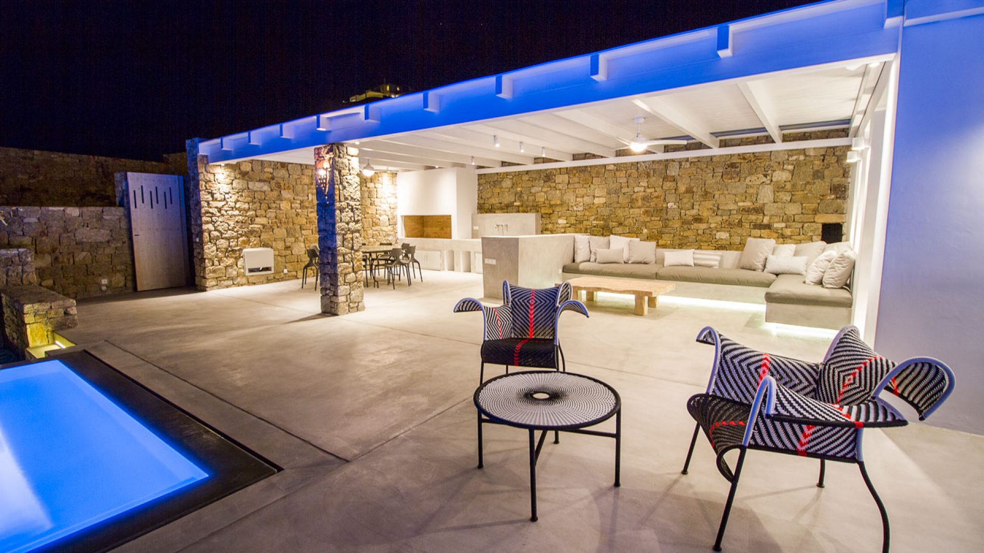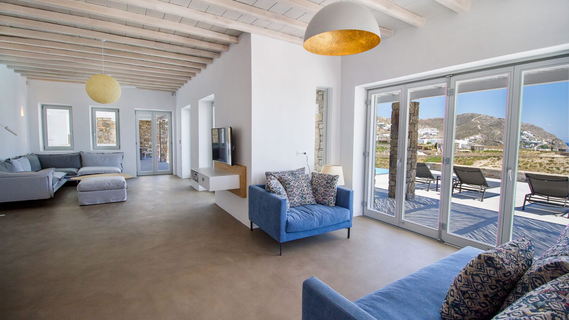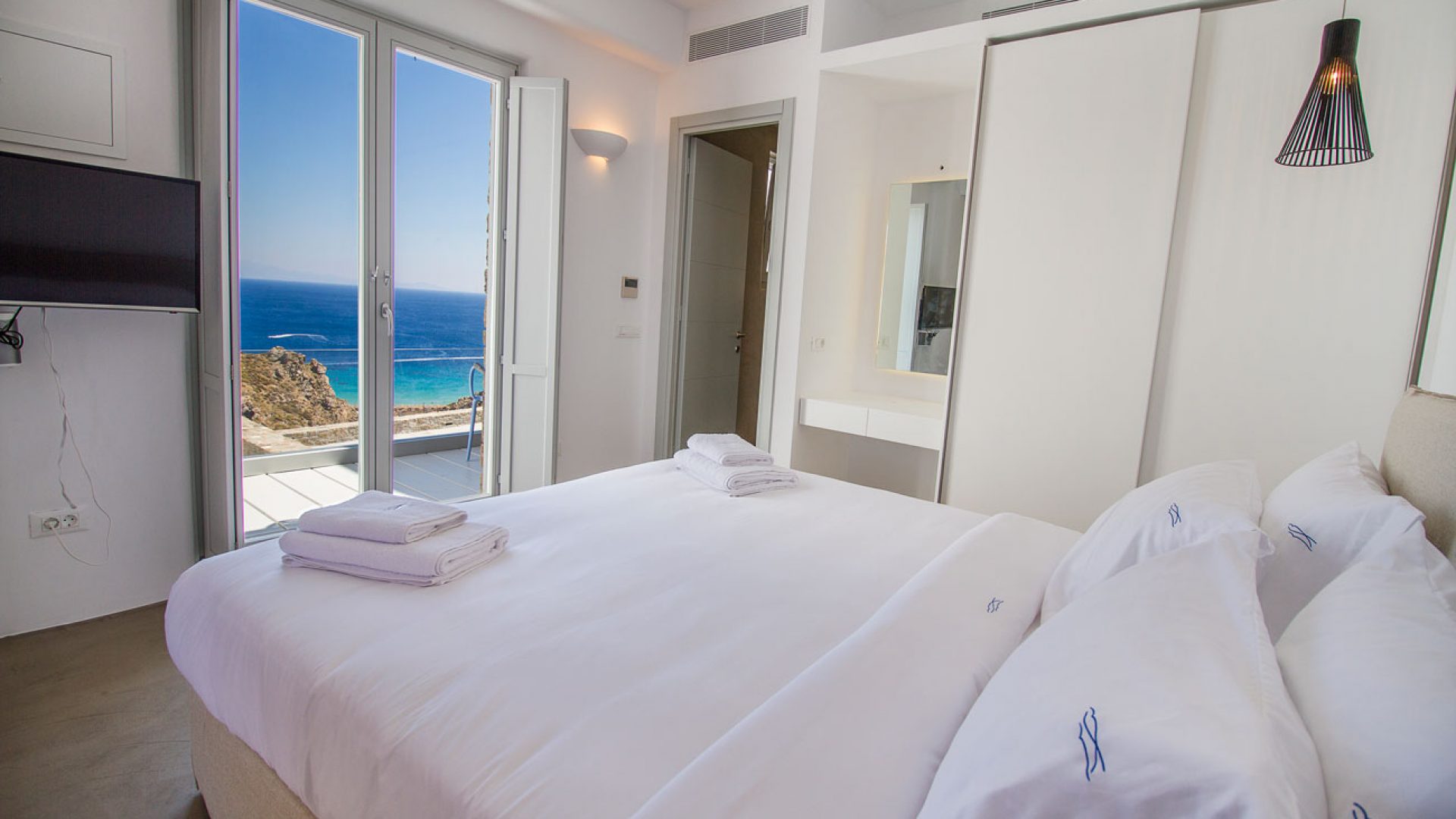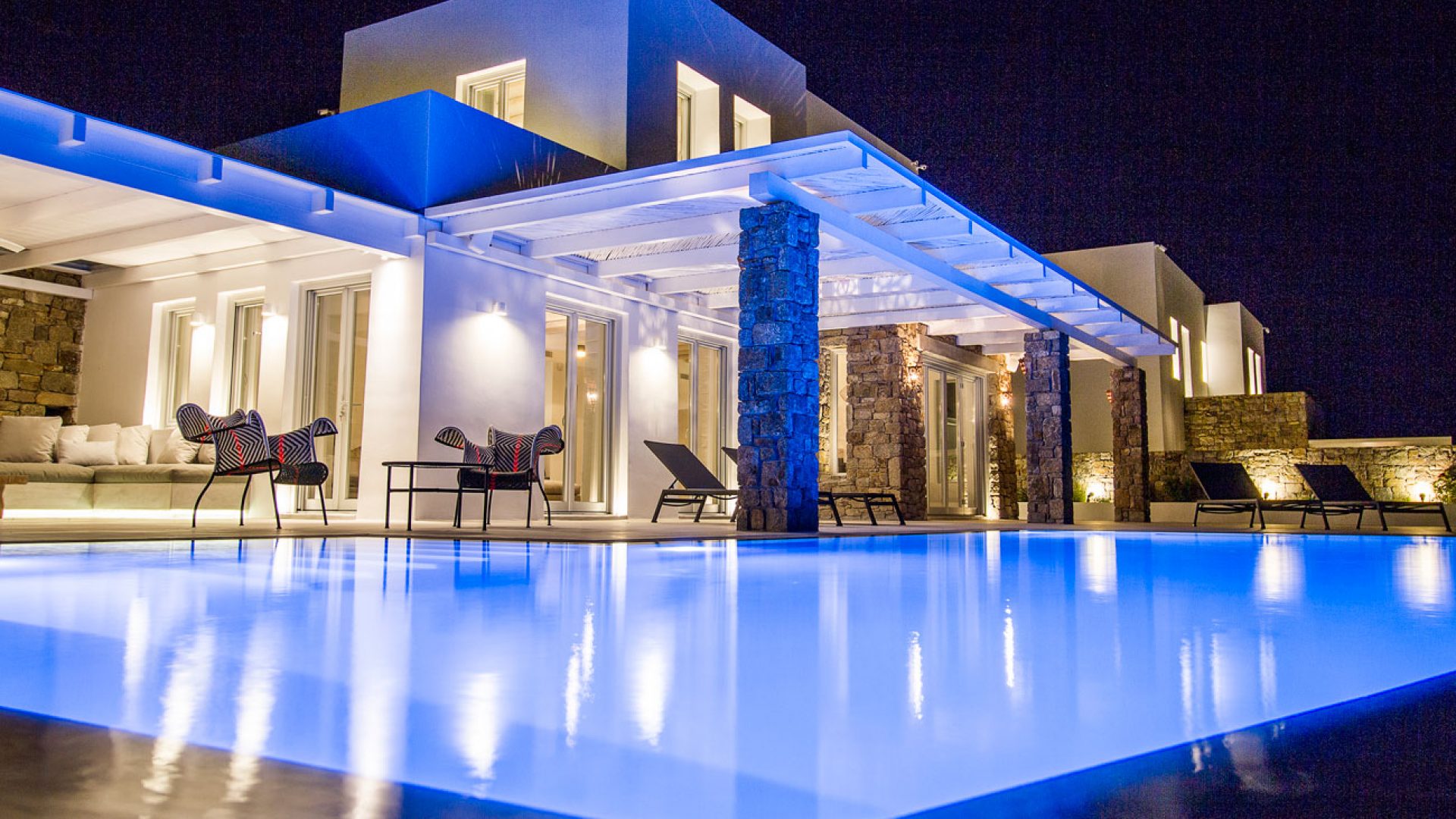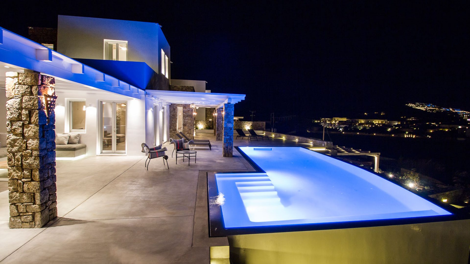 This staggering residence can accommodate up to 26 people. The interior of Embassy Villa combines Cycladic architecture with contemporary amenities. Its spacious bedrooms are decorated with elegant furnishings, while every item is made with the finest materials, to exude style and luxury.