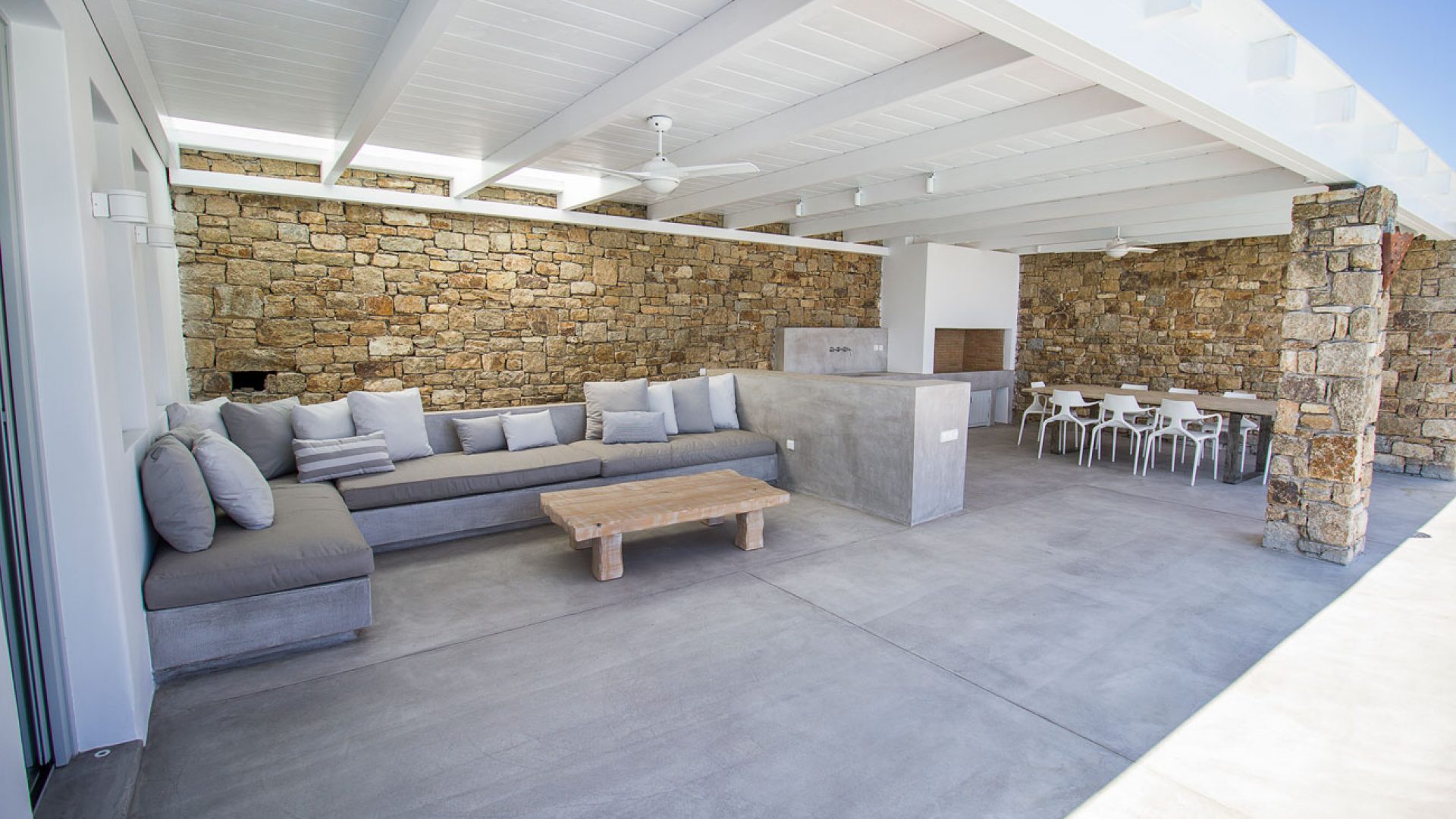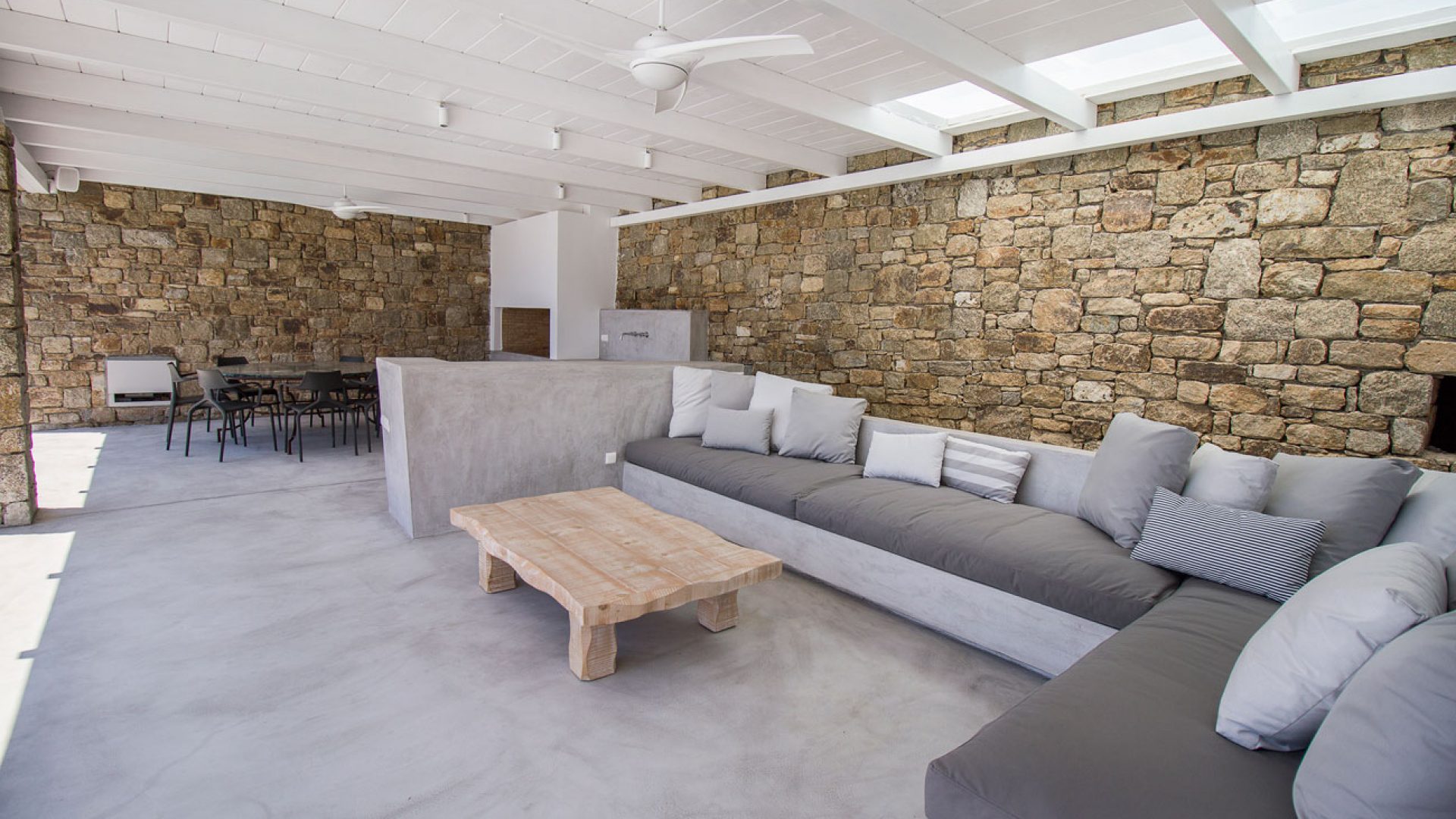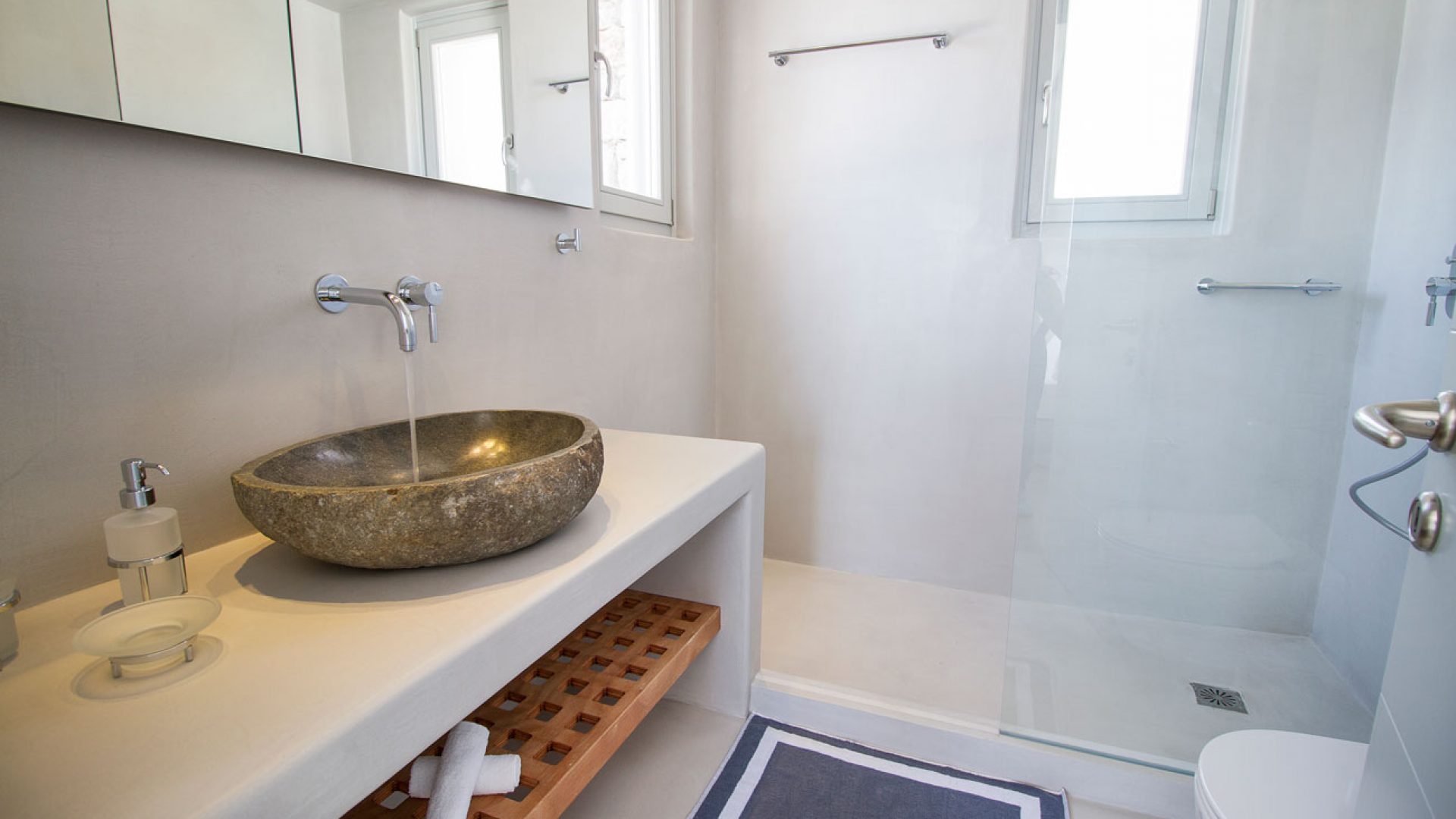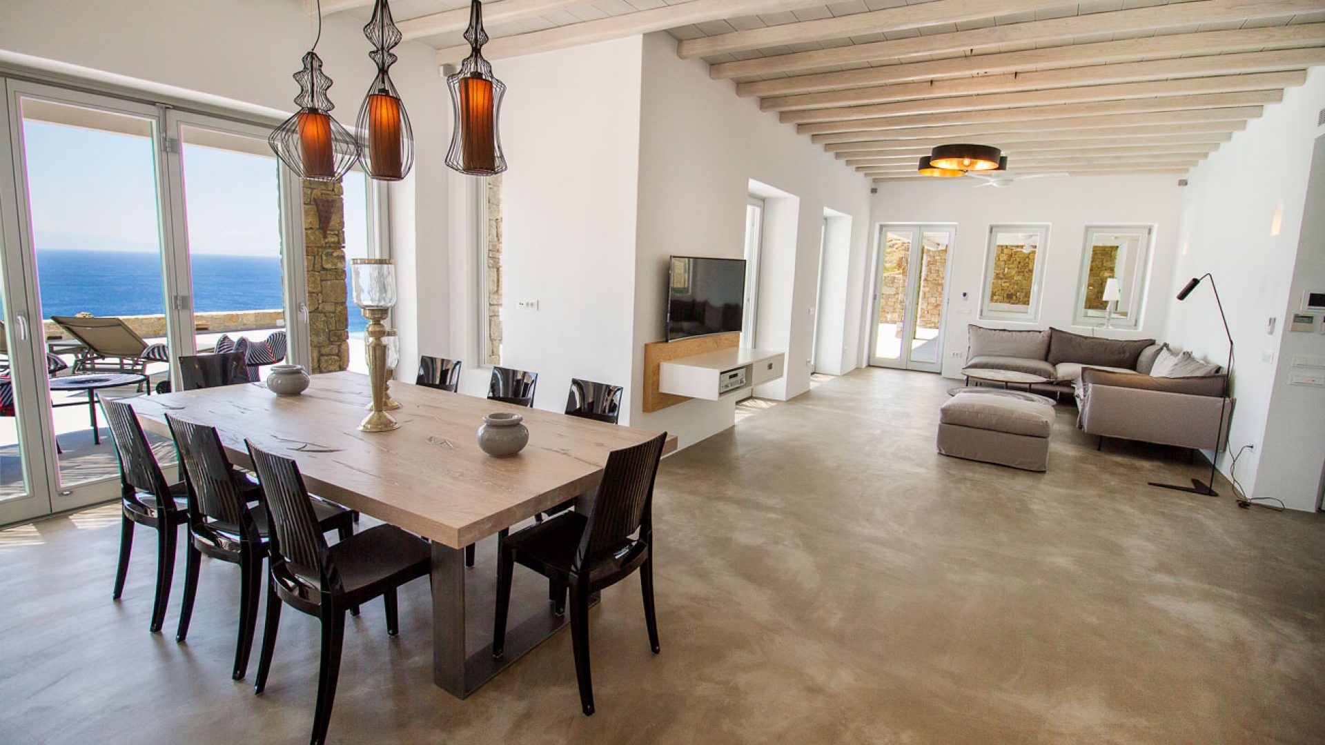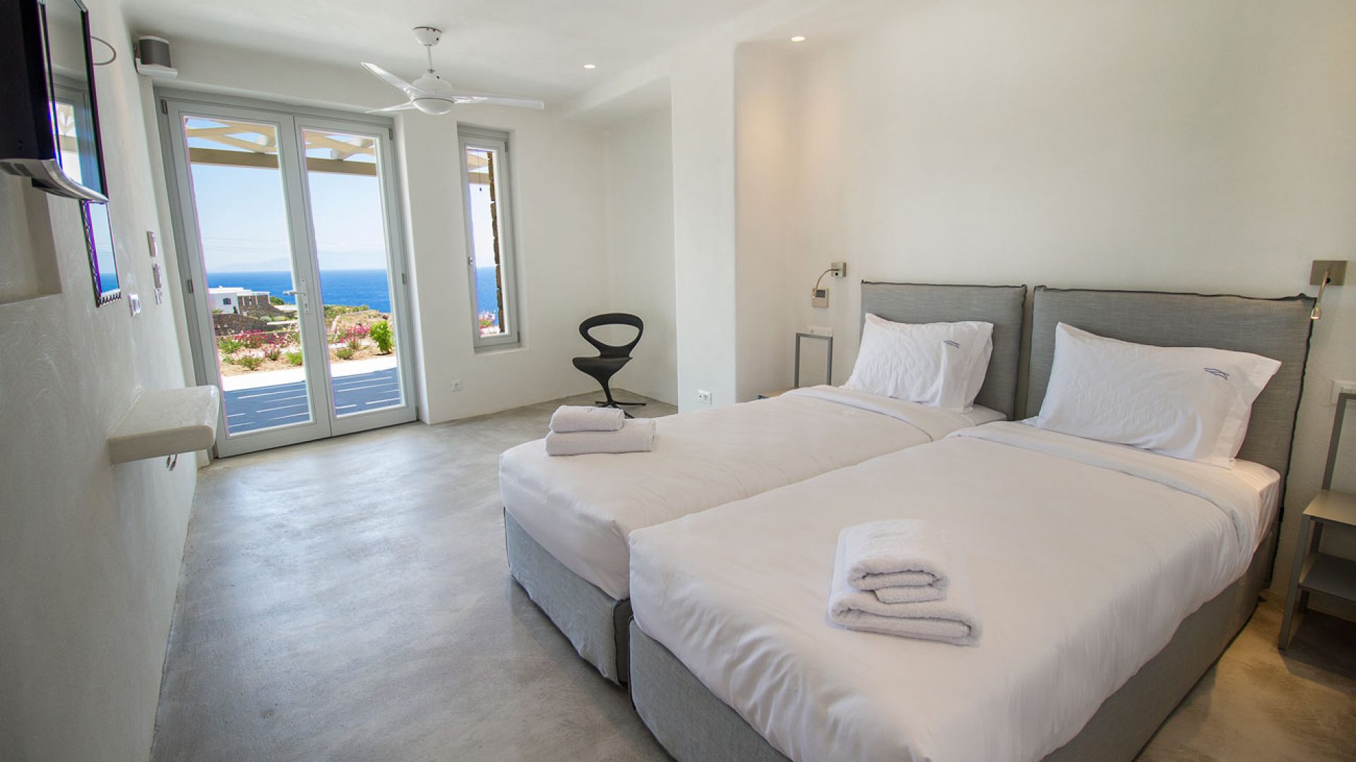 This staggering residence can accommodate up to 26 people. The interior of Embassy Villa combines Cycladic architecture with contemporary amenities. Its spacious bedrooms are decorated with elegant furnishings, while every item is made with the finest materials, to exude style and luxury.