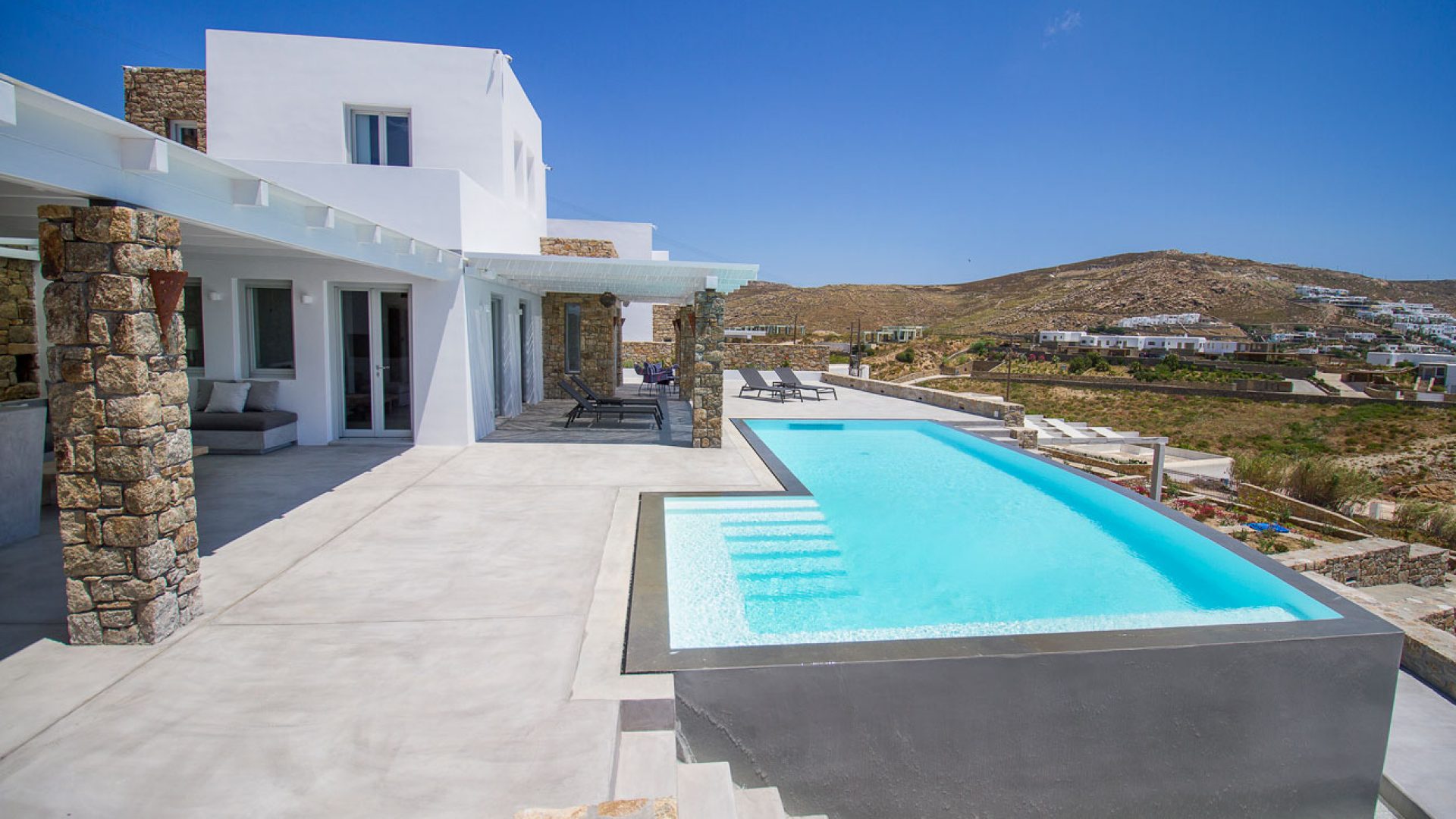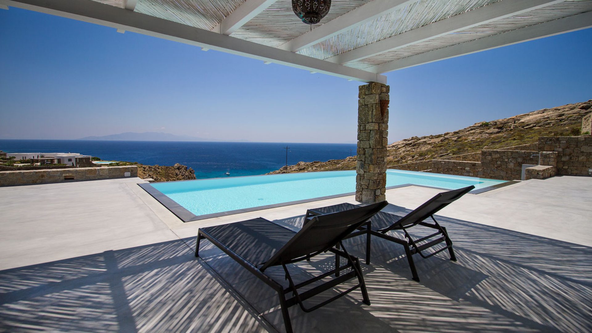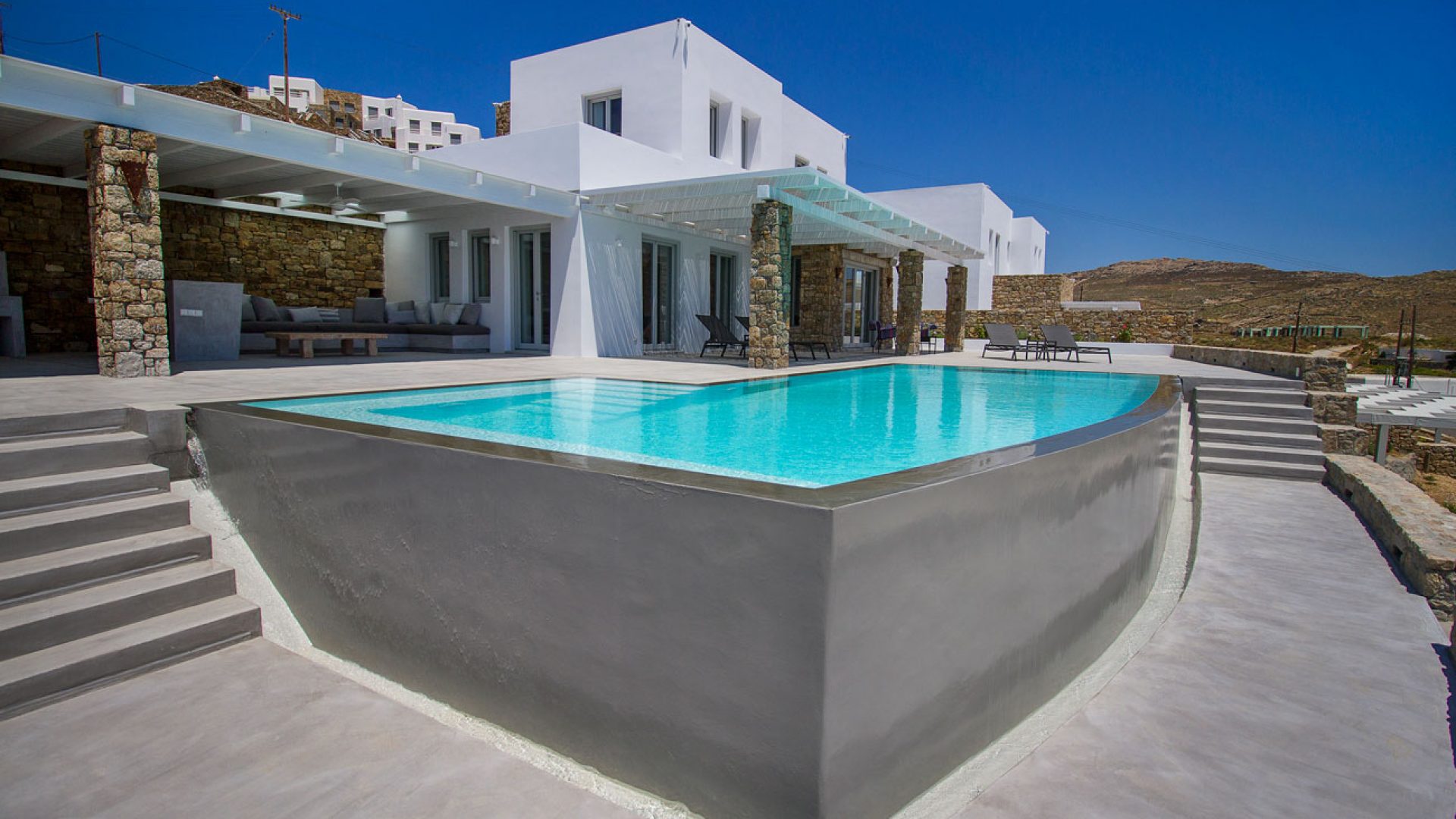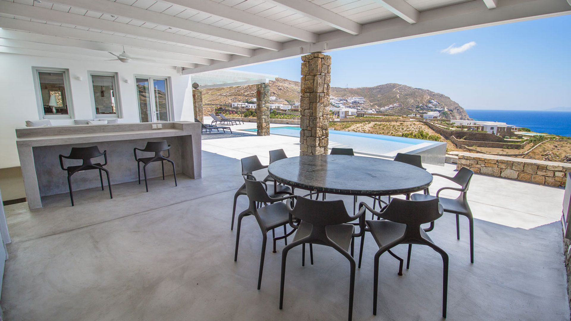 Embassy Villa is a spectacular villa in Mykonos designed to offer you a truly memorable holiday! This magnificent residence boasts a gorgeous infinity pool and lovely outdoor areas for you to enjoy the warm weather with views over Elia beach and the infinite blue sea.