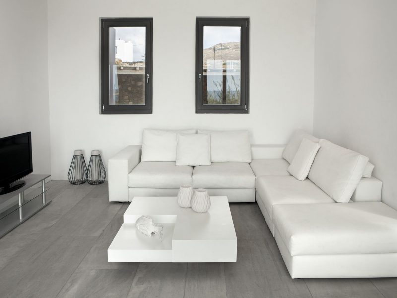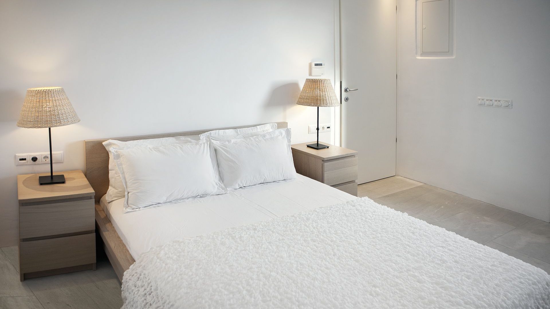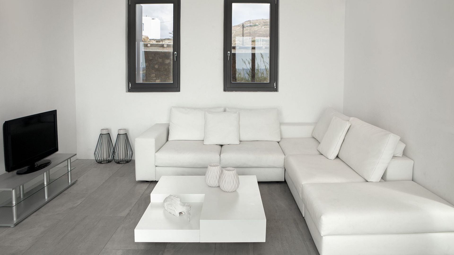 Both villas are a great example of modern architecture. They are spacious with an all-white contemporary décor that gives a touch of luxurious purity. There is a modern open kitchen to each villa, with a cozy, charming dining area and bright living rooms with direct access to the pool terraces.