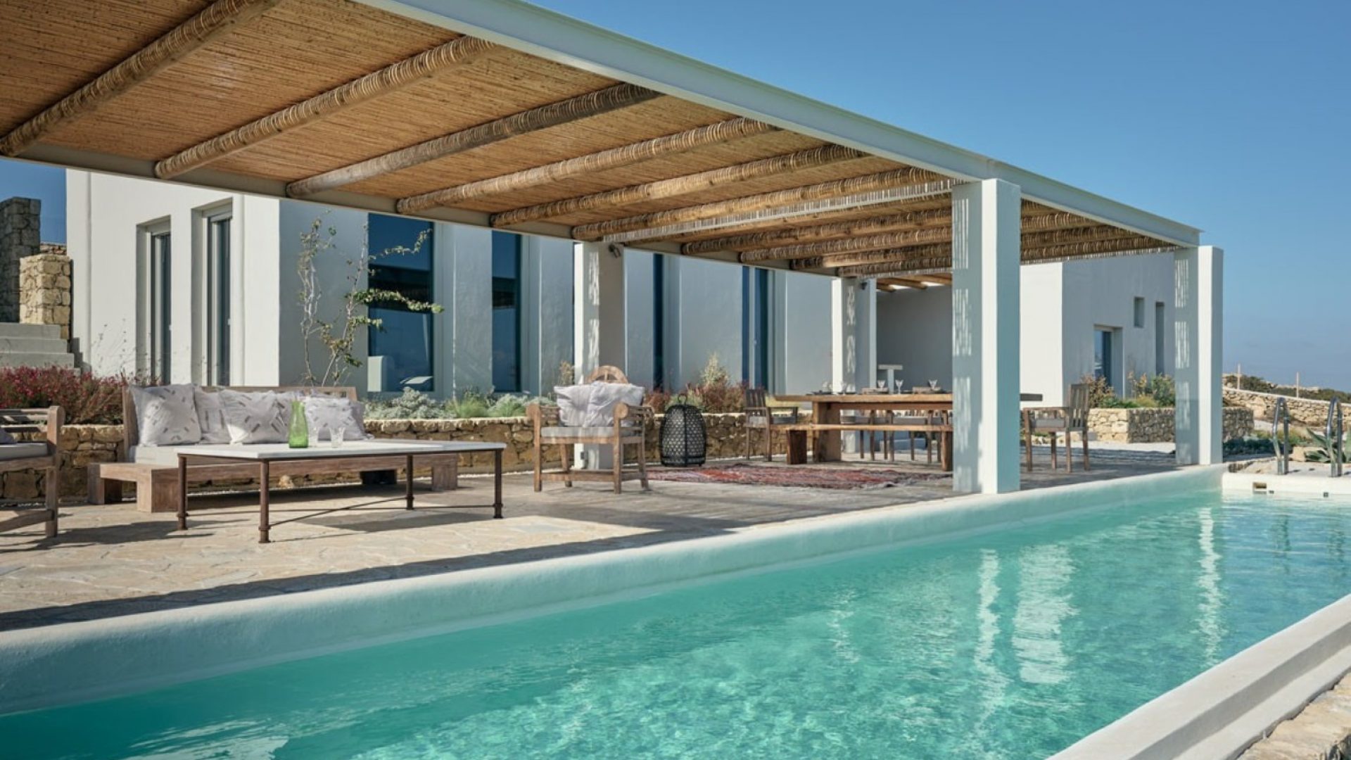 There is a pergola with an outdoor lounge & dining area ideal for spending a lazy afternoon with friends and family by the swimming pool.