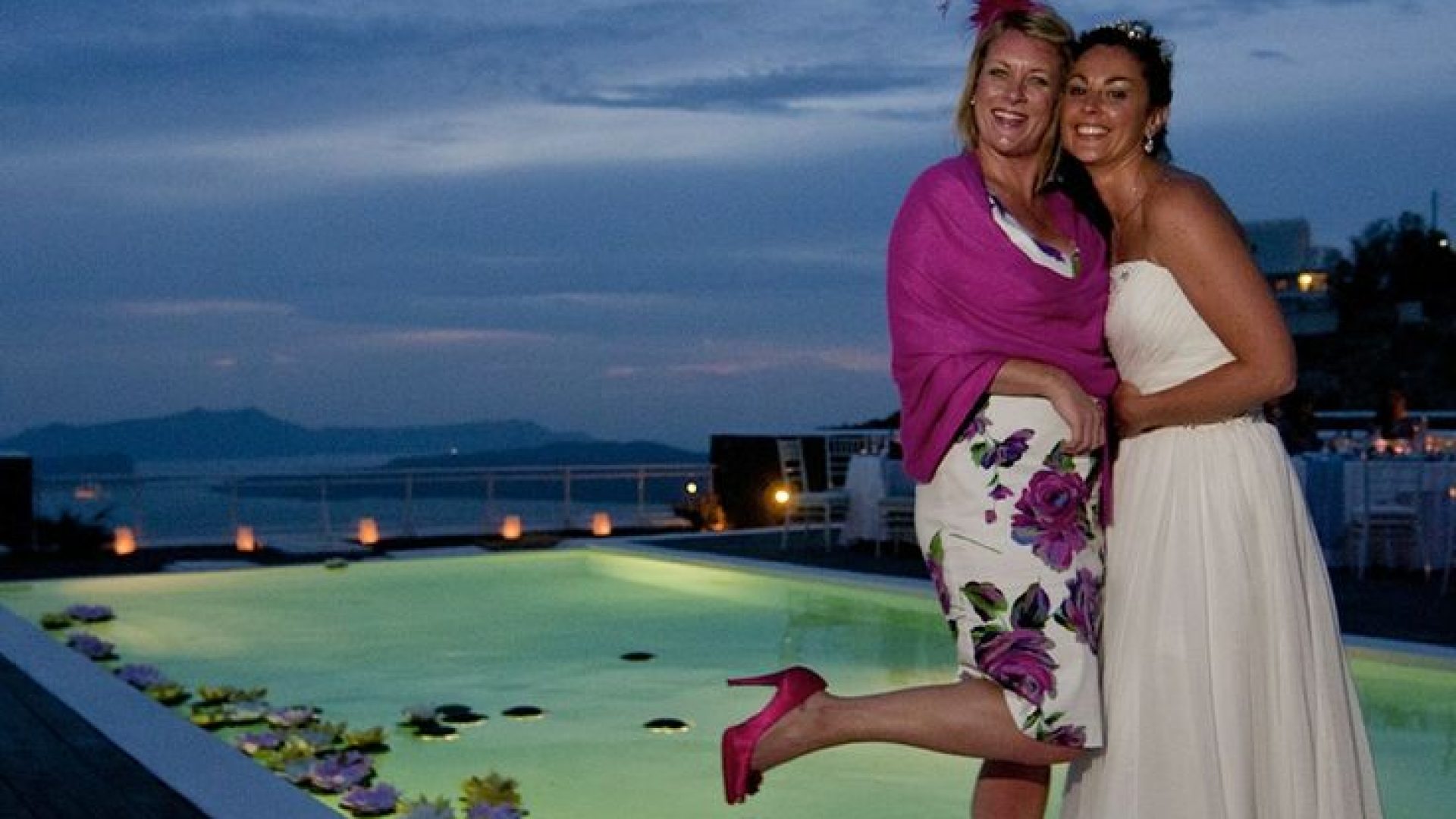 The Villa is overlooking the Caldera with sunset view.
