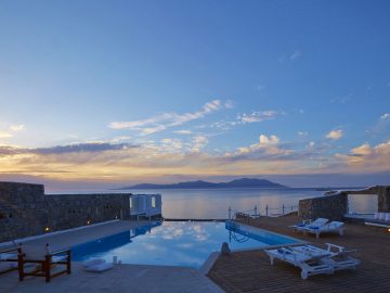 The Executive Villa provides a panoramic view of the island from Thira and Thirassia, to Akrotiri and Oia and of course the volcano and the most beautiful sunset in the world.
