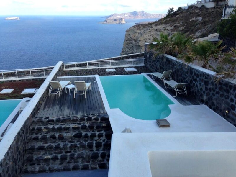 Just a few minutes by car from the main town of Fira and from the island’s new port, the Luxury Villa looks out to the grand blue of the Mediterranean over the island cliffs. The villa is a 10-minute walk from one of the oldest, most authentic and untouched villages of Santorini, providing a perfect locale that lies between luxury and old world charm.