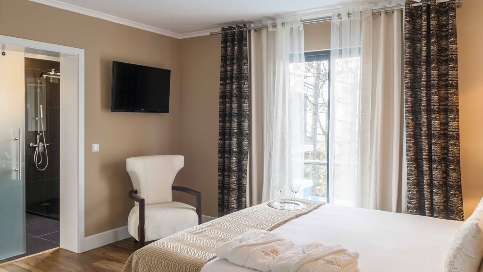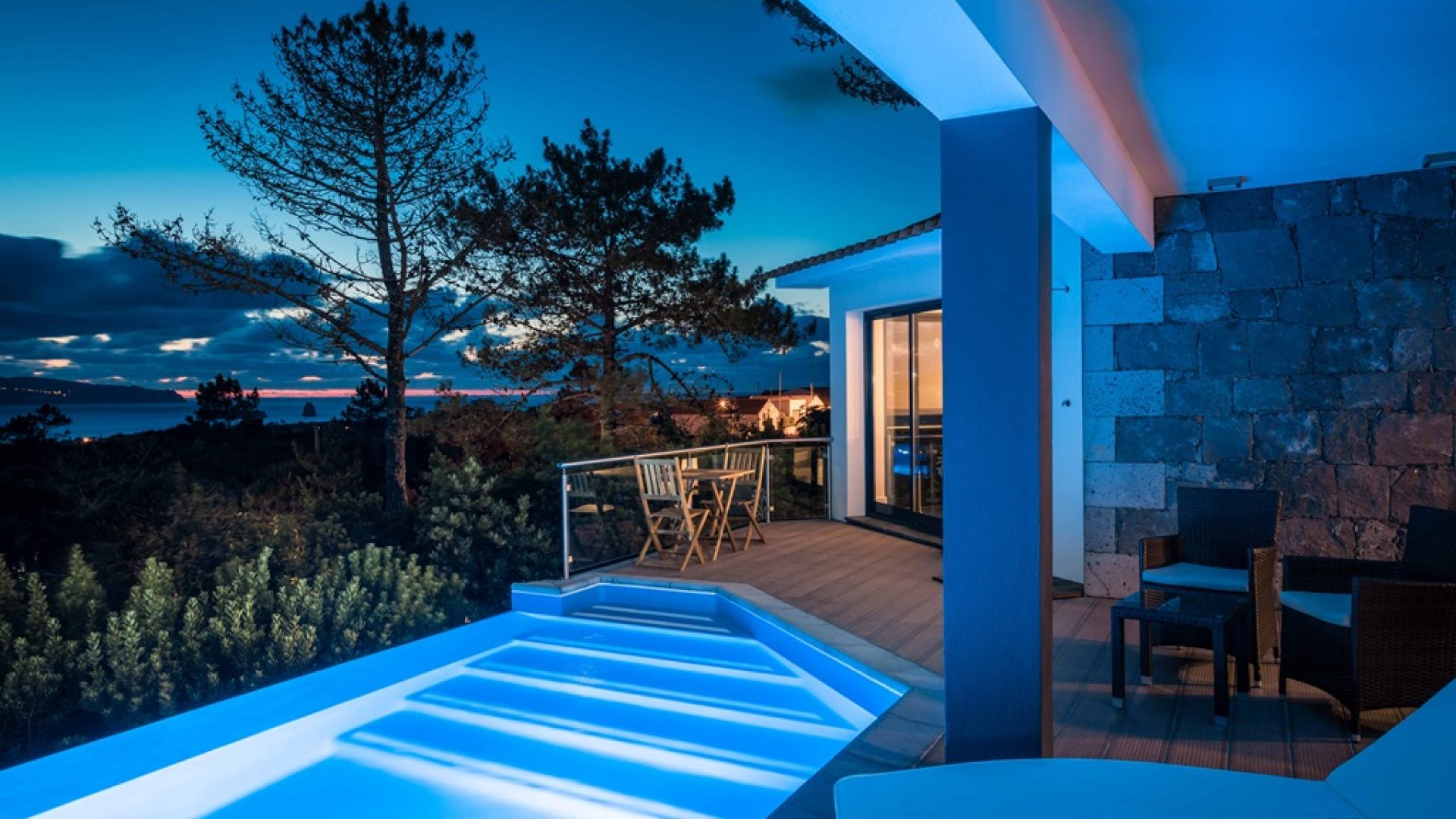 Relax in the evening on the lower balcony and beside the infinity pool and watch the stunning sun set over the ocean creating a peaceful and unparalleled atmosphere. The panoramic views of Faial Island will keep you mesmerized and help you quickly leave your cares behind.